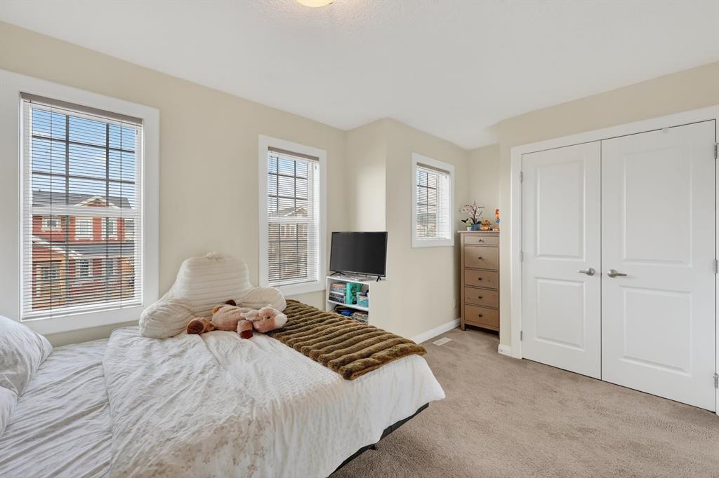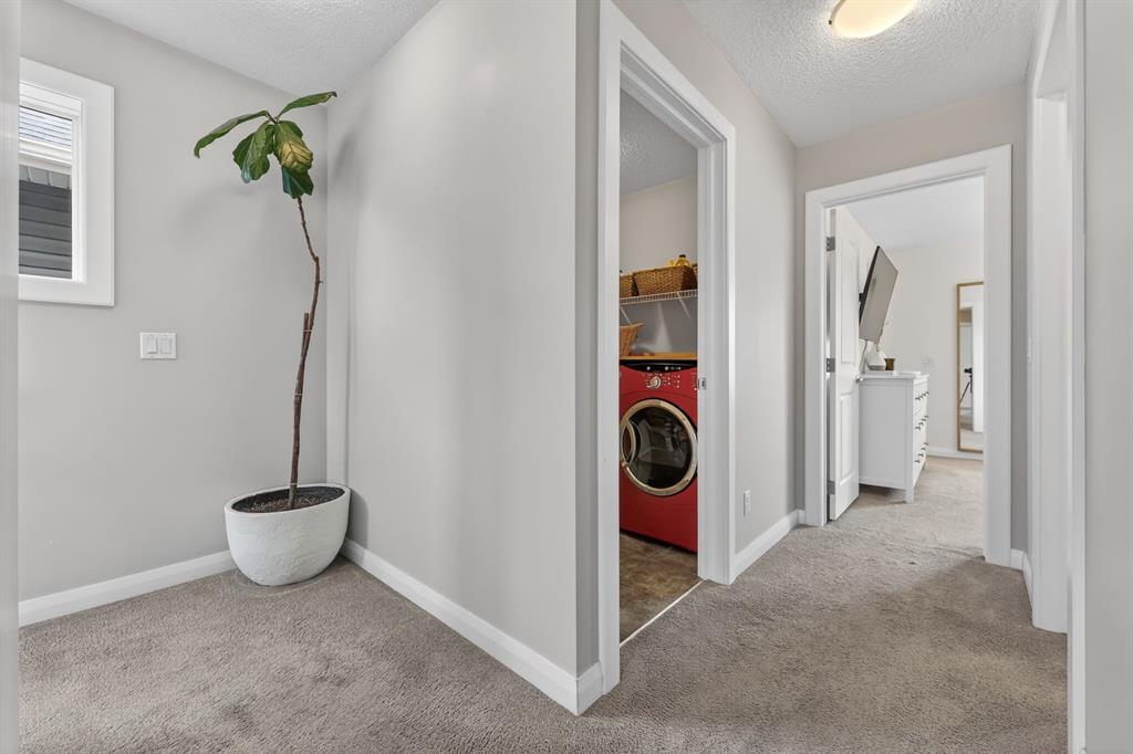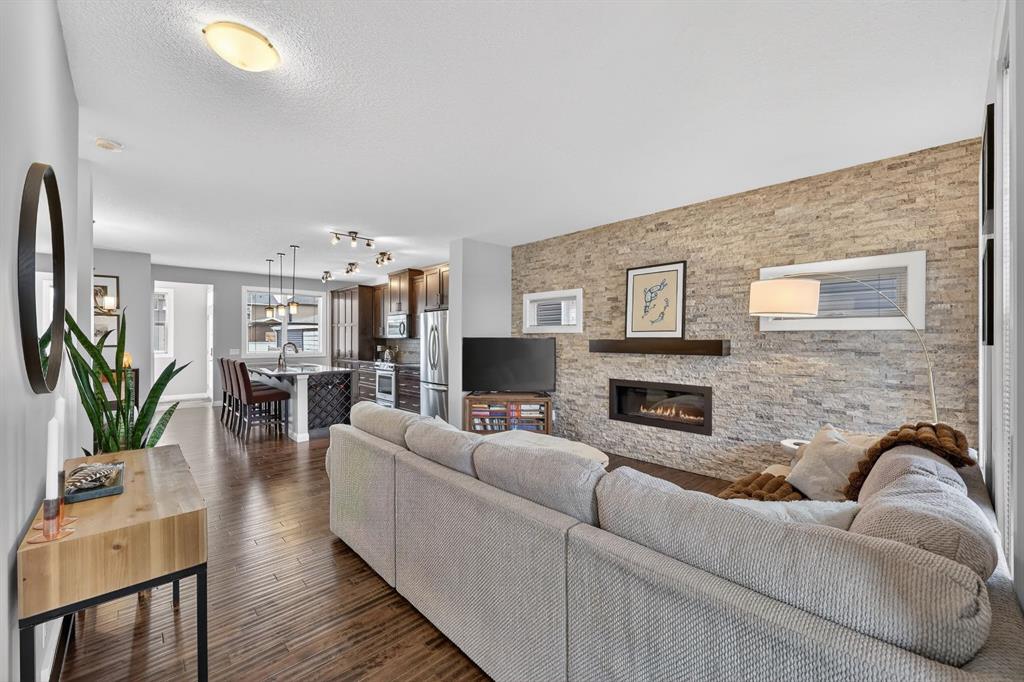 Move-in ready 3-bedroom home, filled with natural light and beautifully finished! The wide-open main floor offers a spacious and cozy living room with a stone feature wall and fireplace, a huge kitchen with ample countertop and storage space, and a large dining area. Upstairs are three good sized bedrooms including the primary with ensuite and walk-in closet, plus an upper-level laundry room with full size washer and dryer. The lower-level full basement, currently framed and unfinished with roughed in plumbing, 9′ ceilings and two windows, is ready for your development ideas. The outdoor spaces include a deck and yard perfect to enjoy with family and friends, and there is a concrete parking pad plus plenty of room for a future double garage if desired. Conveniently located to be close to public transportation, schools, and all amenities. This impeccably maintained family home is priced to sell and should not be missed!