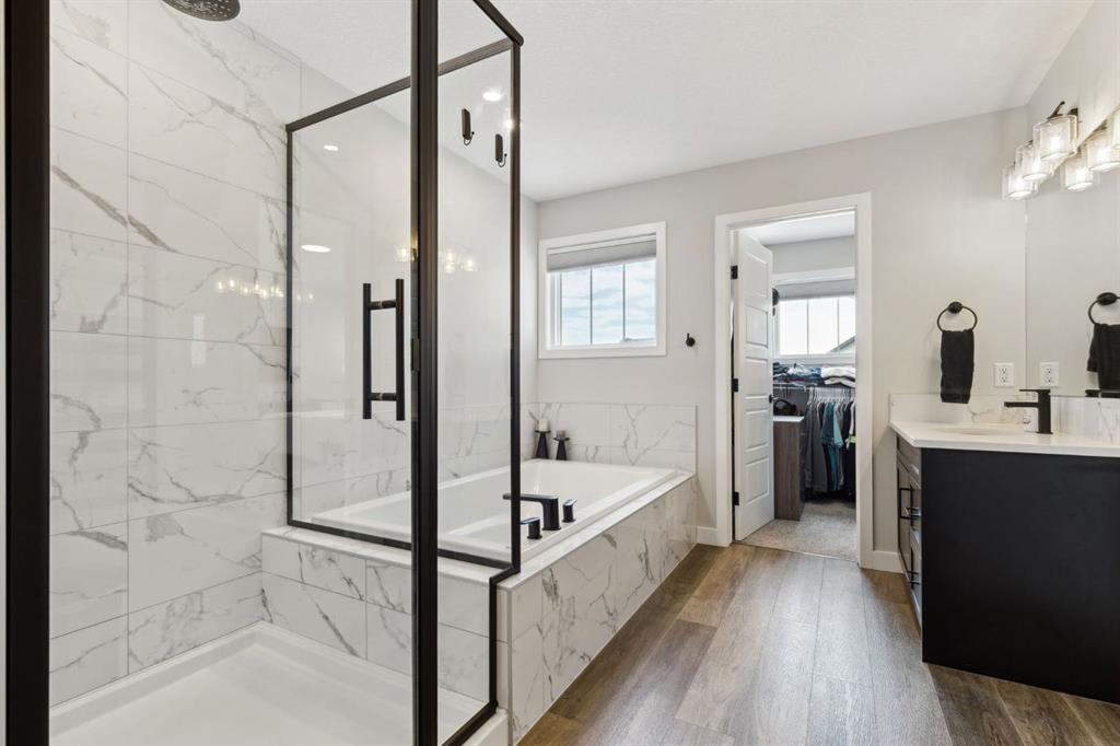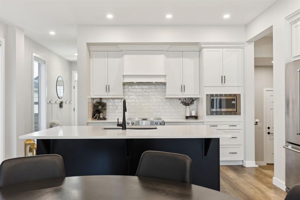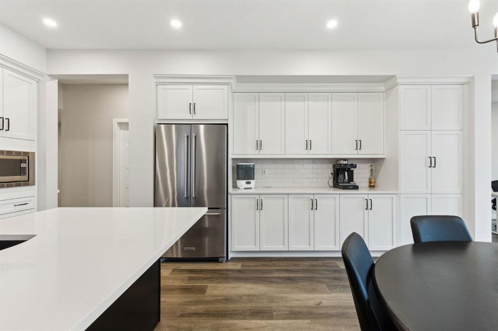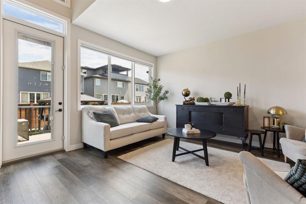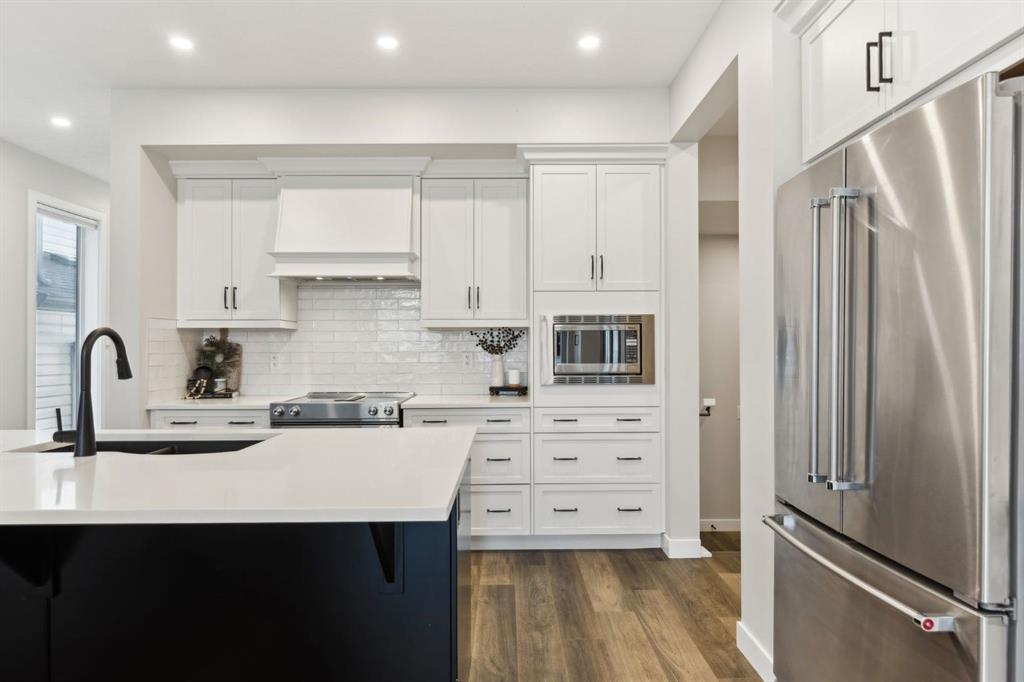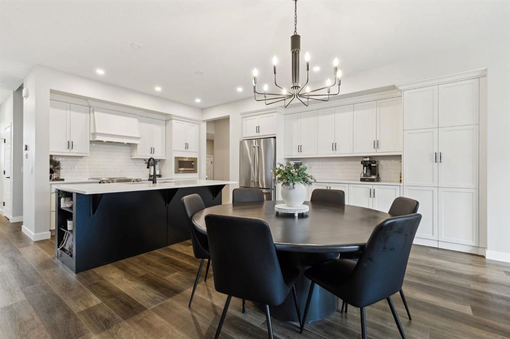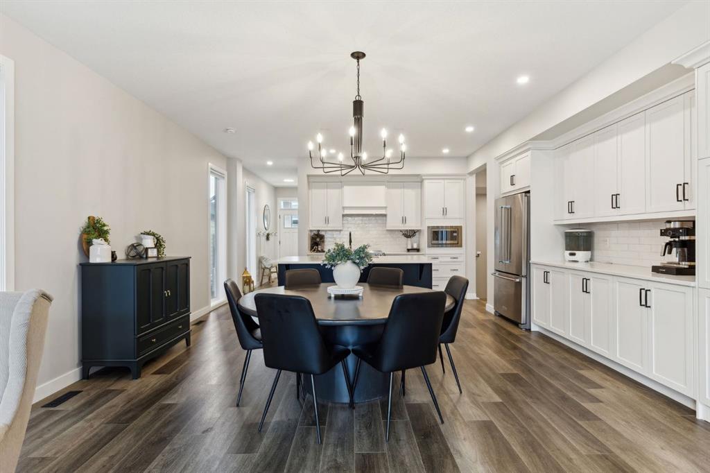 This beautifully designed Jayman built home offers the perfect blend of high-end finishes, thoughtful custom upgrades, and energy efficient features, all located in the vibrant and amenity-rich community of Seton. Inside, the home offers a bright and airy open concept layout enhanced by floor to ceiling windows, luxury vinyl plank flooring throughout, and quartz countertops that combine elegance with everyday durability. The chef-inspired kitchen showcases high end appliances, a custom designed hood fan, and a spacious walk-in butler’s pantry, offering both function and flair. The main living area is anchored by a sleek fireplace with custom mantle, thoughtfully designed as a double-sided feature shared with a cozy den or home office, bringing warmth and ambiance to both spaces. A half bath is conveniently tucked away on the main level.