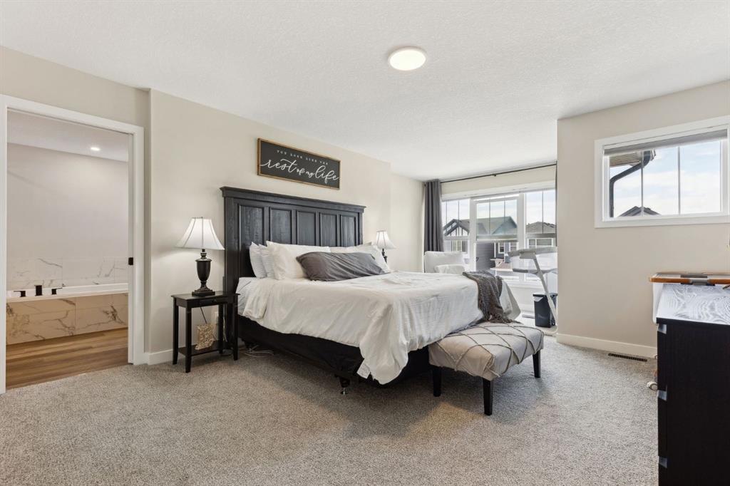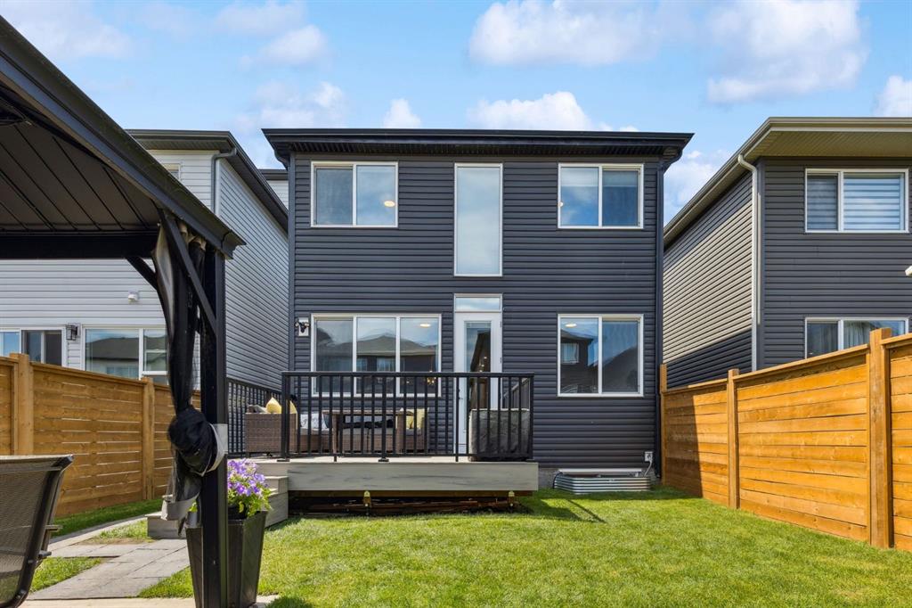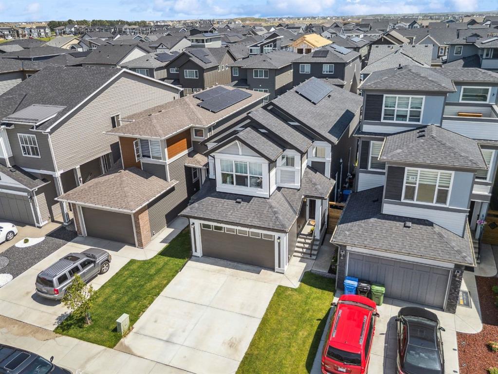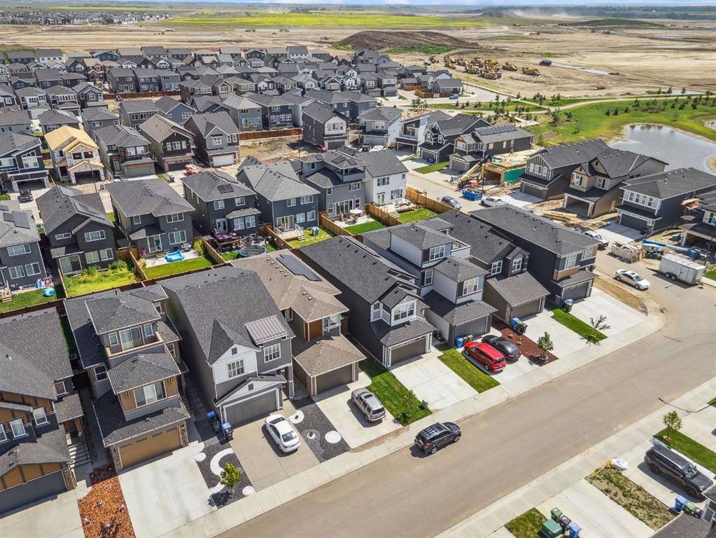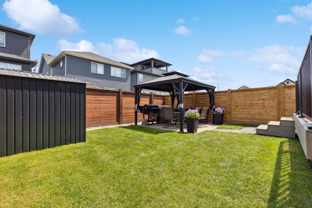 The basement is framed and ready for future development, with a bathroom already roughed in. Outside, the landscaped yard offers year-round enjoyment with a composite deck, permanent Govee exterior lighting, a powered gazebo, and a storage shed. The attached garage is heated and includes built-in ceiling storage and cabinets for optimal organization. This home offers convenient access to the South Health Campus, YMCA, schools, restaurants, shopping, and everyday services. New HOA facility is open and designed to elevate your lifestyle with amenities such as a skating rink, splash pad, tennis and basketball courts, fire pits, a café, and bookable indoor spaces for events like birthdays or private gatherings. From solar panels(6) and hot water on demand to luxury finishes throughout, this home delivers unmatched value in a prime location- truly a must see!