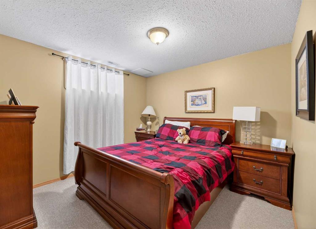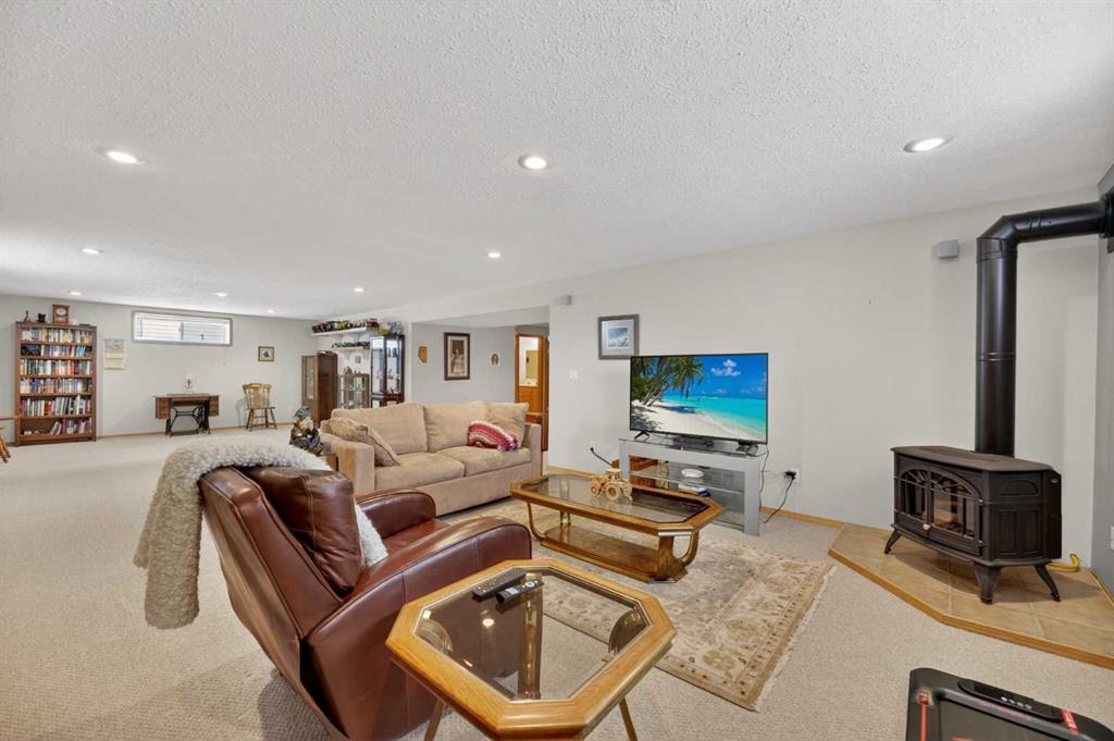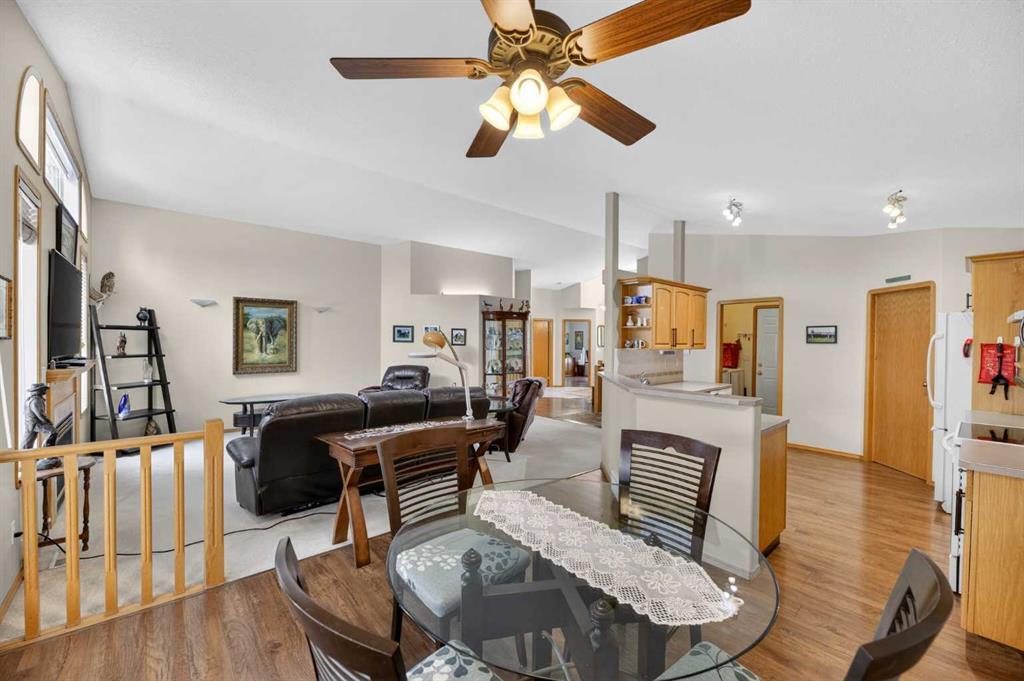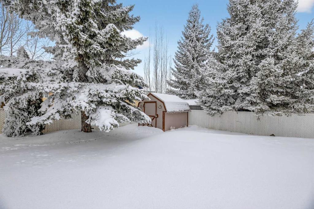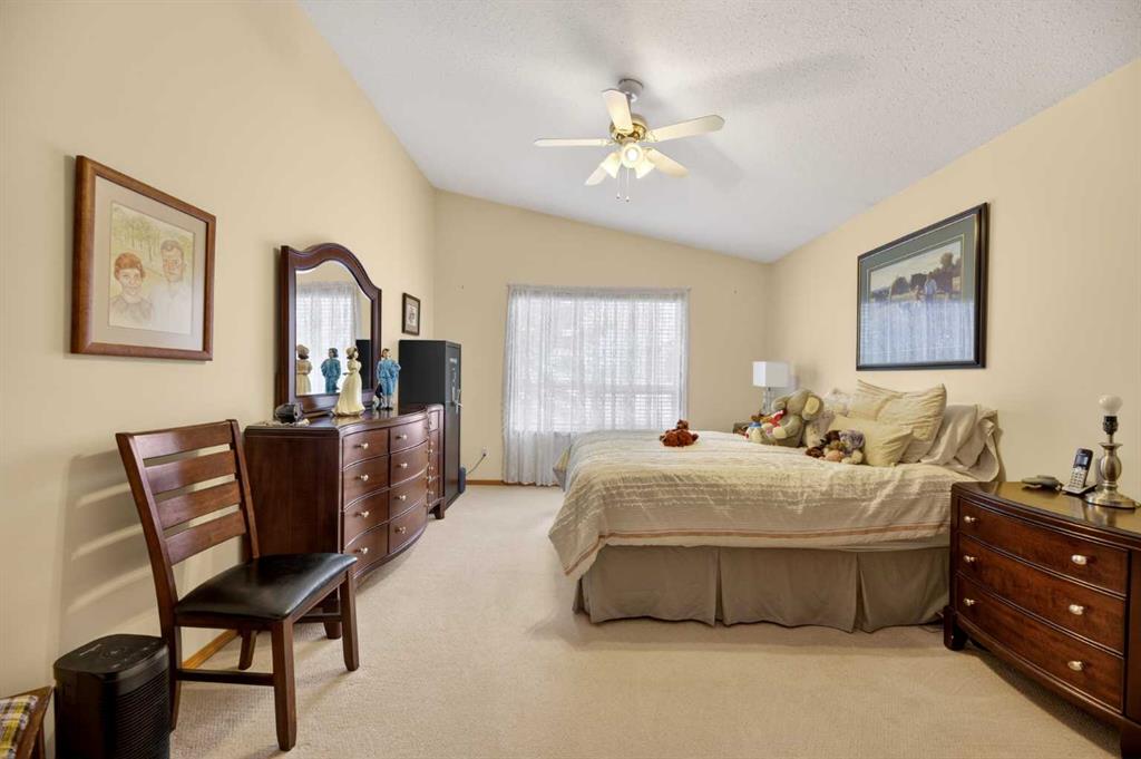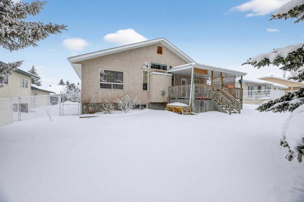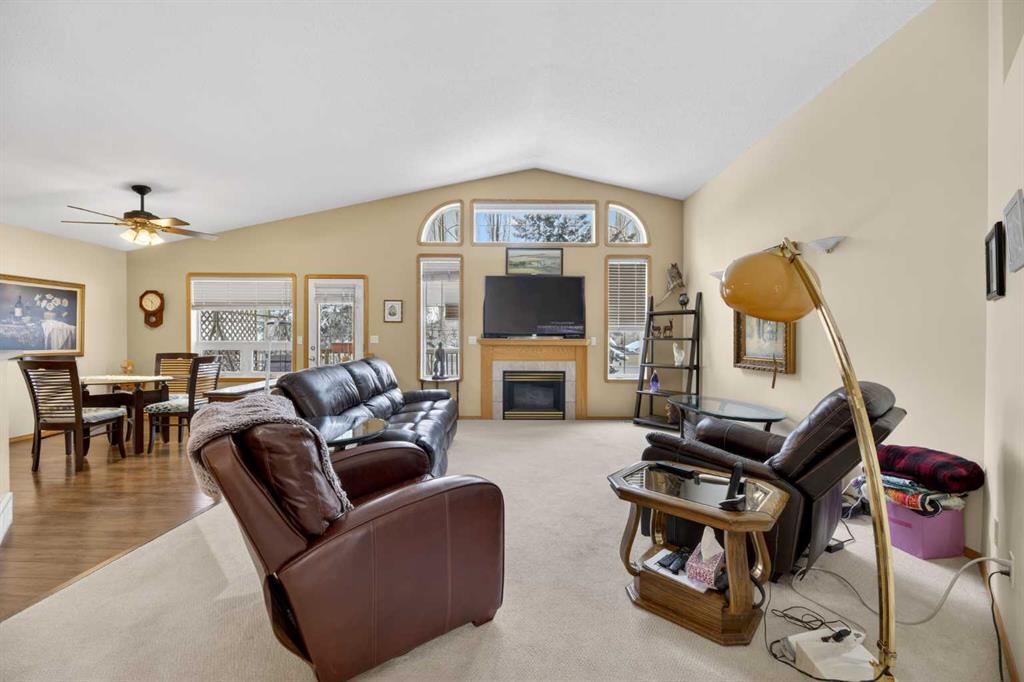 Discover exceptional design and comfort in this spacious 4-bedroom, 3-bath bungalow, thoughtfully crafted to accommodate both main-floor living for a senior-minded buyer and an expansive open layout ideal for a mature family or empty-nesters who love to entertain. The main level features a stunning great-room concept highlighted by vaulted ceilings that span the foyer, living, dining, and kitchen areas, creating a bright and cohesive flow throughout. A gas fireplace anchors the living room, while a second freestanding gas fireplace in the lower-level family room adds warmth and charm. On those warm summer days, the property also boasts Central A/C to cool you down. Two bedrooms (one currently being used as an office) are located on the main floor, including a generous primary bedroom complete with a 4-piece ensuite and walk-in closet. Additional conveniences include a main-floor laundry room with direct access to the heated double-attached garage. The fully developed basement offers impressive versatility with 9-foot ceilings, a wide open staircase, a spacious family/recreation room perfect for a pool table or games area, two additional bedrooms, and a 3-piece bathroom. Outside, the property showcases a meticulous landscaping and the security of a fully fenced yard. A garden shed provides extra storage, while the expansive 12′ x 17′ covered southwest-facing deck offers the perfect setting to enjoy evening sunsets and serene views over the yard. With a beautifully maintained interior living space, this home presents impeccable design, exceptional care, and a layout that truly stands out. Ideally located near Winter Lake, walking trails, and schools, it is surrounded by a picturesque neighborhood and positioned close to shopping, dining, entertainment, essential services, and healthcare options. An outstanding property that must be seen to fully appreciate its quality and presence.