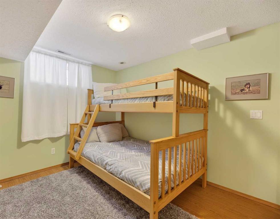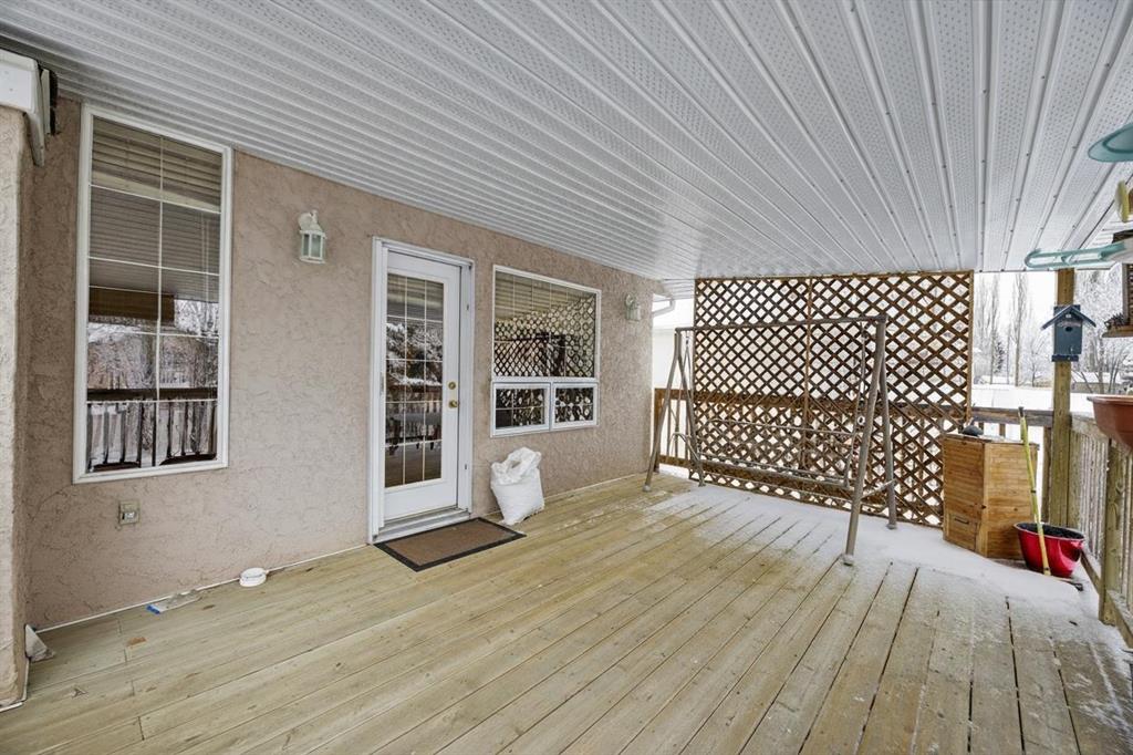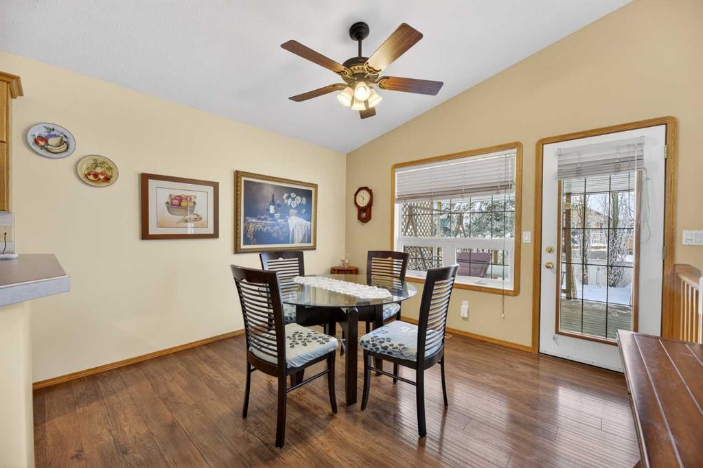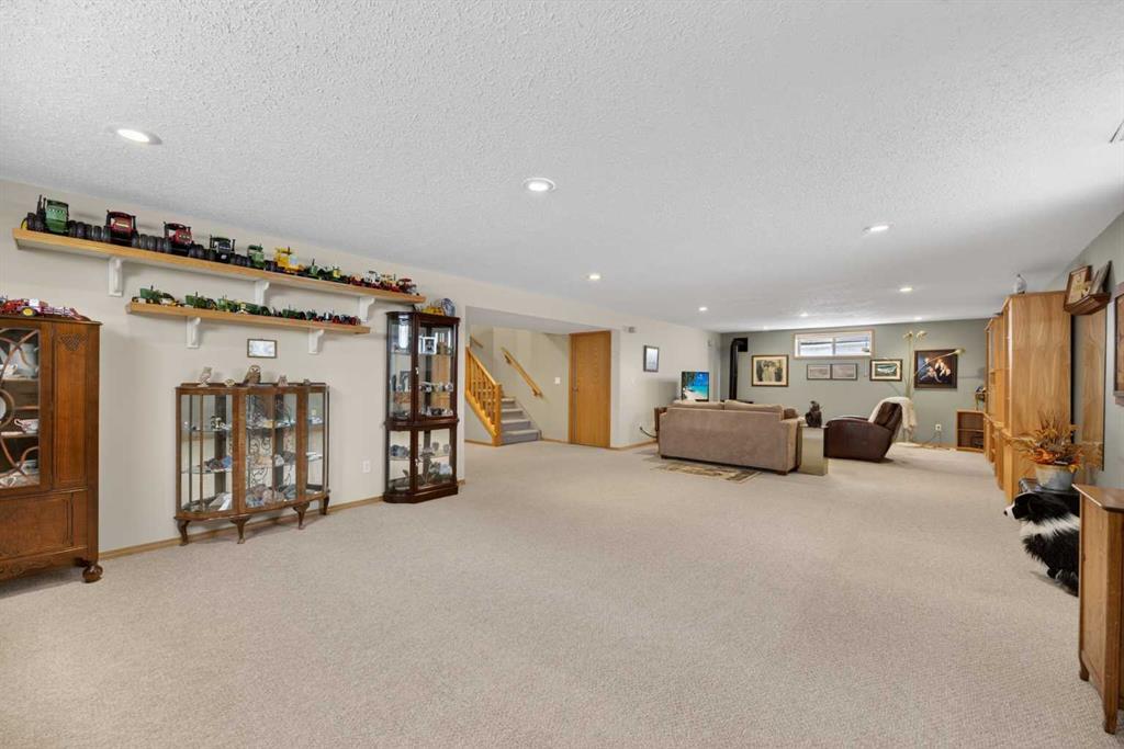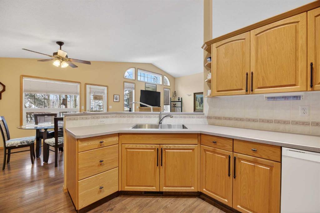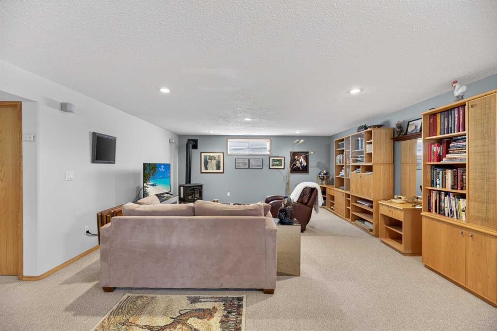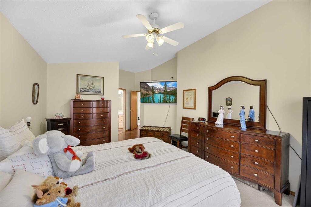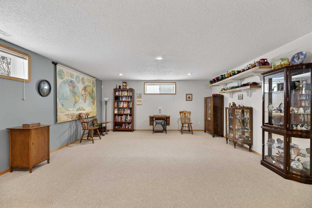 Discover exceptional design and comfort in this spacious 4-bedroom, 3-bath bungalow, thoughtfully crafted to accommodate both main-floor living for a senior-minded buyer and an expansive open layout ideal for a mature family or empty-nesters who love to entertain. The main level features a stunning great-room concept highlighted by vaulted ceilings that span the foyer, living, dining, and kitchen areas, creating a bright and cohesive flow throughout. A gas fireplace anchors the living room, while a second freestanding gas fireplace in the lower-level family room adds warmth and charm. On those warm summer days, the property also boasts Central A/C to cool you down. Two bedrooms (one currently being used as an office) are located on the main floor, including a generous primary bedroom complete with a 4-piece ensuite and walk-in closet. Additional conveniences include a main-floor laundry room with direct access to the heated double-attached garage. The fully developed basement offers impressive versatility with 9-foot ceilings, a wide open staircase, a spacious family/recreation room perfect for a pool table or games area, two additional bedrooms, and a 3-piece bathroom. Outside, the property showcases a meticulous landscaping and the security of a fully fenced yard. A garden shed provides extra storage, while the expansive 12′ x 17′ covered southwest-facing deck offers the perfect setting to enjoy evening sunsets and serene views over the yard. With a beautifully maintained interior living space, this home presents impeccable design, exceptional care, and a layout that truly stands out. Ideally located near Winter Lake, walking trails, and schools, it is surrounded by a picturesque neighborhood and positioned close to shopping, dining, entertainment, essential services, and healthcare options. An outstanding property that must be seen to fully appreciate its quality and presence.