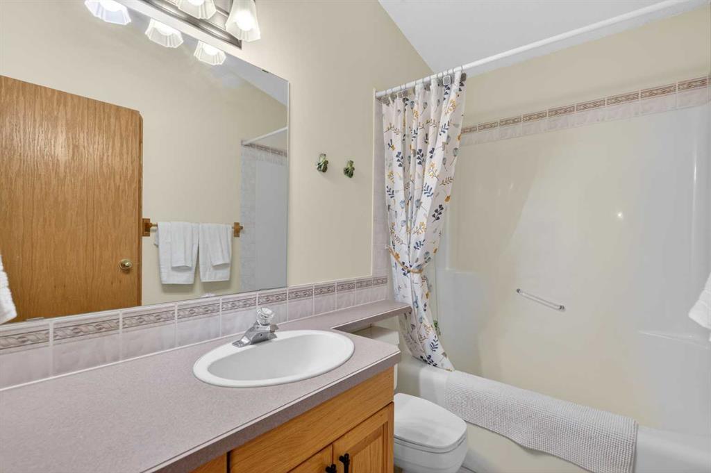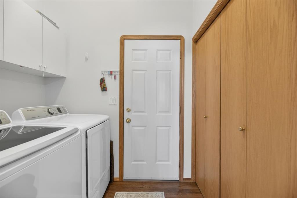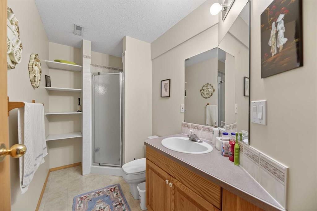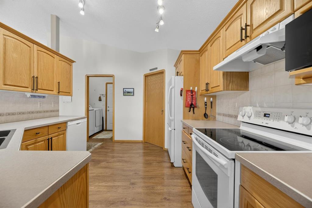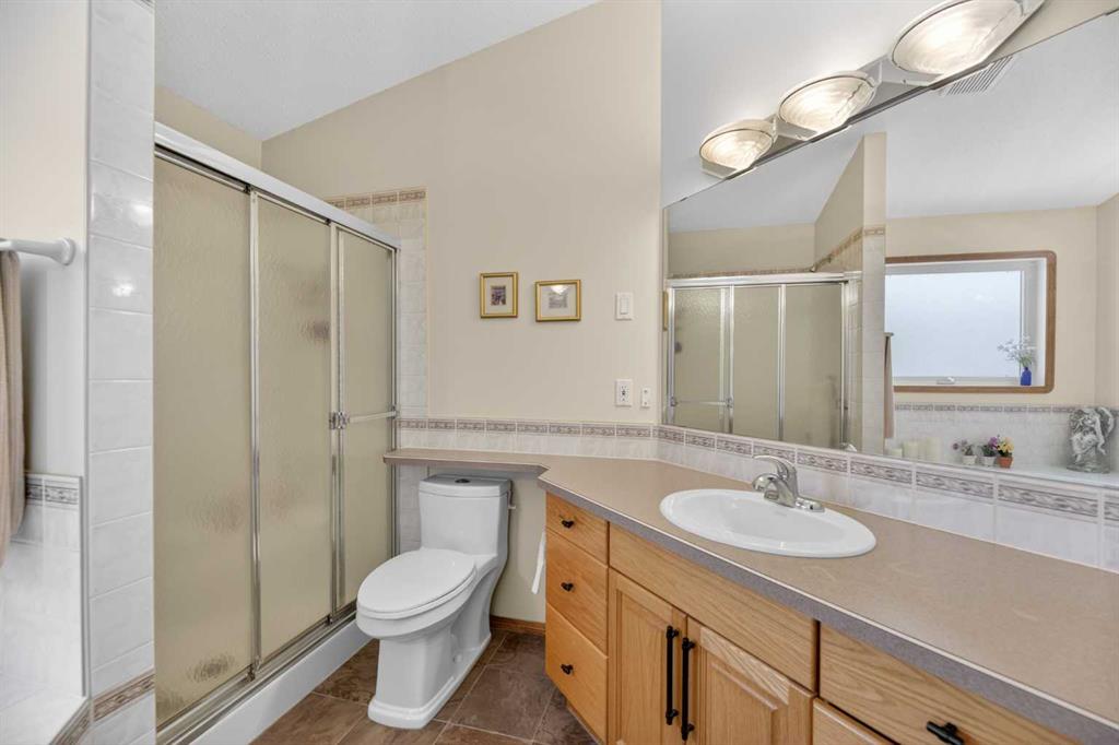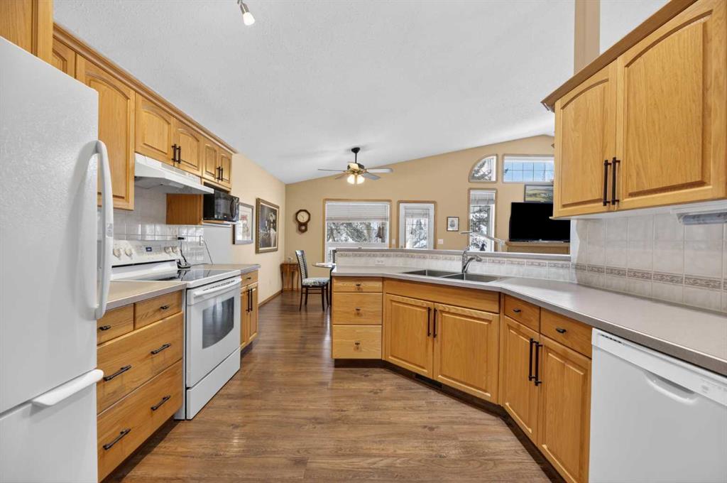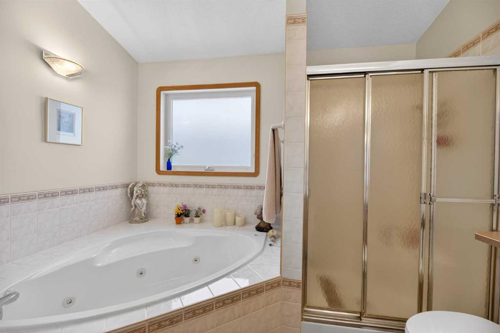 Discover exceptional design and comfort in this spacious 4-bedroom, 3-bath bungalow, thoughtfully crafted to accommodate both main-floor living for a senior-minded buyer and an expansive open layout ideal for a mature family or empty-nesters who love to entertain. The main level features a stunning great-room concept highlighted by vaulted ceilings that span the foyer, living, dining, and kitchen areas, creating a bright and cohesive flow throughout. A gas fireplace anchors the living room, while a second freestanding gas fireplace in the lower-level family room adds warmth and charm. On those warm summer days, the property also boasts Central A/C to cool you down. Two bedrooms (one currently being used as an office) are located on the main floor, including a generous primary bedroom complete with a 4-piece ensuite and walk-in closet. Additional conveniences include a main-floor laundry room with direct access to the heated double-attached garage. The fully developed basement offers impressive versatility with 9-foot ceilings, a wide open staircase, a spacious family/recreation room perfect for a pool table or games area, two additional bedrooms, and a 3-piece bathroom. Outside, the property showcases a meticulous landscaping and the security of a fully fenced yard. A garden shed provides extra storage, while the expansive 12′ x 17′ covered southwest-facing deck offers the perfect setting to enjoy evening sunsets and serene views over the yard. With a beautifully maintained interior living space, this home presents impeccable design, exceptional care, and a layout that truly stands out. Ideally located near Winter Lake, walking trails, and schools, it is surrounded by a picturesque neighborhood and positioned close to shopping, dining, entertainment, essential services, and healthcare options. An outstanding property that must be seen to fully appreciate its quality and presence.