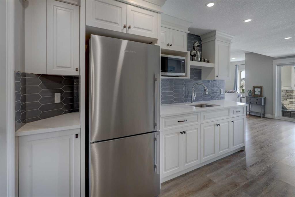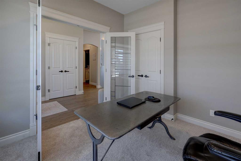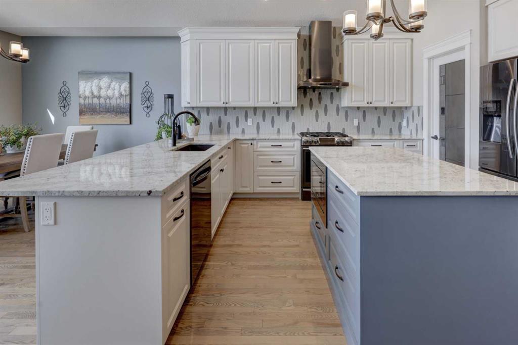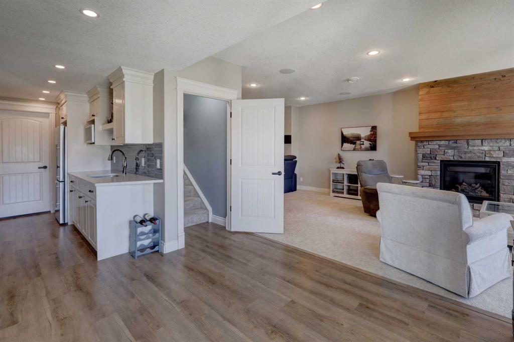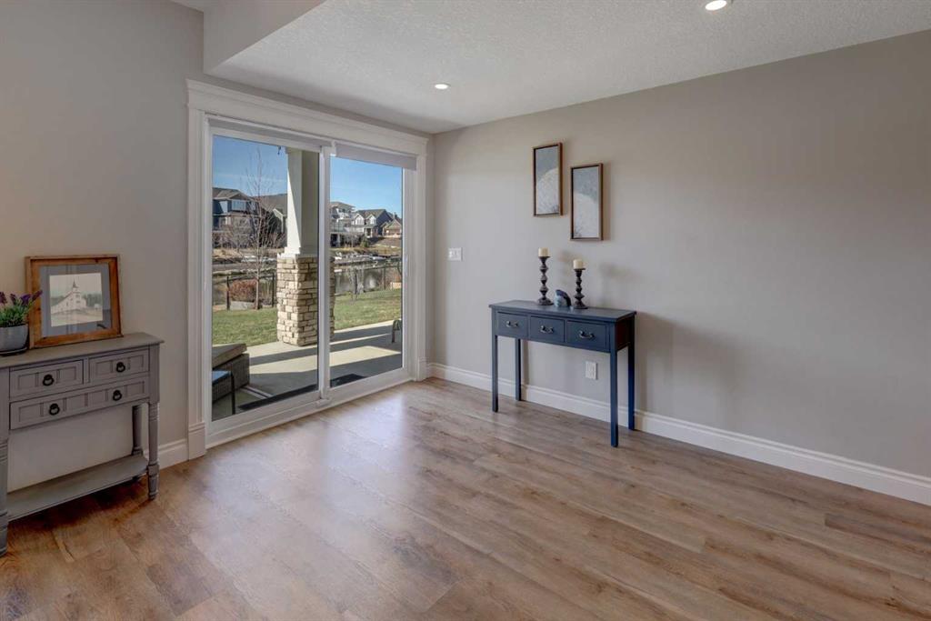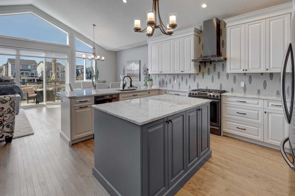 Welcome to this custom built McKee bungalow, proudly offered by the original owner and perfectly positioned on the waterfront in Bayside Estates. Featuring a triple tandem heated garage, this home offers exceptional space for all your vehicles, tools and toys. Step inside to a bright and inviting main floor, showcasing rich hardwood flooring and 9 foot ceilings throughout, complemented by central air conditioning to keep you comfortable year round.. Just off the entrance, a dedicated home office provides the ideal space for remote work or quiet study. As you move further in, the chef-inspired kitchen impresses with custom colors, including cream cabinetry, Black stainless steel appliances, granite countertops with a breakfast bar and a walk-in pantry with an elegant French door. The heart of the home is highlighted by soaring vaulted ceilings and stunning south-facing windows that flood the dining and living areas with natural light. A cozy fireplace creates the perfect ambiance for relaxing evenings. The spacious primary retreat offers a true escape, complete with a luxurious 5 piece ensuite featuring a soaker tub, separate shower, dual vanities and a walk in closet. Step out from the living room onto the expansive upper deck, finished with durable Duradek, where you can take in peaceful waterfront views. A convenient 2-piece bathroom and main floor laundry complete this level. Downstairs, the fully developed walkout basement is designed for entertaining, featuring 9 foot ceilings and a massive recreation and games area with a second fireplace. A custom-built wet bar and kitchenette add both function and flair. This level also includes two additional bedrooms and a 4-piece bathroom. Outside, your private backyard oasis awaits—complete with a concrete patio and direct water access. Whether you’re considering a future dock or simply enjoying the setting, this space is perfect for morning coffee or unwinding with a glass of wine in the evening. Located just a short walk to Nose Creek School (K–4) and close to parks, playgrounds, sports fields, shopping, restaurants, and everyday amenities, this home offers an unbeatable lifestyle. Waterfront. Luxury. Location. This one truly has it all.