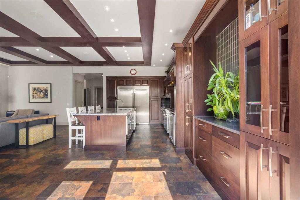 Welcome to custom built elegance in Winston Height-Mountview. Walk in the spacious front entry and be greeted by 20’ vaulted ceilings and a grand staircase with wrought iron spindles. Continue past the entry to a private office with French doors before entering the large open concept living space. A stone-facing fireplace is the focal point of the living room along with the 10’ on-site finished coffered wood-paneled ceiling. The large kitchen features a commanding 9’ island with breakfast bar, a 6-burner Viking gas range with pot-filler, huge refrigerator-freezer combo, wine fridge, and stunning on-site finished dark stained cabinetry. A bright dining room with views of the backyard completes this space. Also on this level is a two-piece powder room. The upper floor has a huge primary retreat with separate sitting area, a stunning 5-piece bathroom with separate soaker tub, separate tiled shower with body spray package, dual sinks, and a large walk-in closet. Two other large bedrooms are also on this level along with a 4-piece main bathroom. The basement level was renovated by the current owners with over $170,000 of finishings featuring a radiant heated, polished concrete floor, large family room with custom built-ins and gas fireplace, a built-in study area with room for two, two more bedrooms, a 4-piece bathroom, and large storage room. There is also access from the basement to the garage via a separate stairway. The garage is double oversized with enough room for your vehicles and toys. The house is wired for sound and comes with a Russound system. The fully fenced backyard has a large patio, gas BBQ line, and green space. This home is built by a reputable Italian builder and the quality shows in what can be seen and what isn’t seen including double joists used to construct the sub-floor and solid core doors. Steps away from The Winston Golf Club, this home is close to schools, shopping and more and is within a short commute to the downtown core.