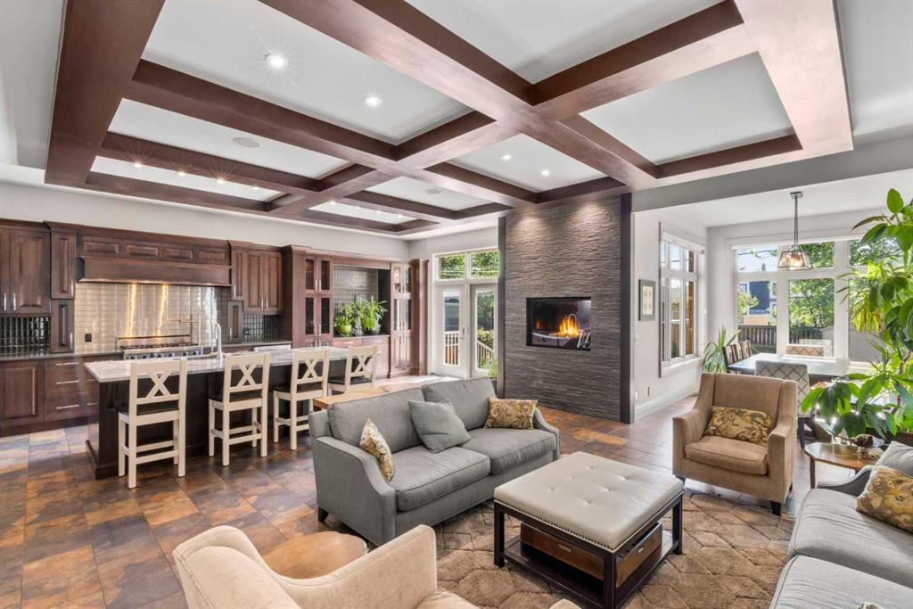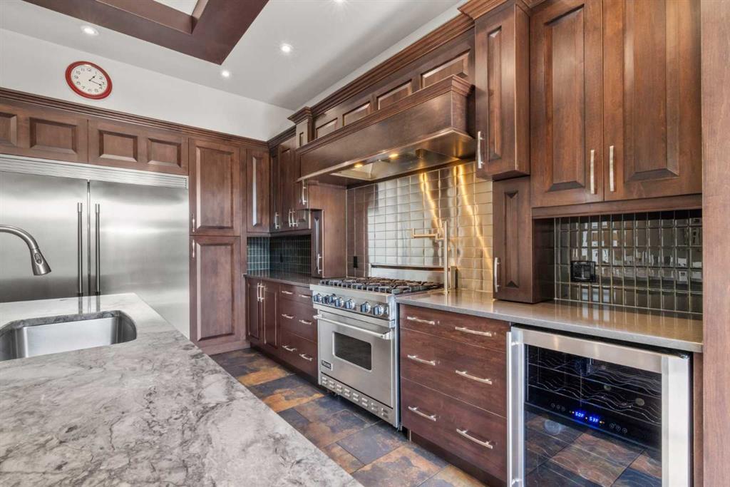 Welcome to custom built elegance in Winston Height-Mountview. Walk in the spacious front entry and be greeted by 20’ vaulted ceilings and a grand staircase with wrought iron spindles. Continue past the entry to a private office with French doors before entering the large open concept living space. A stone-facing fireplace is the focal point of the living room along with the 10’ on-site finished coffered wood-paneled ceiling. The large kitchen features a commanding 9’ island with breakfast bar, a 6-burner Viking gas range with pot-filler, huge refrigerator-freezer combo, wine fridge, and stunning on-site finished dark stained cabinetry. A bright dining room with views of the backyard completes this space. Also on this level is a two-piece powder room. The stairs to the upper level and the hardwood floors on the second level have just been refinished and are absolutely stunning. The upper floor has a huge primary retreat with separate sitting area, a stunning 5-piece bathroom with separate soaker tub, separate tiled shower with body spray package, dual sinks, and a large walk-in closet. Two other large bedrooms are also on this level along with a 5-piece main bathroom. The basement level was renovated by the current owners with over $170,000 of finishings featuring a radiant heated, polished concrete floor, large family room with custom built-ins and gas fireplace, a built-in study area with room for two, two more bedrooms, a 4-piece bathroom, and large storage room. There is also access from the basement to the garage via a separate stairway. The garage is double oversized with enough room for your vehicles and toys. The house is wired for sound and comes with a Russound system. The fully fenced backyard has a large patio, gas BBQ line, and green space. This home is built by a reputable Italian builder and the quality shows in what can be seen and what isn’t seen including double joists used to construct the sub-floor and solid core doors. Steps away from The Winston Golf Club, this home is close to schools, shopping and more and is within a short commute to the downtown core.