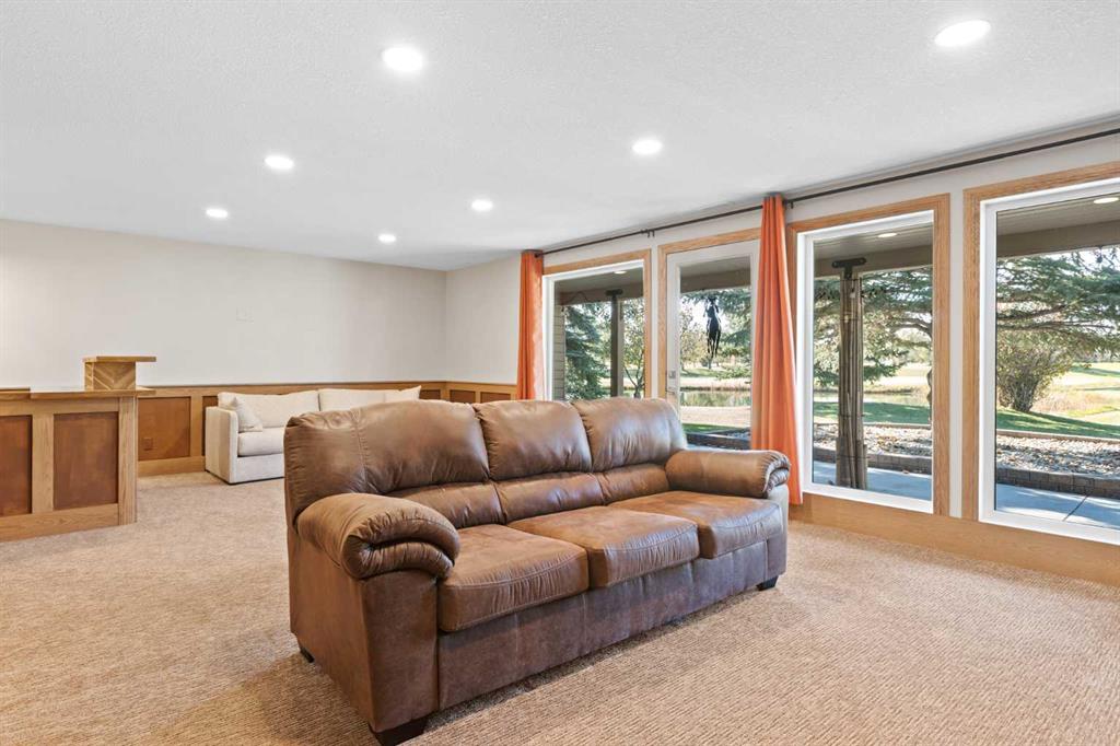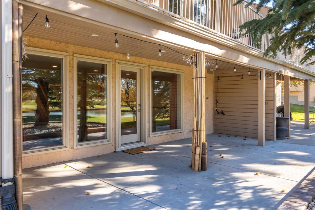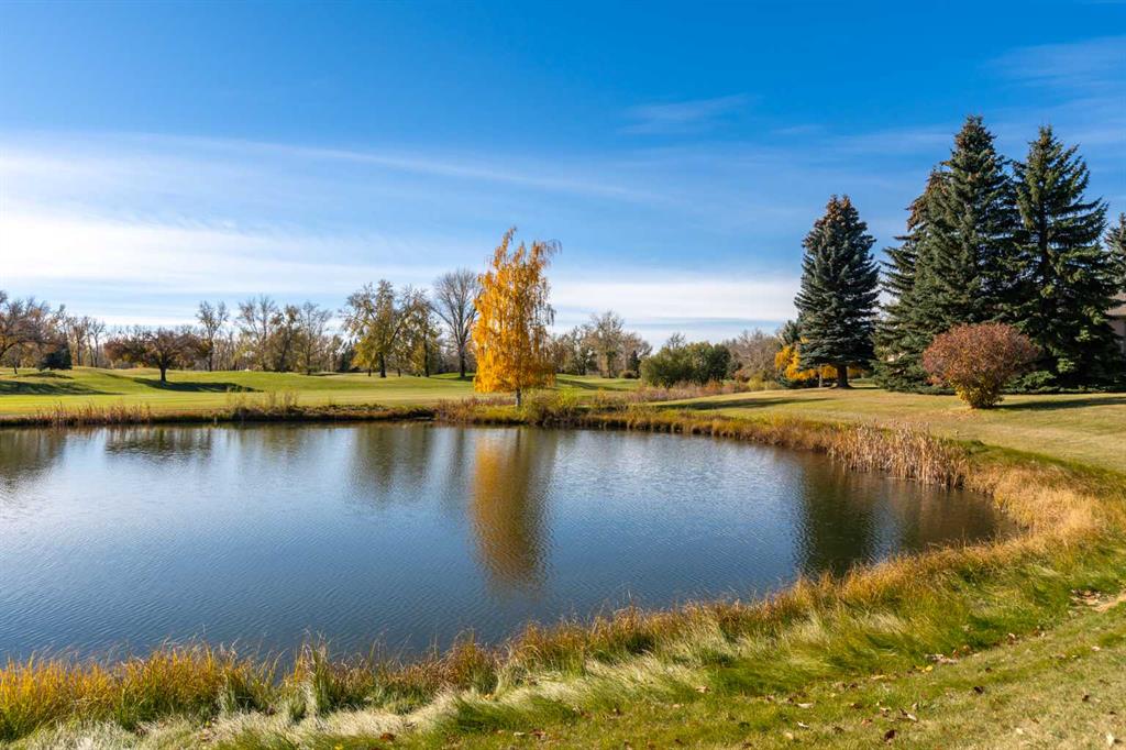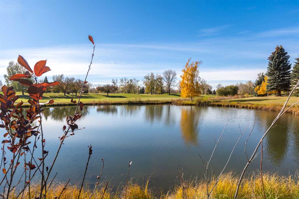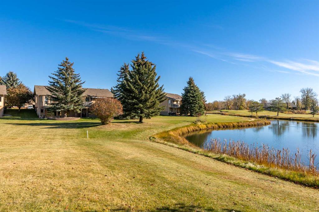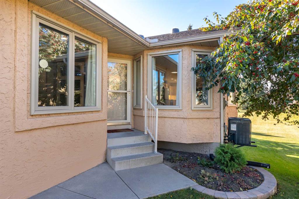 This 1280 sq ft walk-out villa has an abundance of upgrades and renovations and is the definition of move-in ready. The main level has an open floorplan with luxury vinyl plank throughout. A gorgeous gas fireplace with a stone face and mantle graces the living room. The kitchen is spacious with maple and glass cabinets, quartz countertops, maple butcher block island/eating bar, instant hot water tap, garburator, new sink, and new appliances. In the primary bedroom there is a walk-through closet with entrance to the renovated 5-piece bath. This level also has a den and mud/laundry room complete with built in features, new washer/dryer, and a lift (elevator style) that provides access to the basement and garage. The basement has a 31×26’ rec room complete with upgraded window size, bar with sink, built in fridge, and another feature fireplace. Also on this level is large bedroom, spa like 3 piece bathroom with a deluxe tile shower, ample storage, and access to the new, expanded lower deck that features a charming Tiki bar while overlooking the peaceful pond, green-space and golf course. A few of the many upgrades in this home include new flooring, light fixtures, and shingles; removal of poly B; new electrical, water softener and central vacuum; new triple pane windows, staircase and railings, exterior and interior doors, baseboards and trim, electric awning on upper deck, a heated double garage and gas BBQ lines on both decks. There is also in-floor heating in both bathrooms, central air, four light tubes, and a brass “speaking tube”, and brass ship bell that adds character and charm. The sewer and main water line have also been replaced with a new driveway. Located in a quiet cul-de-sac with no chance of golf balls coming into your yard, and low monthly feels that include snow removal and landscaping, this home offers serenity and easy, maintenance-free living. Please click the multimedia tab for an interactive virtual 3D tour and floor plans.