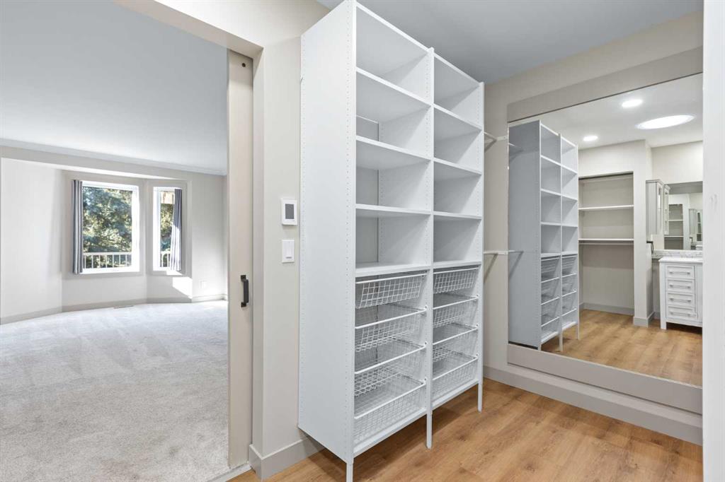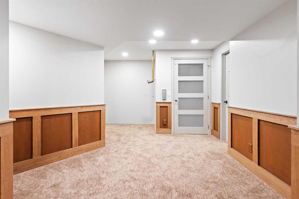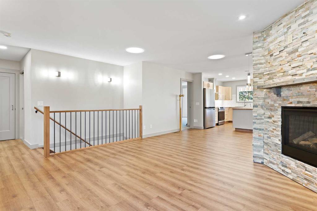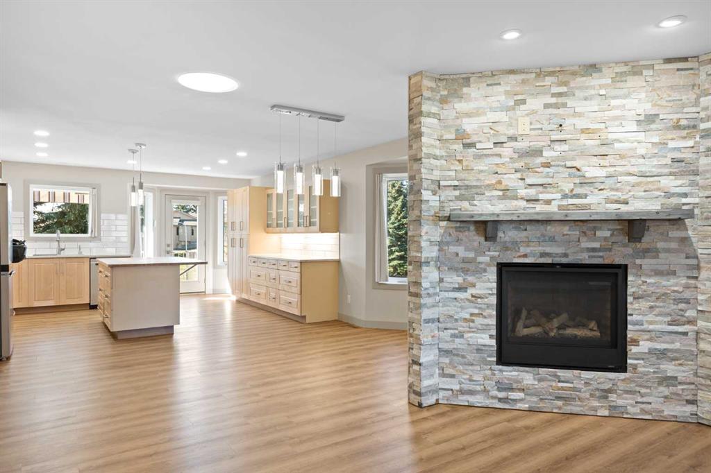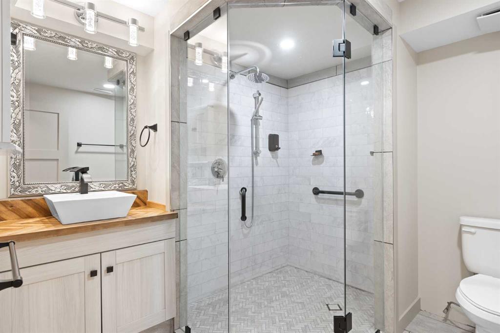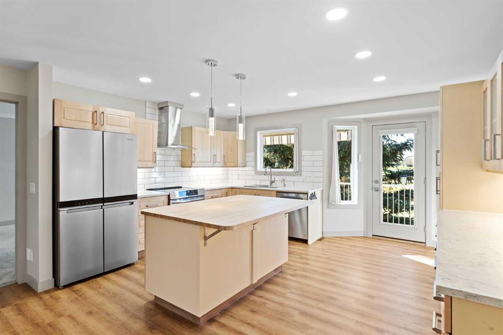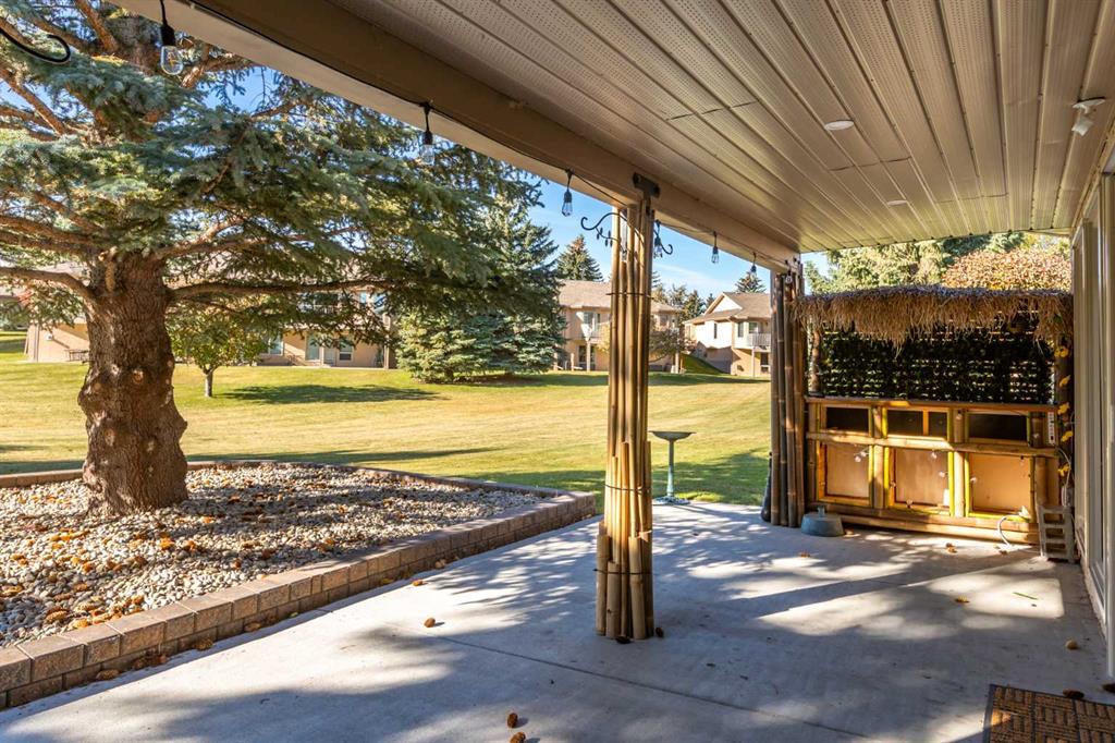 This 1280 sq ft walk-out villa has an abundance of upgrades and renovations and is the definition of move-in ready. The main level has an open floorplan with luxury vinyl plank throughout. A gorgeous gas fireplace with a stone face and mantle graces the living room. The kitchen is spacious with maple and glass cabinets, quartz countertops, maple butcher block island/eating bar, instant hot water tap, garburator, new sink, and new appliances. In the primary bedroom there is a walk-through closet with entrance to the renovated 5-piece bath. This level also has a den and mud/laundry room complete with built in features, new washer/dryer, and a lift (elevator style) that provides access to the basement and garage. The basement has a 31×26’ rec room complete with upgraded window size, bar with sink, built in fridge, and another feature fireplace. Also on this level is large bedroom, spa like 3 piece bathroom with a deluxe tile shower, ample storage, and access to the new, expanded lower deck that features a charming Tiki bar while overlooking the peaceful pond, green-space and golf course. A few of the many upgrades in this home include new flooring, light fixtures, and shingles; removal of poly B; new electrical, water softener and central vacuum; new triple pane windows, staircase and railings, exterior and interior doors, baseboards and trim, electric awning on upper deck, a heated double garage and gas BBQ lines on both decks. There is also in-floor heating in both bathrooms, central air, four light tubes, and a brass “speaking tube”, and brass ship bell that adds character and charm. The sewer and main water line have also been replaced with a new driveway. Located in a quiet cul-de-sac with no chance of golf balls coming into your yard, and low monthly feels that include snow removal and landscaping, this home offers serenity and easy, maintenance-free living. Please click the multimedia tab for an interactive virtual 3D tour and floor plans.