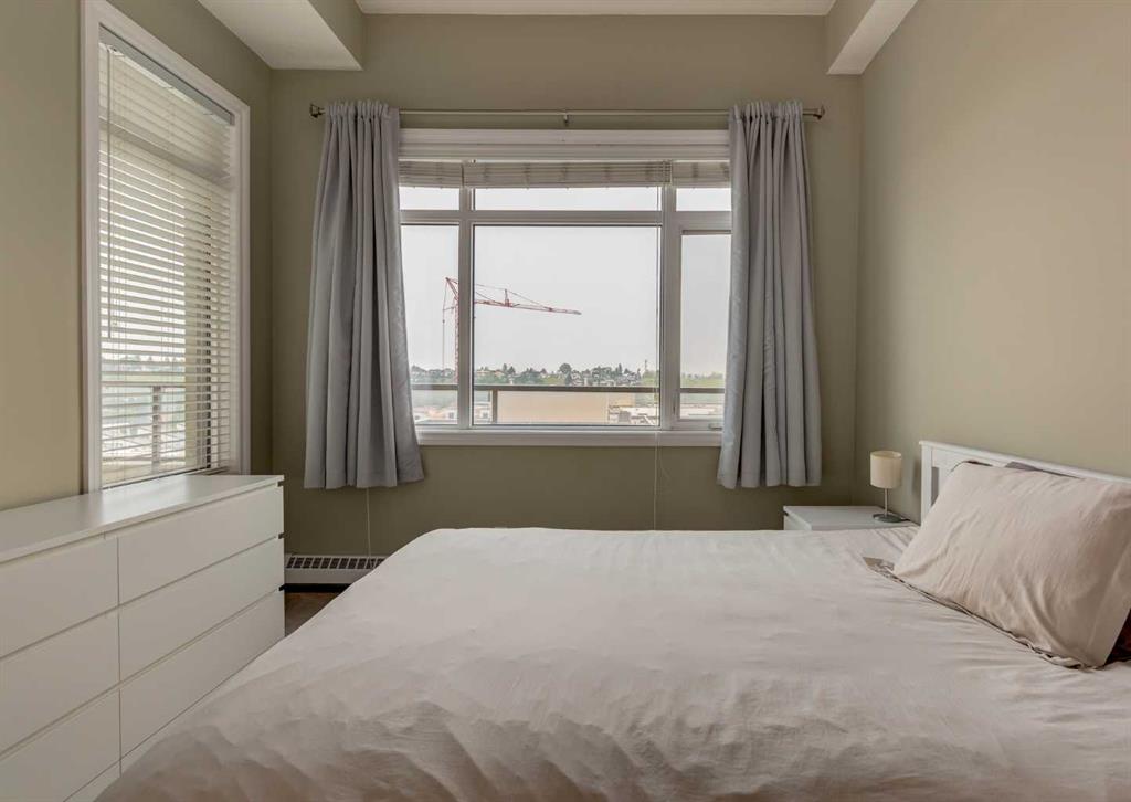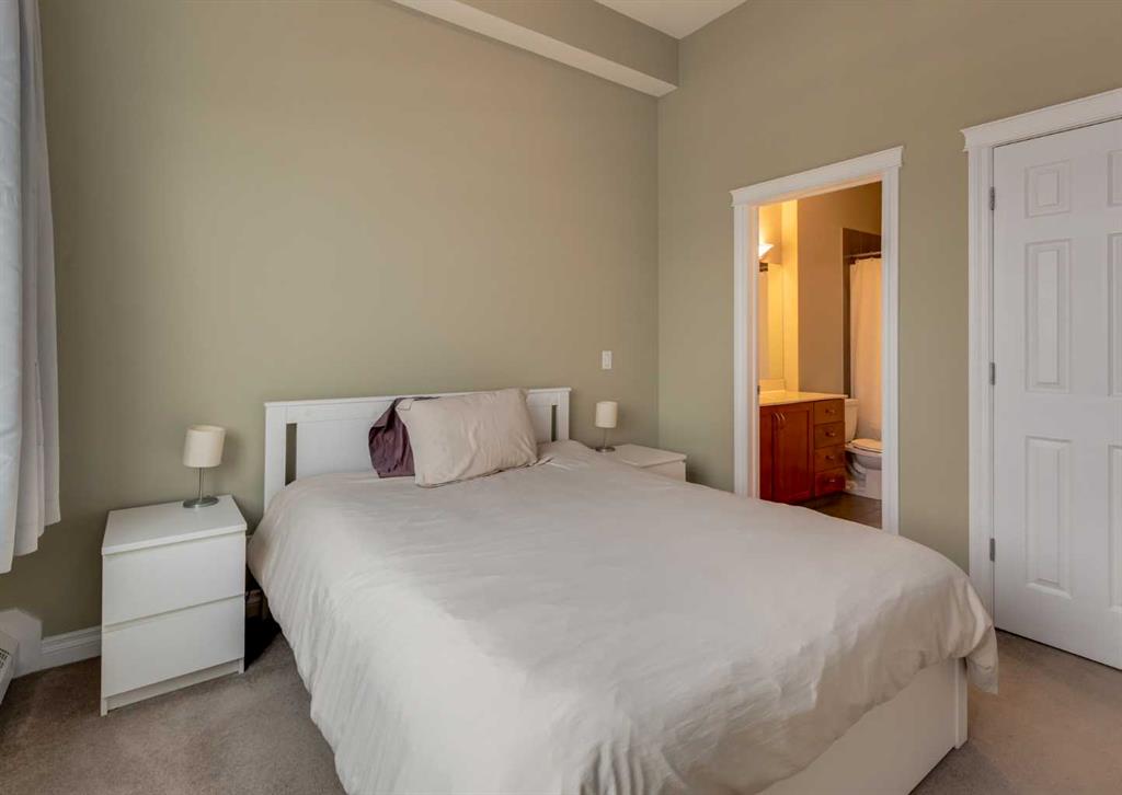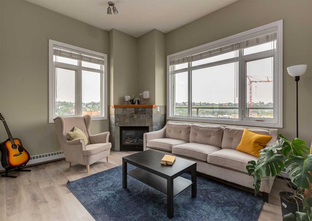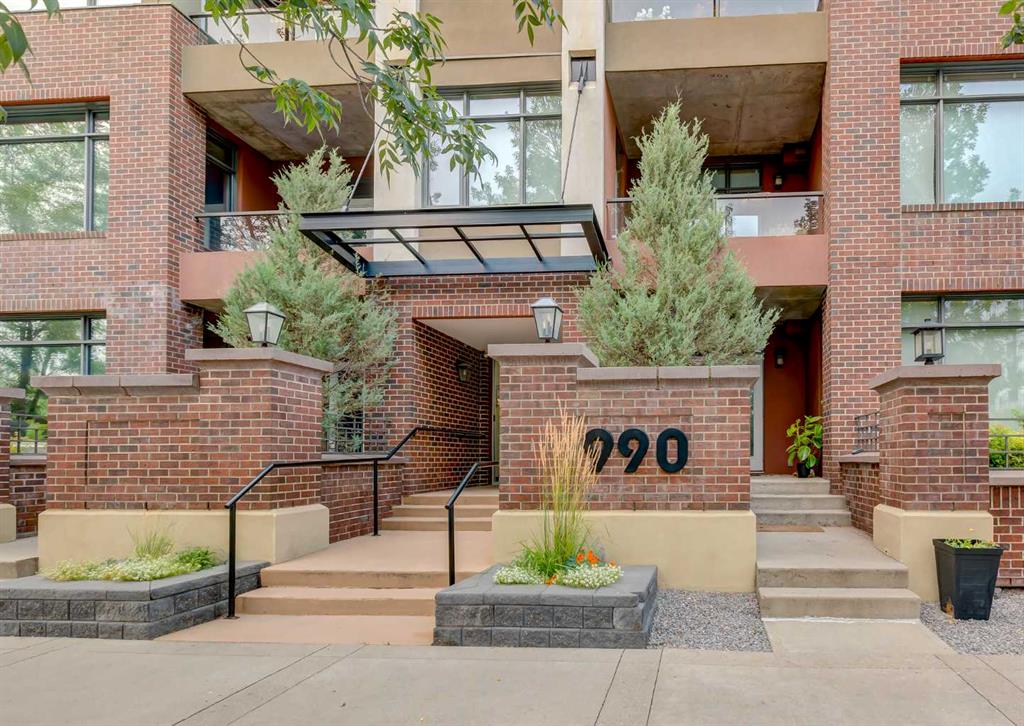 BACK ON THE MARKET DUE TO BUYER FINANCING. Welcome to Pontefino II in the desirable inner-city neighborhood of Bridgeland. This sophisticated concrete condo sits across from Murdoc Park and is just steps away from some of Calgary’s best restaurants, cafés, and shops, with quick access to the river pathways and downtown by foot, bike, or car. This top floor corner unit is flooded with natural light thanks to soaring 10 ft ceilings, expansive windows, and unobstructed eastern views that capture beautiful morning sunrises. The main living area has been updated with luxury vinyl plank flooring and features a cozy gas fireplace, a defined dining space, and access to a large private balcony. The unit offers two bedrooms and one full bathroom, with the second bedroom best suited as a den or guest room. The bathroom can be conveniently accessed from both the primary bedroom and the main hallway. Additional features include in-suite laundry, a titled underground parking stall, an assigned storage locker, and access to visitor parking and a convenient car wash bay in the secure parkade. This is a rare opportunity to own a bright, top floor corner condo in one of Calgary’s most vibrant inner-city communities. Book your showing today!
