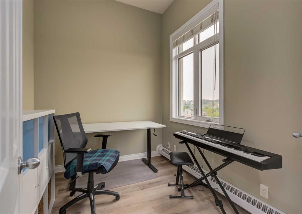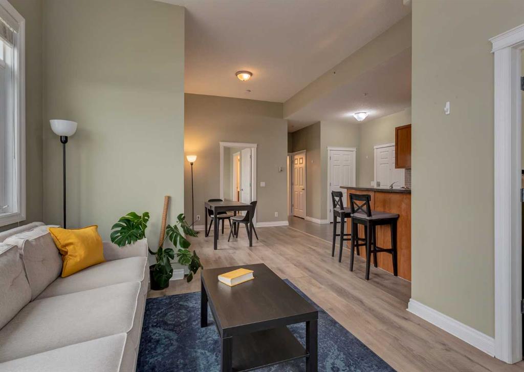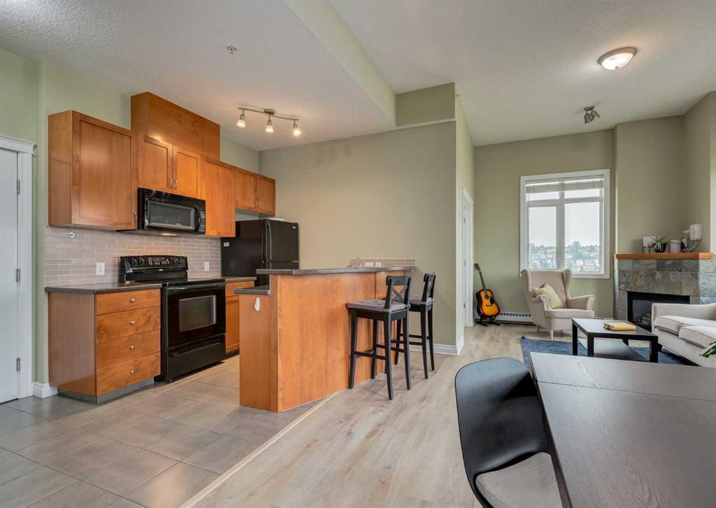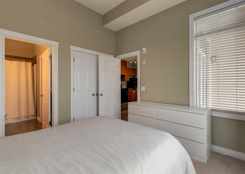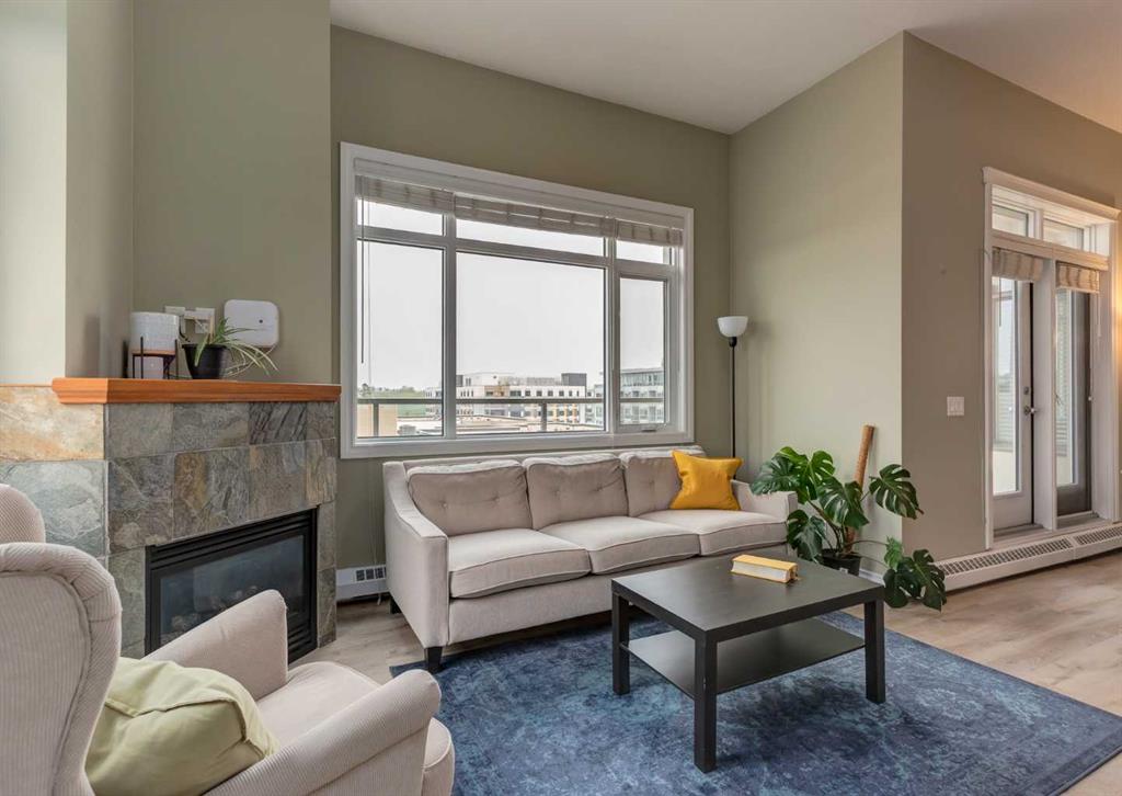 BACK ON THE MARKET DUE TO BUYER FINANCING. Welcome to Pontefino II in the desirable inner-city neighborhood of Bridgeland. This sophisticated concrete condo sits across from Murdoc Park and is just steps away from some of Calgary’s best restaurants, cafés, and shops, with quick access to the river pathways and downtown by foot, bike, or car. This top floor corner unit is flooded with natural light thanks to soaring 10 ft ceilings, expansive windows, and unobstructed eastern views that capture beautiful morning sunrises. The main living area has been updated with luxury vinyl plank flooring and features a cozy gas fireplace, a defined dining space, and access to a large private balcony. The unit offers two bedrooms and one full bathroom, with the second bedroom best suited as a den or guest room. The bathroom can be conveniently accessed from both the primary bedroom and the main hallway. Additional features include in-suite laundry, a titled underground parking stall, an assigned storage locker, and access to visitor parking and a convenient car wash bay in the secure parkade. This is a rare opportunity to own a bright, top floor corner condo in one of Calgary’s most vibrant inner-city communities. Book your showing today!