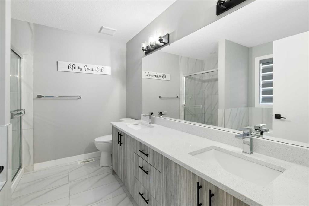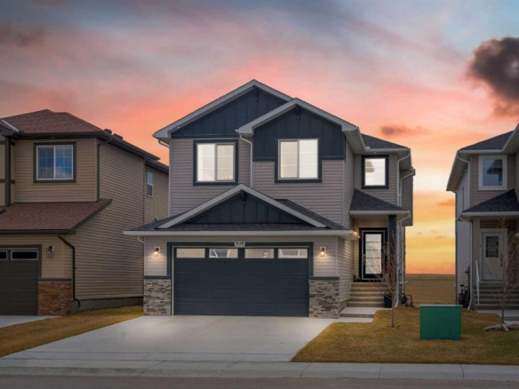 Experience elevated living in this stunning former show home by Sunview Custom Homes. Located just steps from George Freeman K-9 School, this home combines modern design, exceptional craftsmanship, and everyday functionality. From the moment you enter, you’re welcomed by high ceilings, bright natural light, and modern high end finishes that set the tone for the entire home. The open-concept main floor features a chef-inspired kitchen with two-toned European cabinetry, white quartz countertops, high-end stainless steel appliances, and a large central island that’s perfect for entertaining or family gatherings. The adjoining living and dining spaces are accented by a cozy gas fireplace, 9’ ceilings, and oversized windows with premium coverings. Step outside to enjoy the back deck, ideal for year-round BBQs and relaxing evenings. A walk-through pantry, powder room, also with quartz countertops, and luxury vinyl plank flooring complete the stylish and functional main level. Upstairs offers three spacious bedrooms, including a primary suite with a walk-in closet, 5-piece ensuite with jetted tub. A bright bonus room adds the perfect space for family movie nights or quiet reading, while upstairs laundry keeps things convenient. The basement is ready for your ideas – already framed for two additional bedrooms or office space and featuring 9’ ceilings and a separate entrance, offering potential for future development (secondary suite subject to municipal approval and permitting). This home blends luxury, comfort, and practicality – truly the perfect place for you to LOVE WHERE YOU LIVE! Please note: Pre-sale home inspection done, report available on request.