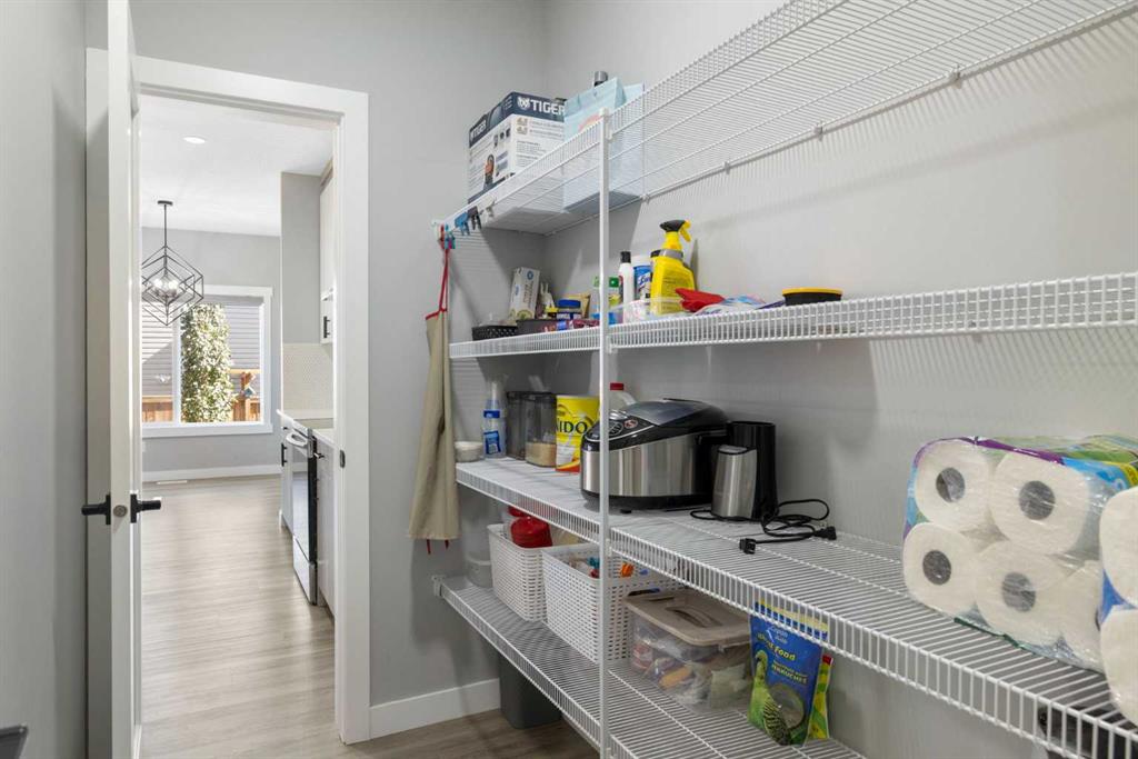 walk-through pantry, powder room, also with quartz countertops, and luxury vinyl plank flooring complete the stylish and functional main level.