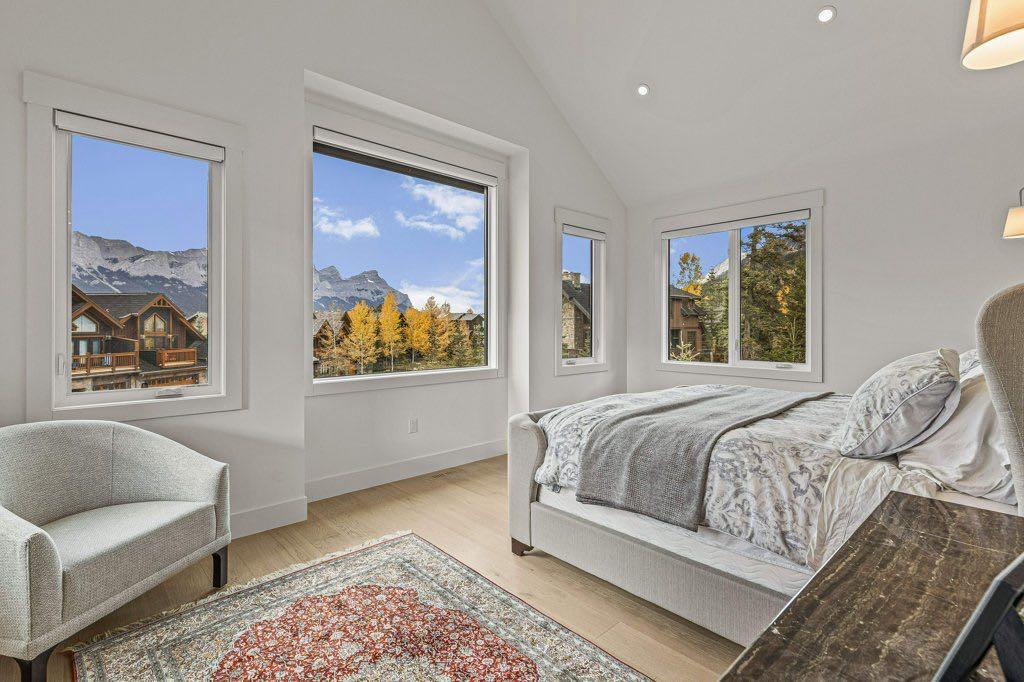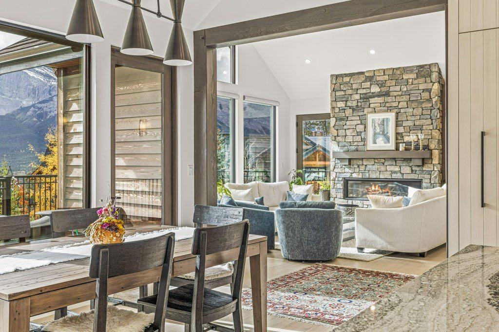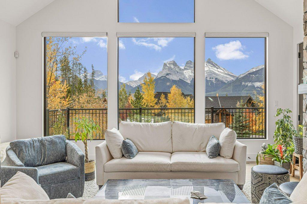 One of the Highest Elevated Homes in Canmore! Perched in the heart of the prestigious Silvertip community, this remarkable 4 bed 4 bath home redefines contemporary mountain living. Boasting an expansive 13,119 SF Lot, this property is only 6 yrs old. Prepare to be captivated by the unparalleled panoramic views from literally every window from this 3,418 SF all above grade home. The stunning 3 Sisters becomes an integral part of your daily life, visible from your kitchen, great room, primary bed & SW deck. Prefer to look over the 13th Green and fairway of the golf course…it’s visible from the kitchen, the primary bed, super sunny bfast nook, guest beds and the NE facing deck! Step inside, and you’ll be greeted by an open plan that blends sophistication with the slightly more modern feel in the the Rockies including a European inspired kitchen w/ Wolf Induction, Steam and Wall Oven and Sub Zero fridge.