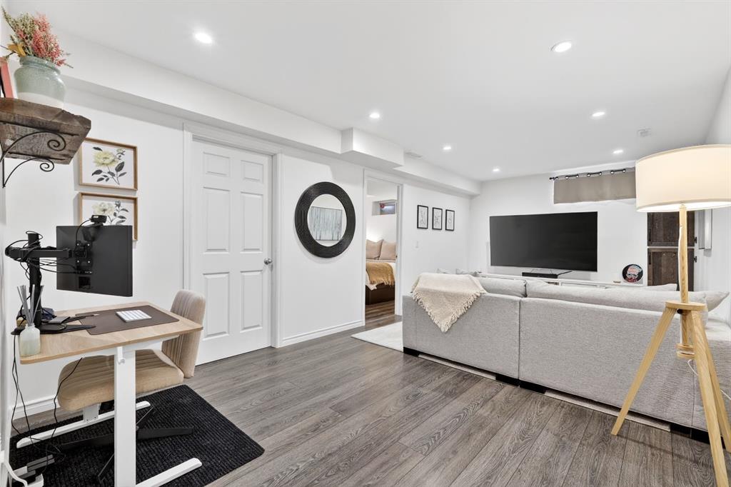 Upstairs offers three bedrooms ideal for a growing family, including a spacious primary retreat complete with a large walk-in closet and a beautiful ensuite featuring dual vanities and a recently renovated shower completed in 2026. Two additional bedrooms and a full 4-piece bathroom complete the upper level. The fully developed lower level adds incredible flexibility with a spacious recreation/media room and an additional non-conforming bedroom, perfect for guests, a home office, or a gym. Outside, enjoy the expansive landscaped south-facing backyard with patio. The property also features an oversized double detached garage plus a rare oversized driveway offering ample additional parking. Ideally located just down the road from a park, close to numerous schools, and only minutes from Calgary’s Downtown Core, this home offers a quick commute and easy access to the vibrant dining and shopping of Marda Loop. Notable improvements since purchase include the primary ensuite shower renovation in 2026, new roof in 2024, vinyl siding in 2024, fence and deck in 2022, interior paint in 2022, and the addition of air conditioning. This is a move-in ready home combining location, lifestyle, and thoughtful upgrades, presenting an exceptional opportunity in Garrison Woods.