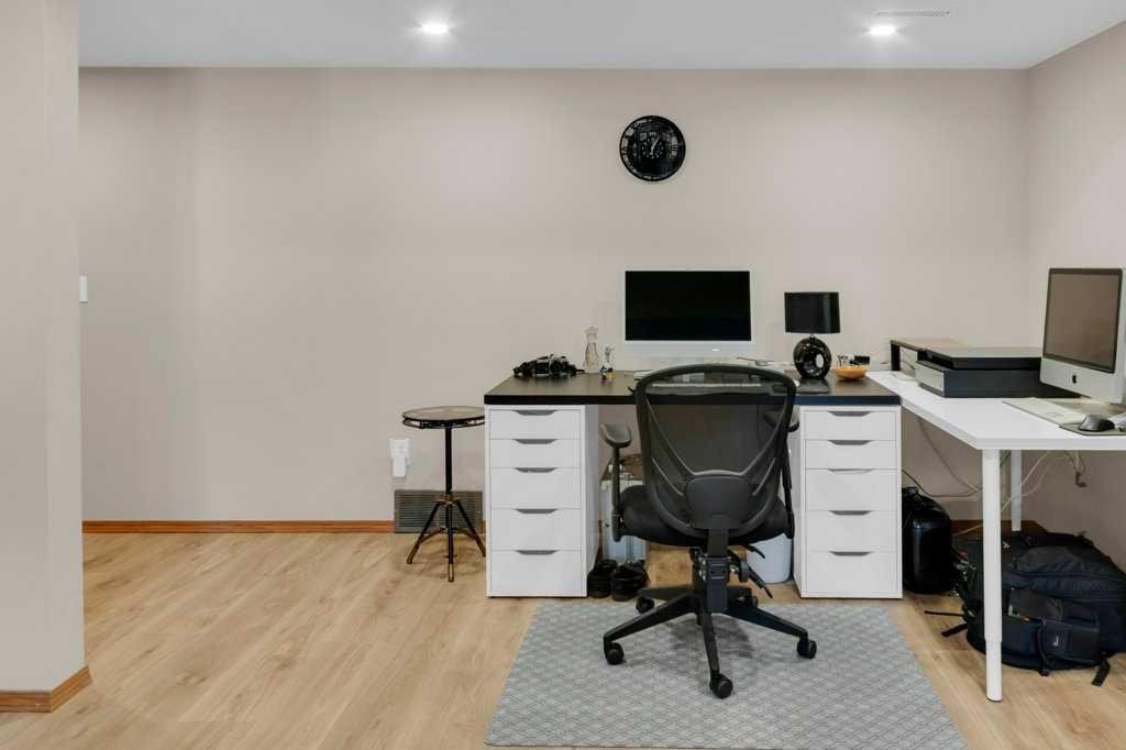 The lower level walkout expands the living space with a large family room featuring an electric fireplace, offering a warm and versatile area ideal for relaxing, entertaining, or incorporating a home office. This level also offers a generous bedroom, a four-piece bathroom, an impressive full-width storage room, and direct access to a private patio, perfect for quiet mornings or relaxed evenings outdoors.