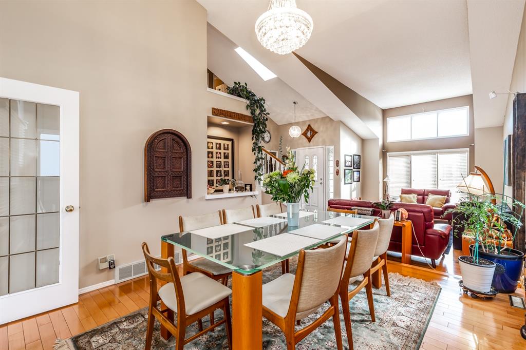 Welcome home to this stunning two-storey split, perfectly situated on a quiet cul-de-sac in the sought-after community of Edgemont. Boasting exceptional curb appeal and an oversized garage, this beautifully maintained home offers space, style, and comfort for the whole family. The main level features a bright, open-concept layout with vaulted ceilings in the spacious living room and formal dining area. A double-entry foyer provides year-round protection from the elements and opens to a grand circular staircase with an impressive vaulted entry. The updated gourmet kitchen is a chef’s dream, showcasing stainless steel appliances including a gas cooktop, wall oven, custom hood fan, dishwasher, and double-door refrigerator. Granite countertops, a decorative tile backsplash, and a large island provide both elegance and functionality. The kitchen flows seamlessly into the dining nook, offering easy access to the expansive deck and beautifully landscaped, massive backyard—perfect for entertaining or relaxing outdoors. The inviting family room features a cozy fireplace framed by custom built-ins, creating the ideal gathering space. Upstairs, you’ll find four generously sized bedrooms, including a bright and spacious primary retreat with a walk-in closet and four-piece ensuite. An additional four-piece bathroom completes the upper level.