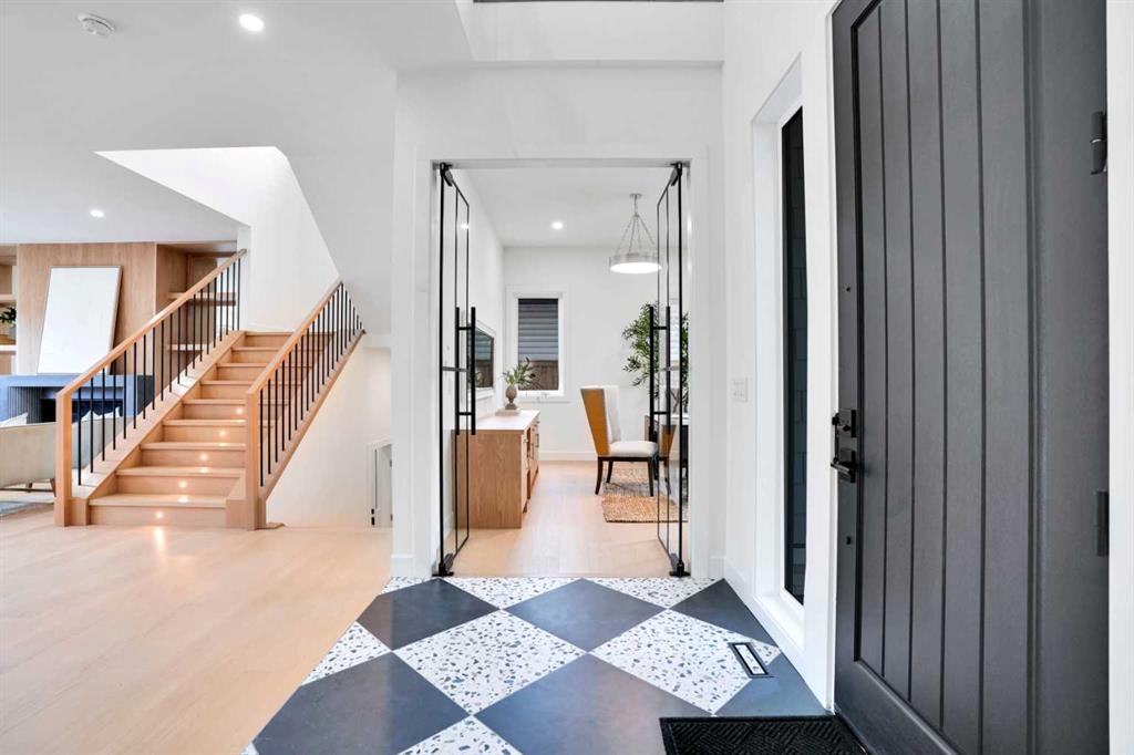 This NEW Luxurious & Modern home Built by Craft Haven Homes and creatively designed by Maxime Chin is built for the discerning family. This architectural masterpiece offers a well thought out bright and airy functional layout. Located on the quiet tree lined Lacombe Way in the family friendly prestigious community of Lakeview. Boasting over 4,700 sq. ft. of luxury living on 3 levels. With 5 bedrooms & 5 Bathrooms This is a must-see home, showcasing many features including natural materials, bold design, and an exceptionally functional layout and conveniently located steps to shopping, coffee shop and restaurants. The welcoming exterior showcases a sophisticated mix of natural stone, Hardie shingles, and expansive black-framed windows, creating a bold yet timeless first impression. Upon entering the Grand Entrance, you are flanked by a formal dining room and private office at the front of the home. The open-concept sun filled main floor boasts 10-ft ceilings, expansive windows, creating an airy and inviting atmosphere. Chef inspired Kitchen features two custom stone wrapped waterfall islands with quartz counters. Upgraded JENNAIR built-in appliance package includes, a gas cooktop, built in range & microwave ovens, paneled fridge/freezer, and custom oak cabinetry, and two bar fridges. A convenient butler’s pantry adds convenience and storage leading to the formal Dining Room. The expansive living room centers around a striking stone gas fireplace with built-ins and floor-to-ceiling windows. Large patio doors blend the Indoor-Outdoor Connection leading to the rear deck and landscaped fully fenced backyard ideal for summer gatherings, or quiet evenings. You will love the spacious mudroom with custom built-ins and bench seating connects directly to the oversized TRIPLE ATTACHED GARAGE. Heading upstairs the peaceful Bonus room greets you at the top of the stairs along with 3 bedrooms. The primary suite boasts vaulted ceilings, spa-inspired ensuite with heated floors, steam shower with rain feature, freestanding soaker tub, dual vanities, and an oversized walk-in closet with custom storage. Two additional bedrooms each feature walk-in closets; one includes a private ensuite with waterfall quartz vanity. A vaulted-ceiling bonus room, full dual-vanity bathroom, and a laundry room with custom cabinetry complete this level. The Fully Developed Basement is designed for both entertainment and comfort, featuring a spacious rec room with custom wet bar, a dedicated home gym with rubber flooring, two additional bedrooms with walk-in closets, and a full bathroom—perfect for guests or extended family. This home is more than a residence—it is a modern sanctuary, blending innovative design, luxurious finishes, and an unbeatable Lakeview location close to Glenmore Reservoir, Weaslehead pathways, top-rated schools, and quick access to the Ring Road and downtown is only 12 minutes away. LOOK FOR VIRTUAL TOUR LINK FOR DETAILED PICTURES AND FLOOR PLAN