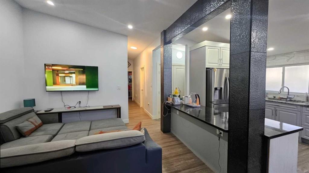 Bungalow-style duplex featuring a fully renovated main floor and a separate illegal suite in the basment with its own entrance. The main level offers approximately 1,000 sq ft with 3 bedrooms, 2 full bathrooms, a bright living area, and an laundry room. The renovated kitchen showcases beautiful cabinetry and stone countertops, with a completed dishwasher rough-in for easy installation. The home also includes a front deck with railing and wide steps, adding great curb appeal and a welcoming entry.