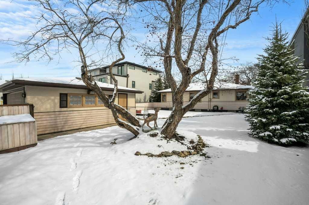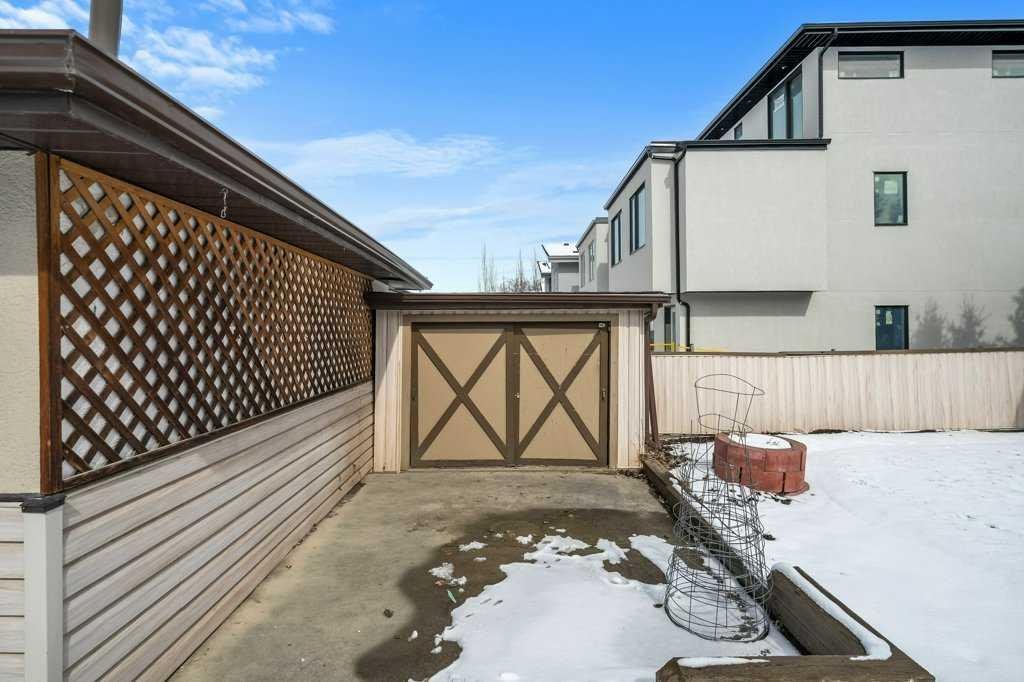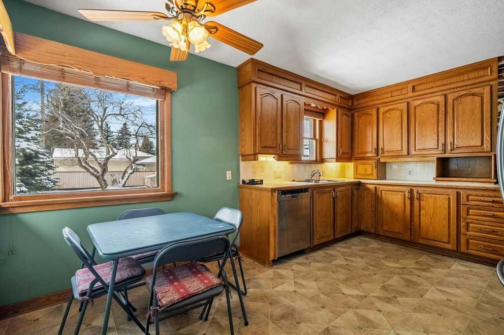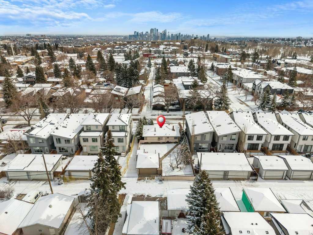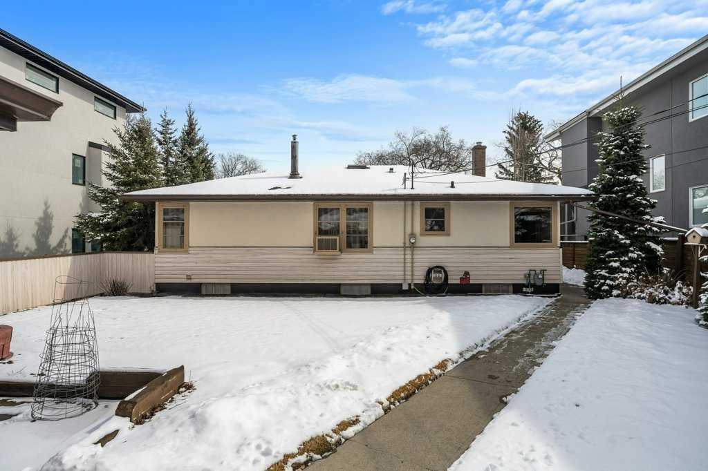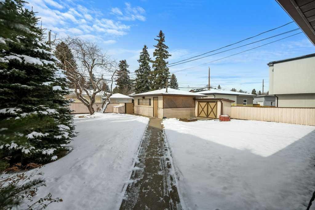 Whether you’re looking to hold, renovate, or redevelop, this is a standout land value opportunity in one of Calgary’s most connected inner-city communities. Opportunities like this—featuring lot size, frontage, location, and ownership history—are increasingly rare. The home itself consists of stucco and vinyl siding, asphalt shingles, a front entry and separate side access. The main floor offers original hardwood flooring, a front living room, rear eat in kitchen with a full appliance package. A gas fireplace is located in the open den, with a 4 piece bath to the end of the hall situated between the 2 upper bedrooms. Lower level development includes a flex room, recreation room with a wet bar, an electric fireplace a plethora of storage within the full width utility room a newer hot water tank and a 3 piece bath. Fully fenced and landscaped with ally access from the heated oversized double detached garage.