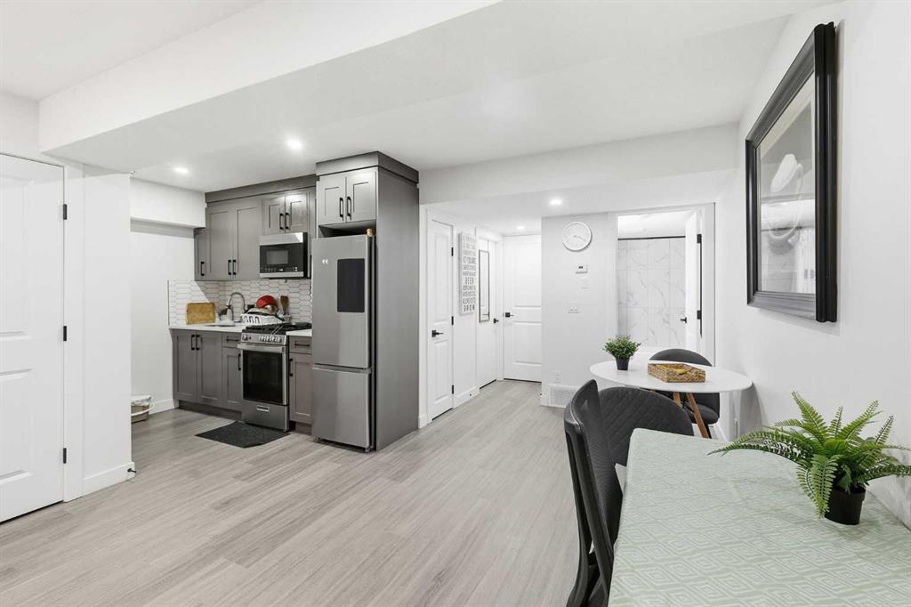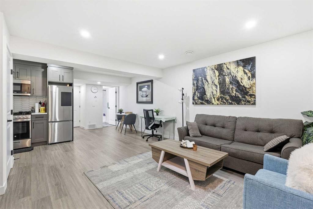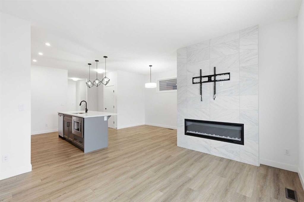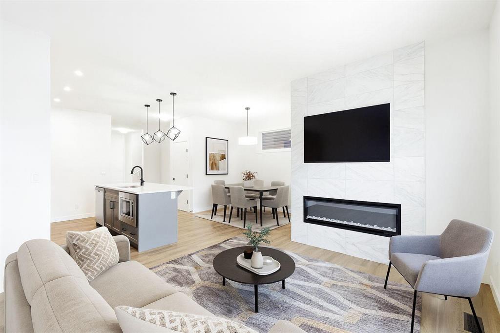 Welcome to this beautifully designed 2 storey home featuring a bright, open concept main floor and a fully finished legal basement suite. The main level offers an inviting living room with a cozy fireplace, a spacious dining area, and a modern kitchen complete with sleek finishes perfect for everyday living and entertaining. A versatile office/bedroom on the main floor adds convenience and flexibility for guests or remote work. Upstairs, the airy primary bedroom includes a private ensuite, while two additional large bedrooms provide plenty of space for family or guests. A dedicated laundry room completes the upper level for added comfort and functionality. The legal 1 bedroom basement suite is ideal for extended family or rental income, featuring a full kitchen, comfortable living room, its own laundry, and a separate entrance. This home offers exceptional value, smart layout, and the opportunity for mortgage helper income, truly a rare find! Book a private showing with your favorite Realtor.