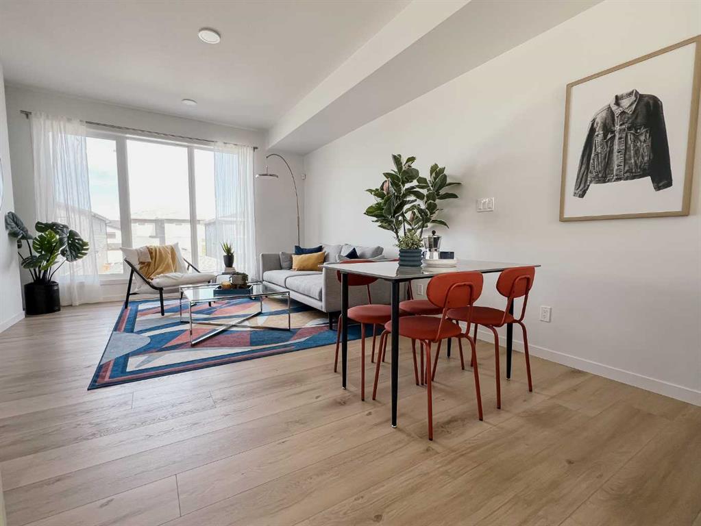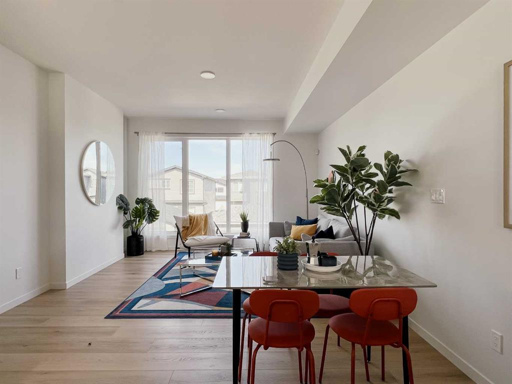 Welcome to your dream home! This beautiful two-bedroom condo, backing onto serene green space, offers a perfect blend of comfort and style. With every detail thoughtfully curated. Enter the home to find a quaint flex space and foyer. Up a short flight of stairs to the main floor which features a living room, dining area, and kitchen area complemented by a half bath. Oversized windows on every level provide abundant natural light and stunning views. The upper floor includes convenient laundry and offers an additional flex space, which can be converted into a full washroom if you choose. The single-car attached garage boasts an oversized overhead door. The home includes rough-in gas line for a BBQ, roughed-in air conditioning, and luxury finishes like vinyl plank flooring, quartz countertops, and your choice of Linen or Slate color palettes. With three floors of above-ground living space, this condo is a must-see! Contact us today to make it yours! ( PLEASE note* photos are of similar models but there are not an exact replication of the home)