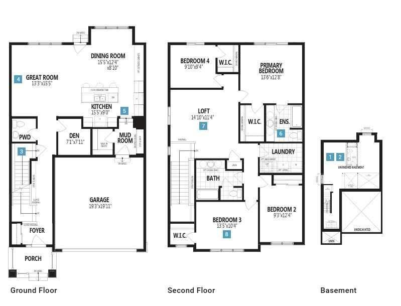 Click brochure link for more details. The Whistler’s foyer and extra wide staircase welcome you into this comfortable family home. The large, open concept luxury vinyl plank main floor is ideal for simple mornings around the quartz breakfast bar, lively family meals and quality time in your living room around the fireplace. With the walk-in pantry and mudroom just off the garage, clutter always remains out of view. When it’s time to get to work, the dedicated den is the ultimate space to focus. The spacious second floor, with four bedrooms and multiple walk-in closets, gives each family member their own space. While the main floor encourages shared family moments, the second floor allows for “me time”. Discover a conveniently located laundry room and linen closet across the hall from a full bathroom. After a long day, relax in your generously sized primary bedroom, complete with a walk-in closet and an ensuite with dual sinks and glass shower. A side door and 9′ basement foundation are included with basement developement potential (pending permits and approvals). Mattamy includes 8 solar panels on all homes as a standard inclusion! *Renderings are representative – exterior colours may vary.