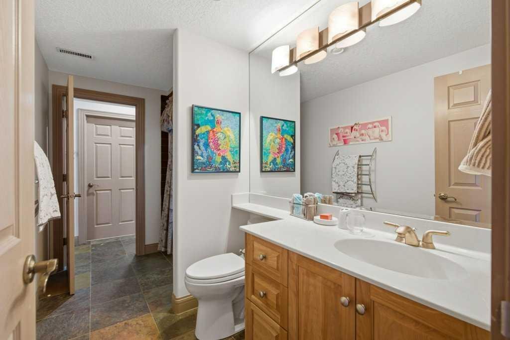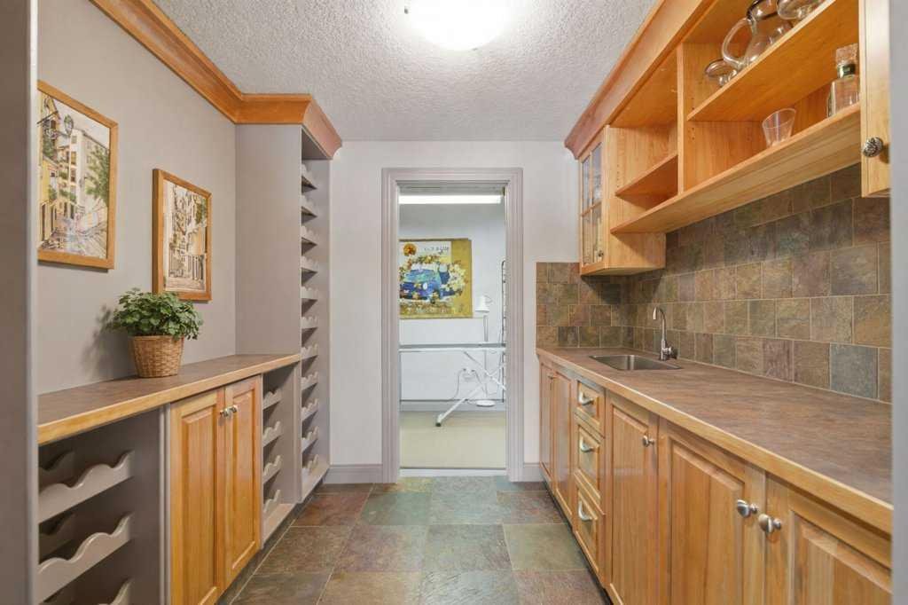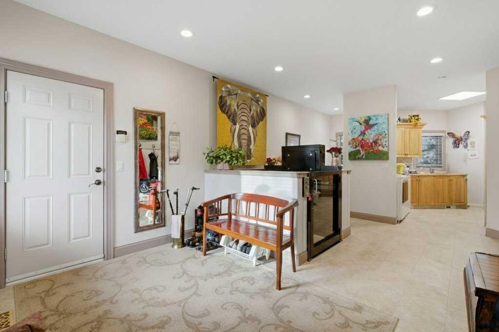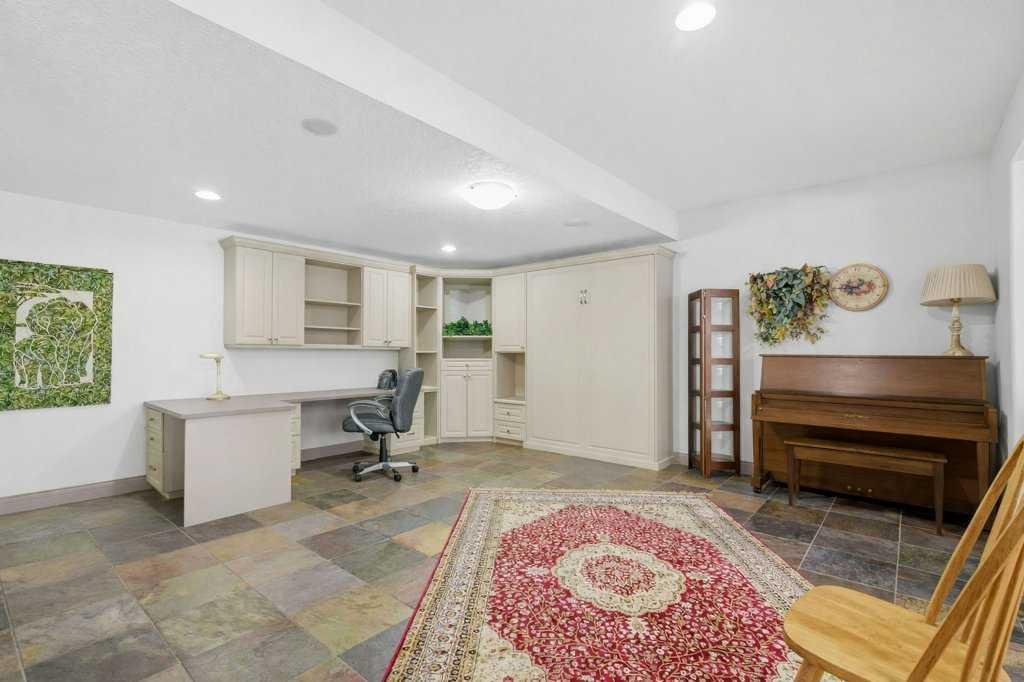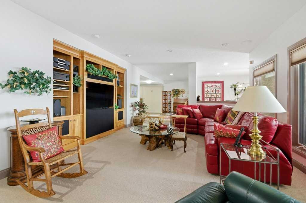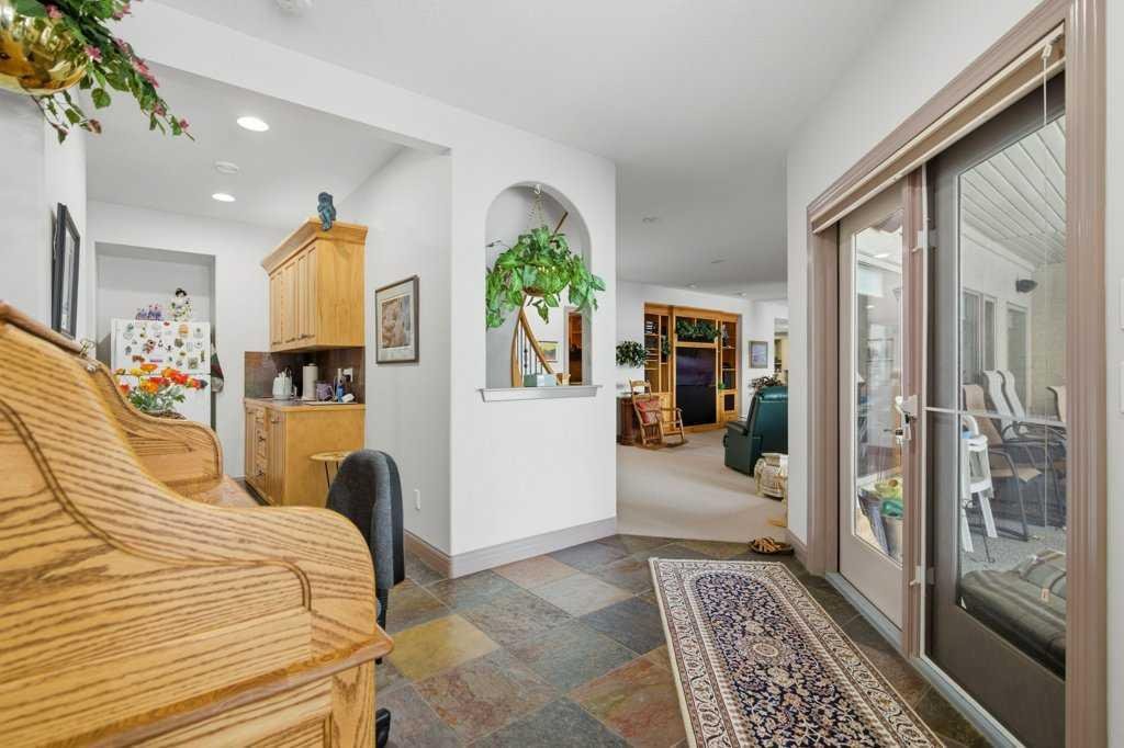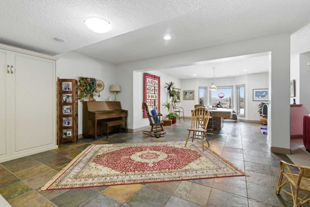 A rare opportunity to own a lakeside acreage in Church Ranches. Custom-built by Maillot Homes, this original-owner walkout bungalow sits on a beautiful 2.04-acre lakefront lot on the shores of Cheyanne Lake in Church Ranches. Offering nearly 6,000 sq. ft. of total living space, the home is designed for both comfort and longevity, featuring a thoughtful layout that includes a private home office, a main-floor primary suite, and an integrated elevator for easy access between levels. The main floor is centered around an open living area with vaulted ceilings and a floor-to-ceiling stone fireplace. The kitchen is built for daily life and hosting alike, finished with marble countertops, a Wolf cooktop, and double ovens. Adjacent to the kitchen, a bright eating nook and a cozy sitting area create an inviting space for casual gatherings. Throughout the home, the quality of construction is evident in the solid red birch doors and custom millwork. The primary bedroom serves as a quiet retreat, complete with its own fireplace and French doors leading to the back deck, which features a built-in BBQ and views of the water. The walk-out lower level is exceptionally bright, with large window banks that bring in plenty of natural light. This level includes two additional bedrooms, an entertainment area with pool table, additional office space with a murphy bed. Plenty of additional storage in the basement. A triple oversized garage with epoxy floors, built in cabinetry for all your storage needs and a work bench. With professionally maintained gardens and landscaping with full irrigation, a private gated driveway, and direct access to your own beach and dock on the swimmable community lake. Gravel pathways around the house for easy access to the gardens and the beach. This is a meticulously maintained for home that offers a peaceful, private lifestyle just minutes from the city. Residents of Church Ranches enjoy seventy acres of private common lands and three public lakes that are maintained by the HOA. The lakes are stocked with trout for fishing and swimmable. There are over 7km of walking trails on the common lands for resident use. Church Ranches is just north of the Calgary city limits and 30 minutes to downtown.