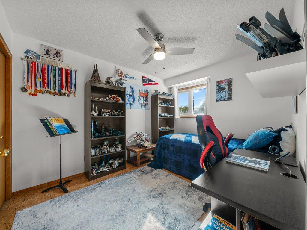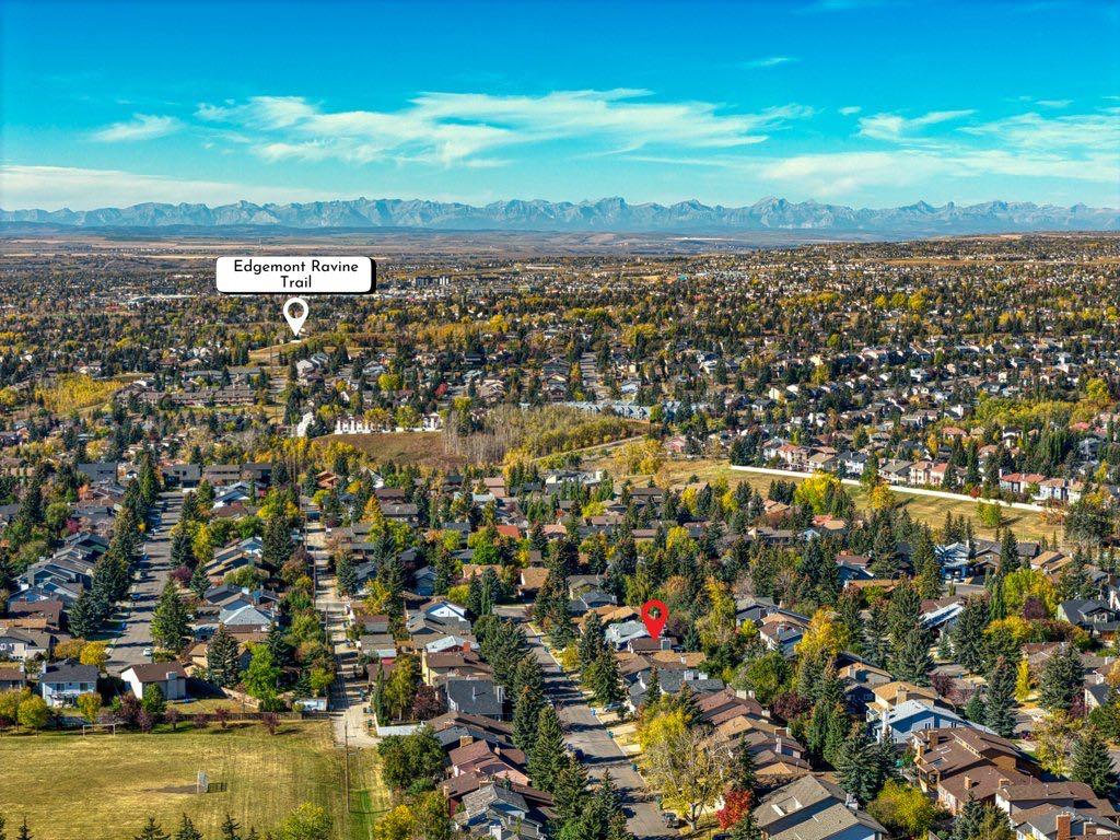 Located in upper Edgemont on a mature, tree-lined lot, this 5-bedroom split level offers over 1,850 sq ft across the three levels, plus a fully developed basement. A practical layout with vaulted ceilings and cherry hardwood supports comfortable day-to-day living. The kitchen adds function with granite counters, a full stainless appliance package, tile backsplash, updated tile flooring, and pot lights. Upstairs are three bedrooms, including a primary with ensuite, while a main-level bedroom works well as a home office next to the powder room. The renovated basement provides added flexibility with a rec room, wet bar, built-in fireplace, a fifth bedroom, and generous crawl-space storage. Recent improvements include a modern exterior repaint, newer high-efficiency furnace and central A/C, and updated windows for comfort and efficiency. Set on a quiet street with mature landscaping and close access to neighbourhood schools and Nose Hill Park.