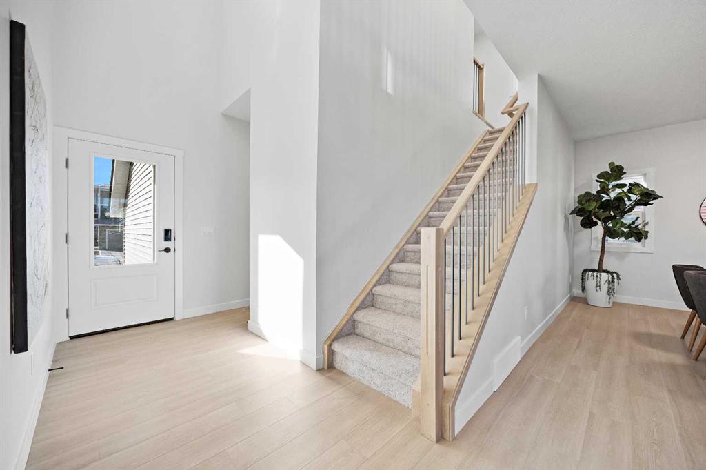 Welcome to the Montay in Cochrane’s Fireside community, offering 2,021 sq. ft. of living space with 4 bedrooms and 2.5 bathrooms. This home combines modern design with thoughtful upgrades that make day-to-day living easy. The main floor is anchored by a bright, open kitchen with quartz countertops, shaker cabinetry in Mistral with ebony wipe, a Blanco Silgranit sink in coal black, and a Boardwalk white matte backsplash. The island adds both seating and workspace, while the walk-through pantry and mudroom provide smart storage solutions. The connected dining, living, and great room spaces create the perfect setting for gatherings. Upstairs, the primary suite features a walk-in closet and private ensuite. Three additional bedrooms, a full bathroom, a versatile loft, and upper laundry complete the floor. Interior finishes include Cozy White luxury vinyl plank, Off Shore carpet, and an Origami White palette accented by fawn-stained railing. This home is built with flexibility in mind, featuring a side entry with basement rough-ins, a 9’ foundation, railing upgrades, and gas lines to both the range and BBQ. A double garage and rear lane access add convenience. Fireside is one of Cochrane’s most connected communities, known for its schools, local shops, and endless pathways that weave through parks and natural spaces. It’s a neighborhood designed for families and outdoor lifestyles, with quick access to Calgary and the mountains. Area size was calculated by applying the RMS to the blueprints provided by the builder.