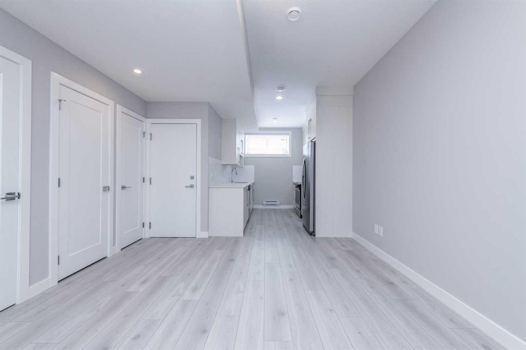 The legal, city-registered basement suite is professionally finished and features high ceilings, a bright open layout, one spacious bedroom, a full bathroom, a modern kitchen with quality appliances, and in-suite laundry — all with a private entrance with a concrete walkway for added privacy.