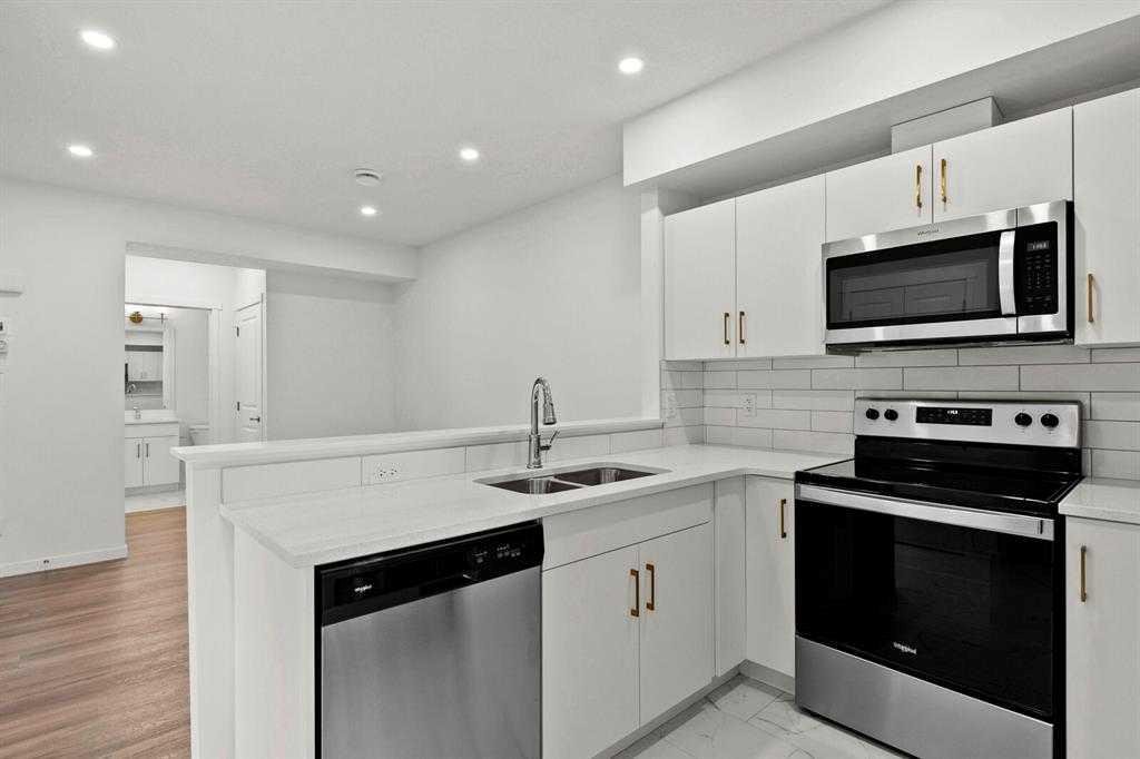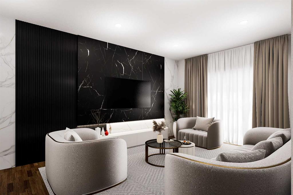 Experience lake-community living in the heart of Mahogany, where beach days, skating, parks, and endless amenities define your everyday lifestyle. This modern 2-storey home (built in 2022) offers 1775 sq ft above grade, elevated by 10 ft ceilings, hardwood flooring, and chic designer touches, including thoughtful customized wall panelling throughout. The bright, open-concept main floor showcases a kitchen with quartz countertops, stainless steel appliances including a gas stove, gold accents, and a spacious island that flows seamlessly into the dining and living areas, perfect for entertaining. Upstairs, you’ll find three generous bedrooms, including a stunning primary with a walk-in closet and a 5-piece ensuite featuring double vanities, a separate tub and standing shower. This home also features a fully developed 2-bedroom LEGAL SUITE with its own private entrance, ideal for multigenerational living, generating rental income, or offering unmatched flexibility. With a west-facing fenced backyard for those golden evening sunsets, a parking pad ready for double car garage development, modern finishes, and access to Calgary’s largest lake, this home truly checks every box. What an incredible opportunity to own a home where style and convenience are already taken care of. *All furniture in the renderings are available for custom order in the exact size, shape, and colour the buyer would like. If you purchase this home, you get access to a selection of furniture to fit your style.