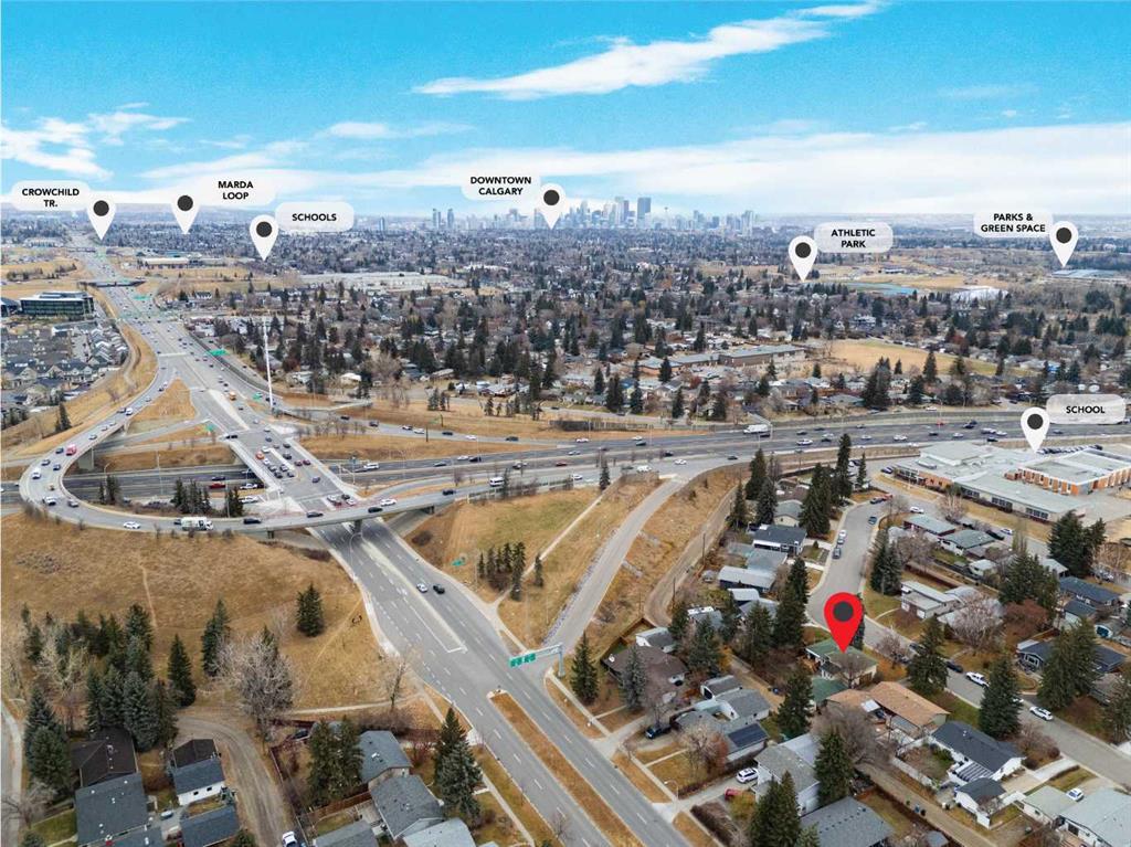 Welcome to this captivating residence nestled in the serene and sought after neighborhood of North Glenmore Park but it is located on the Lakeview side of Glenmore Trail. Nestled in by the Lakeview Golf Course, this location is a hidden gem. This striking 4 level split, built in 1961, boasts 4 bedrooms and 2 baths, with an expansive 1168 sqft on its upper levels, and an additional 3rd level walkout and basement for a total of 2450 sqft of inviting living space.
