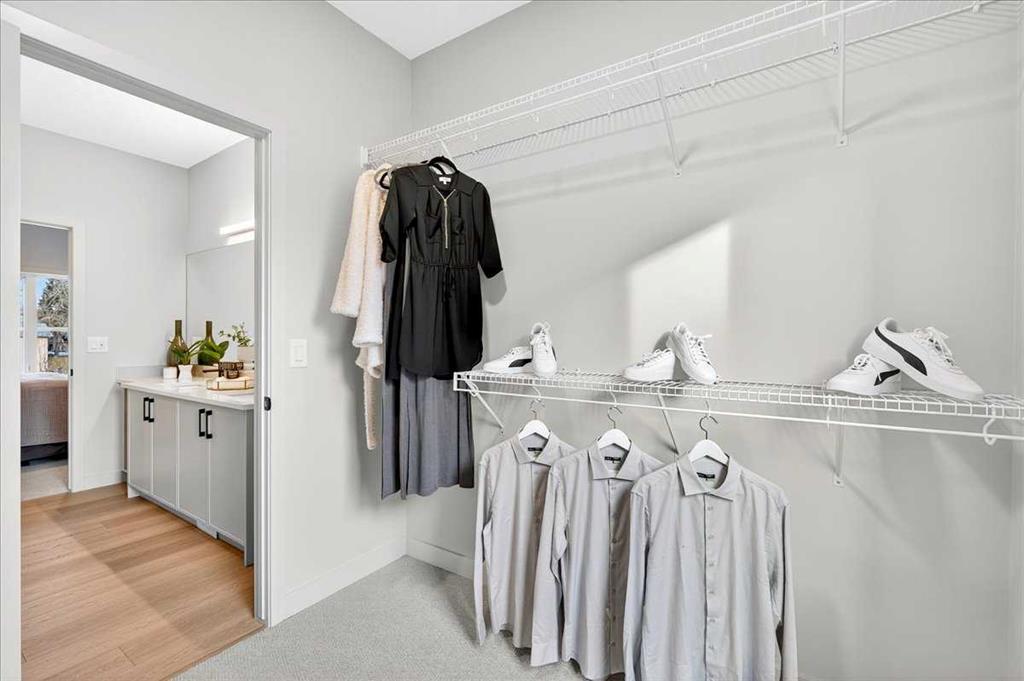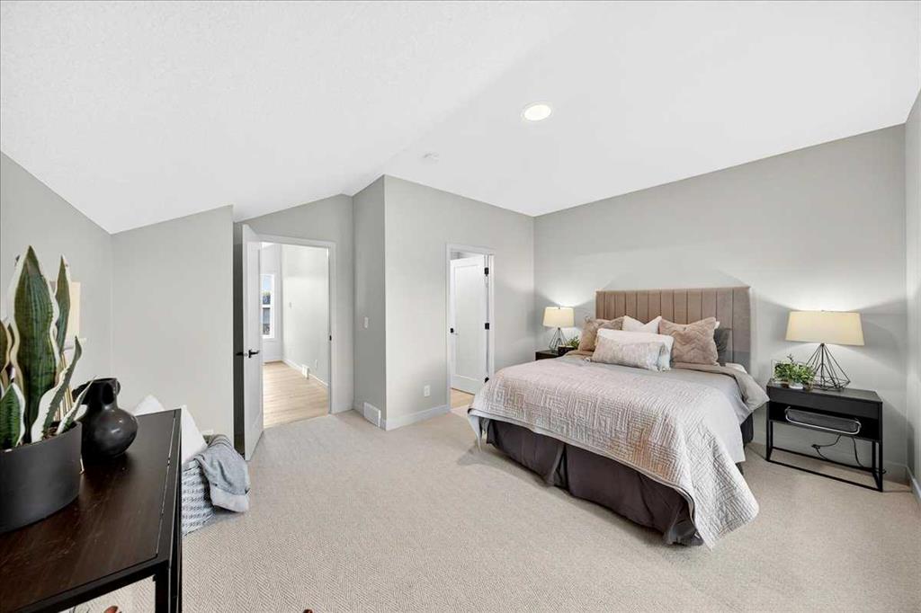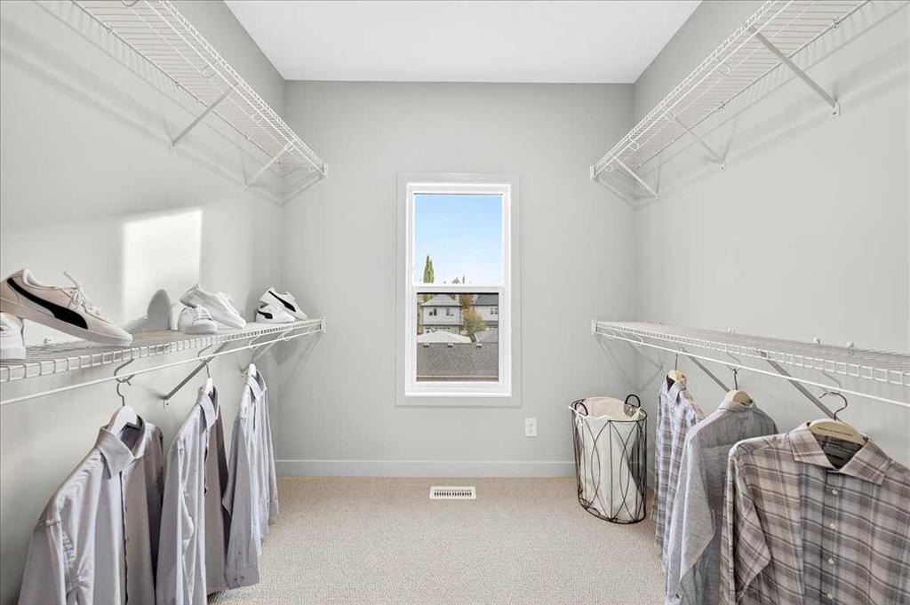 Upstairs, two secondary bedrooms each include a walk-in closet, and the shared four-piece bath features an OVERSIZED VANITY for real counter space. HE THIRD FLOOR IS WHERE THE VIBE SHIFTS—YOUR OWN PRIVATE RETREAT, anchored by an ensuite that pairs dual sinks with a tiled glass shower and a sense of calm that carries through to the large walk-in closet beyond. A small WINDOWED NOOK at the end of the hall adds flexible space for work or reading—one of those touches you don’t realize you needed until you have it.