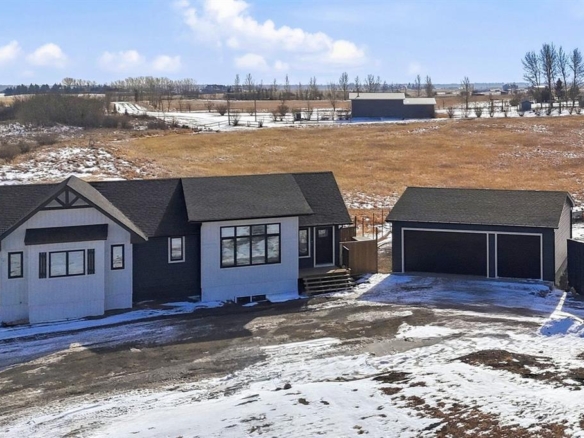 152 Acres of Peaceful Prairie Living, just 9 km from Okotoks! Looking for space, views, and room to breathe? This 152-acre grassland parcel has it all! Rolling hills, mature trees, and a cozy walk-out bungalow that feels like home the moment you walk in. Set just southwest of Okotoks on 434 Ave (west of 64 St), this property blends country quiet with easy access to town. This walkout bungalow offers over 2,000 sq/ft of developed living space, featuring an open-concept layout, a mix of hardwood and vinyl plank floors, and a comfortable main-floor primary suite with a 4-piece ensuite. The kitchen is open and bright with an island and quality appliances, perfect for casual dinners or morning coffee with a view. Many of the windows and doors have been replaced, along with new decking, fresh exterior paint, fresh interior paint and new water softener system installed. Step outside to enjoy the wrap-around deck that catches the morning sun on the east side and offers a covered, south-facing spot to relax or entertain. The lower level of this home has been completely renovated, and it speaks for itself and sports a large family room, full bath (completely re designed to be more spacious), laundry room, and a bedroom. The land itself gently slopes to the South, offering beautiful mountain views, excellent drainage, a spring-fed seasonal creek, and a lovely mix of open space and mature trees. There’s a single detached garage with a new roof, windows, and freshly painted siding, a 48’x29’ Barn complete with all new Tin siding and roofing, wood rail fencing, installation of 2 new auto stock waters, turn out pens, and a turn-around driveway. Whether you’re dreaming of a hobby ranch, a private retreat, or just a peaceful place to put down roots — this one’s worth a look. You’ll love the quiet, the views, and the easygoing country lifestyle that comes with it.