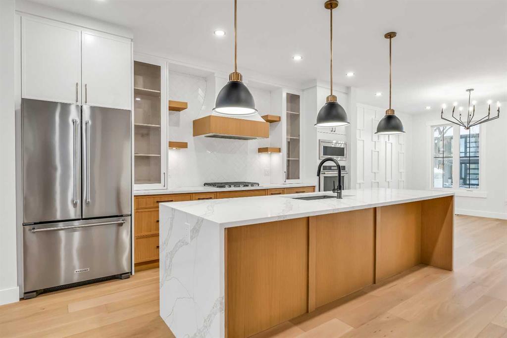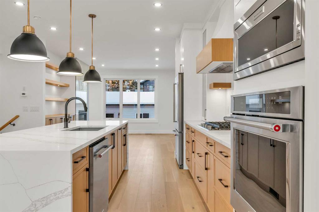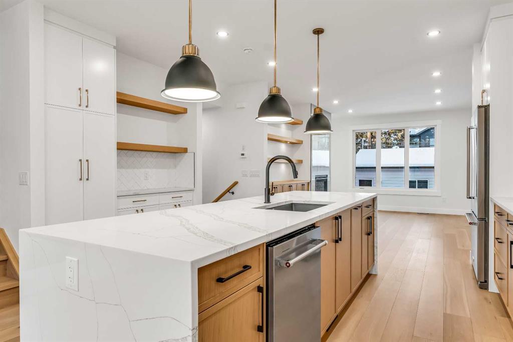 ***OPEN HOUSE: Sat, Dec 6th 12:00 – 2:00pm*** Set on a QUIET TREE-CANOPIED STREET IN MOUNT PLEASANT, this newly built home brings together refined craftsmanship and a layout designed for everyday comfort. A SOUTH-FACING FRONT PATIO introduces the property with warm light and a welcoming place to enjoy peaceful moments outdoors. Inside, CUSTOM MILLWORK in the front foyer sets an elevated tone and leads into an elegant dining room anchored by a WOOD FEATURE WALL that adds depth and character. A beautifully appointed GOURMET KITCHEN encourages both creativity and connection with high-end KITCHENAID APPLIANCES including a GAS COOKTOP and BUILT-IN WALL OVEN and MICROWAVE. STONE COUNTERS, UNDER-CABINET LIGHTING, an OVERSIZED CRUSHED GRANITE SINK, a GARBAGE PULLOUT, and an organized storage layout ensure the space functions effortlessly. A WATERFALL-EDGE ISLAND becomes the gathering point of the home with its clean lines and generous prep space. Adjacent to the kitchen, a walk-through area includes a WALL PANTRY with APPLIANCE COUNTER while an ENCLOSED ROOM offers versatility as a SECOND PANTRY or MAIN FLOOR OFFICE for structured workdays. An inviting living area sits at the back of the home, blending CUSTOM BUILT-IN SHELVING with a GAS FIREPLACE that overlooks the backyard for a relaxing evening atmosphere. A practical mudroom with ABUNDANT STORAGE sits near a tucked-away powder room styled with a WATERFALL-EDGE VANITY. A GLASS-RAILED staircase with HARDWOOD TREADS leads upstairs to a level finished entirely in HARDWOOD FLOORING. A central BONUS ROOM with a WOOD FEATURE WALL creates thoughtful separation between the primary and secondary bedrooms. The primary retreat feels serene with a COFFERED CEILING, LARGE WALK-IN CLOSET, and a finely crafted ENSUITE featuring a STEAM SHOWER, FREE-STANDING TUB, DUAL VANITY, and ELECTRIC IN-FLOOR HEATING for added morning comfort. Two additional bedrooms, a well-designed 4-piece bath, and a convenient laundry room complete this floor. A FULLY DEVELOPED BASEMENT extends the home with a WET BAR and BEVERAGE CENTER that simplify weekend hosting. A spacious rec room includes ENTERTAINMENT BUILT-INS and room for movie nights, games, or fitness setups. A fourth bedroom with LARGE WALK-IN CLOSET and a 4-piece bathroom offer privacy for guests while an enclosed FLEX ROOM provides options for a FIFTH BEDROOM, HOME GYM, or OFFICE depending on lifestyle needs. Enjoy a PRIVATE BACK YARD with EXTENDED GREEN SPACE for children and pets and a generous patio area suited to barbeques and outdoor relaxation. Added conveniences include ROUGH-IN FOR AIR CONDITIONING, a DOUBLE DETACHED GARAGE with 8-FOOT DOOR, EV CHARGER READY ROUGH-IN, and a PAVED BACK LANE. This residence delivers modern luxury, thoughtful design, and walkable inner-city living close to CONFEDERATION PARK, SAIT, and the cafĂ©s and restaurants along 19 Street. A sophisticated offering for buyers seeking exceptional design, quality finishes, and a truly livable inner-city setting.