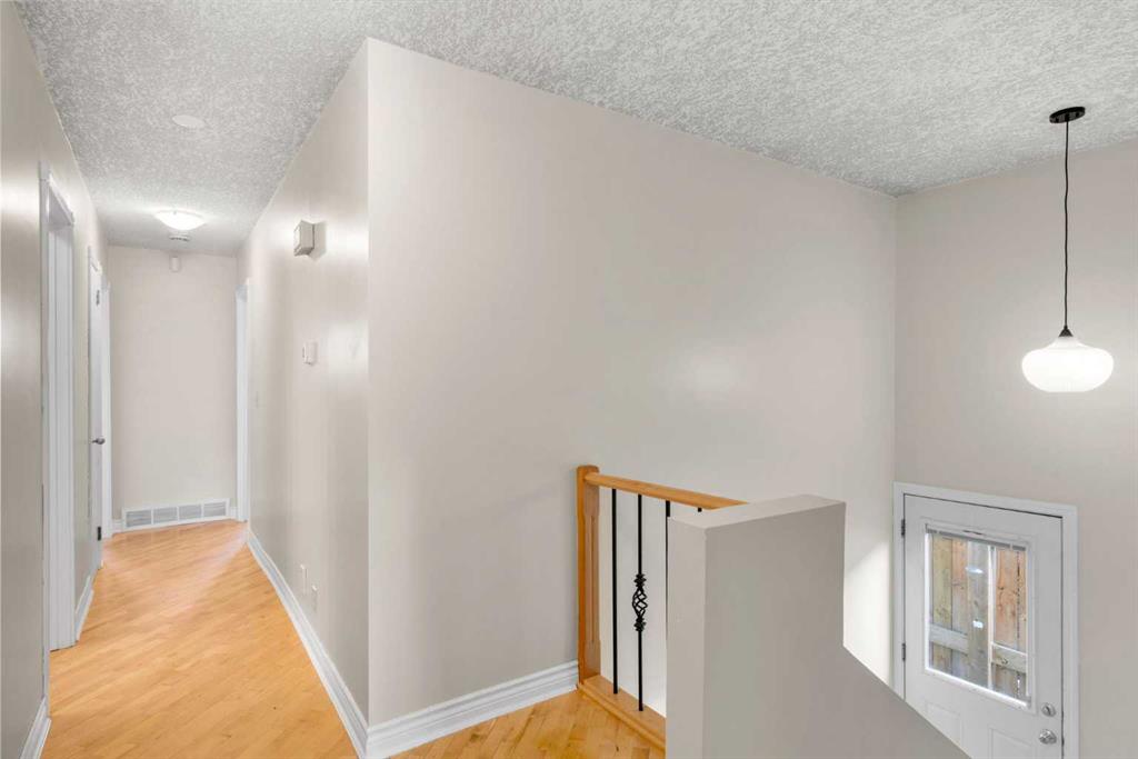 Semi detached unit, close to shopping, schools, bus, parks and Calgary Farmers Market. Primary with three piece ensuite. Total of four bedrooms and three bathrooms. Cozy wood burning fireplace in living room. South facing for plenty of sunlight. Large newer windows. Bi-level side entrance provides future potential for basement suite with City Approval. Roof on house and garage to be replaced by March 31/2026 weather permitting. Single detached garage. Quick possession.