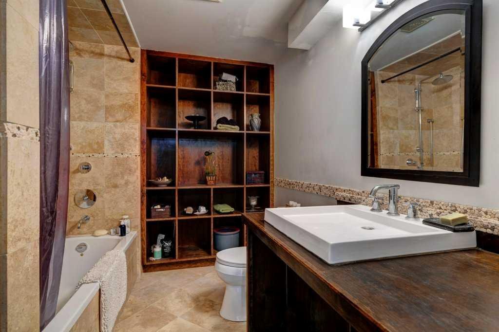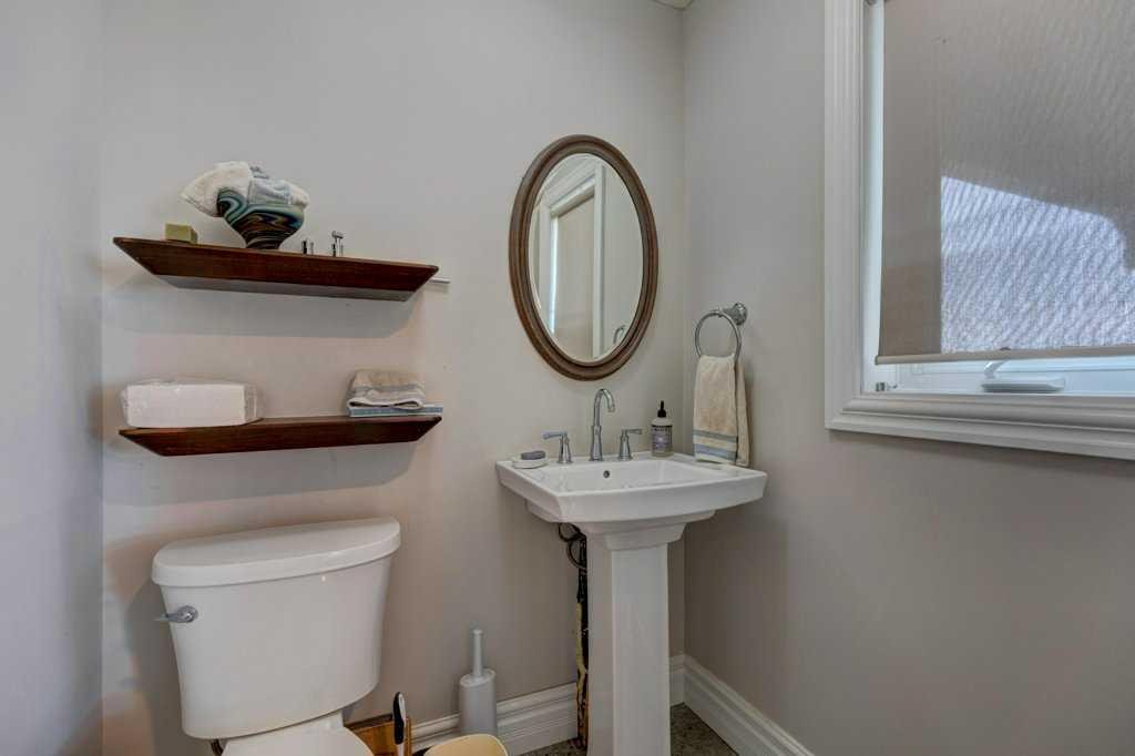The primary bedroom features vaulted ceilings, a gas fireplace, and a custom California Closet. The spa-inspired ensuite is a true showpiece, showcasing a live-edge black walnut vanity with a waterfall leg and mortise & tenon joinery, a rainfall shower, heated towel rack, and handcrafted maple sliding door. A main floor office, perfect for remote work, and a two-piece guest bath complete this level.