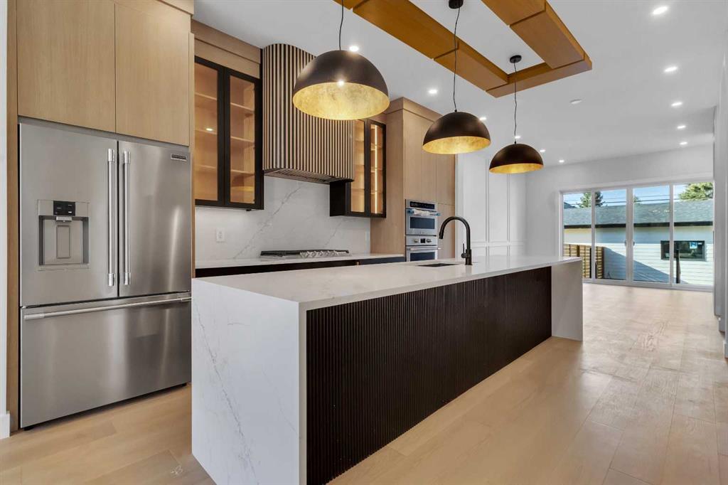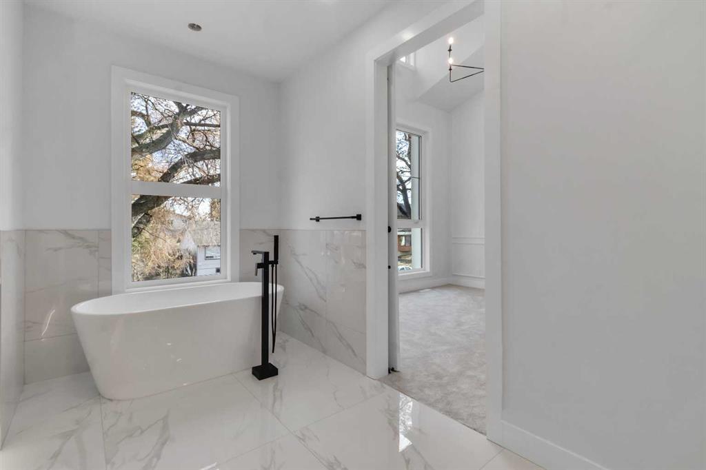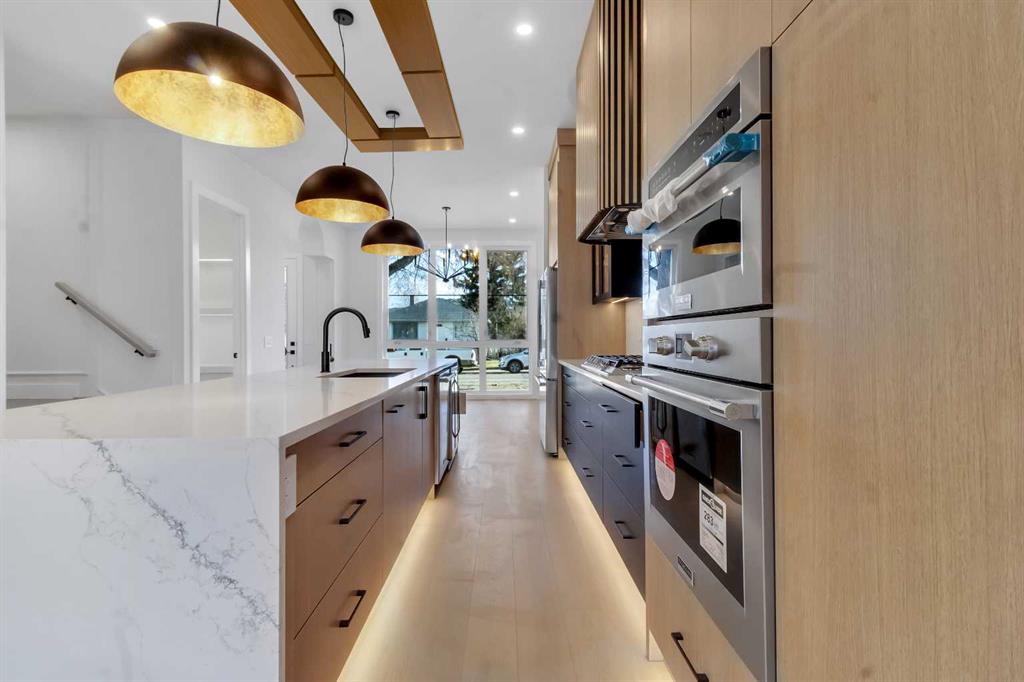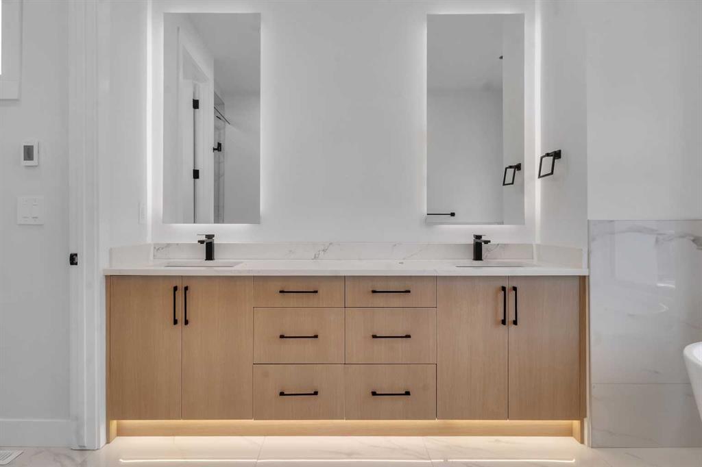 Two additional bedrooms each feature walk in closets and share a beautifully finished four piece bathroom. The upper laundry room includes LG appliances, folding counter, deep sink, cabinetry, and linen storage conveniently located near the bedrooms. The fully finished two bedroom legal basement suite (pending final inspection), includes a private side entrance and mirrors the quality of the main home. It offers a full kitchen, spacious living area, modern four piece bathroom, and dedicated laundry with a built in sink, making it ideal for extended family, guests, or future rental income. Finished with a detached double garage and paved alley access, this home is surrounded by top rated schools, parks, Mount Pleasant Pool, and everyday amenities, with quick access to major routes and the city core. A rare opportunity to own a truly refined, brand new luxury residence in one of Calgary’s most sought after communities.