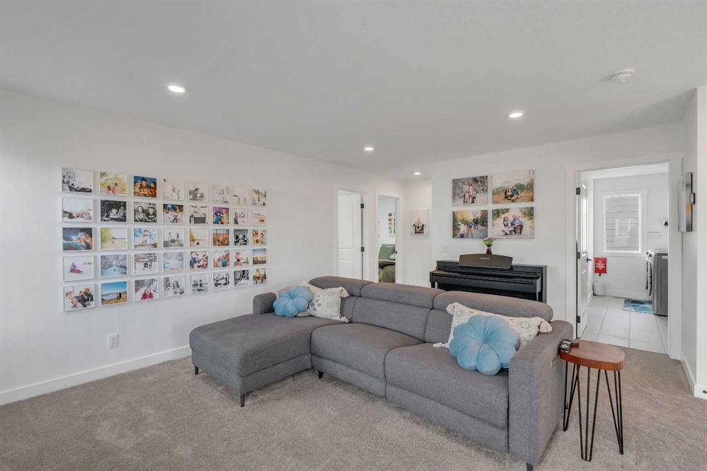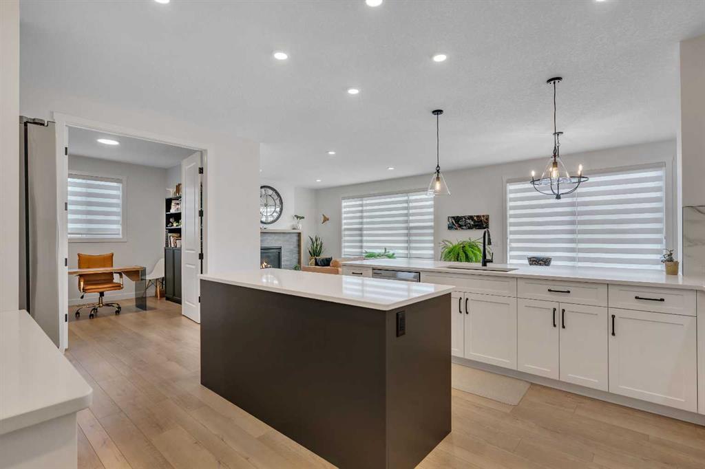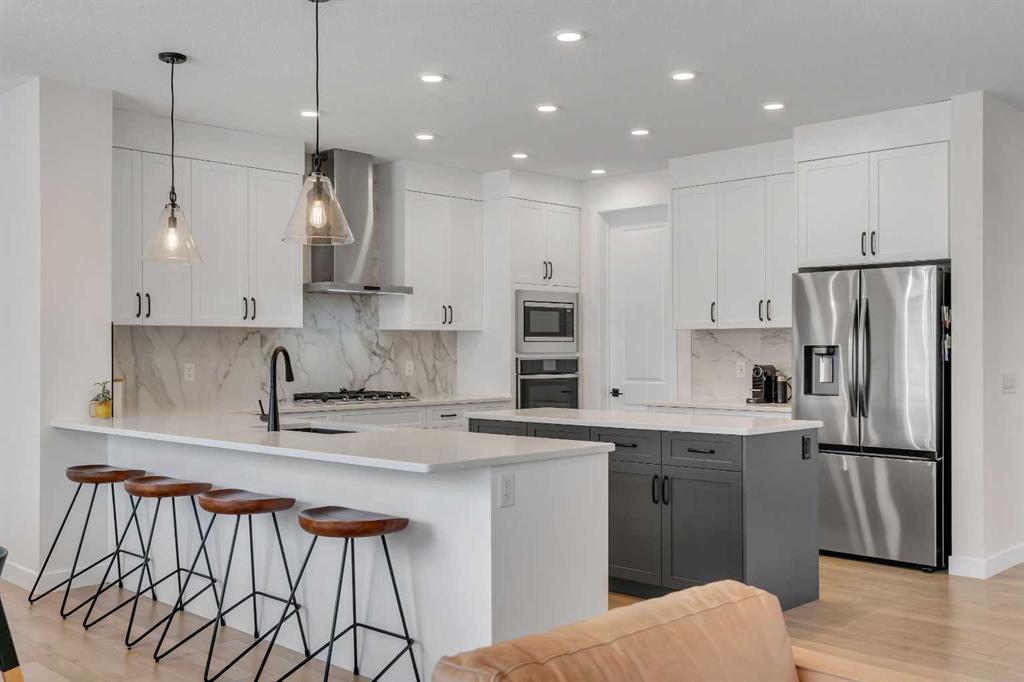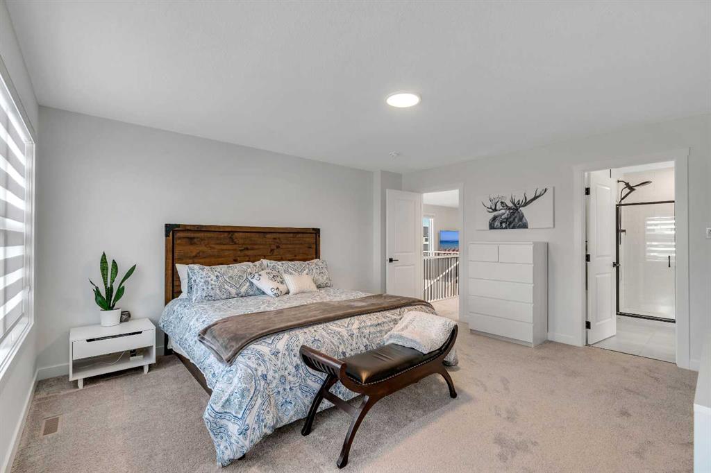 Welcome to 649 Sailfin Drive, located in the brand new lake community of Harmony just 10 minutes west of Calgary and approximately 30 minutes to the mountains, where you are buying more than just a home but a true lifestyle. This 2025 Daytona built home presents like new and features numerous upgrades throughout, all while being situated in one of the most desirable phases of Harmony within walking distance to the lake and community amenities. Offering over 2600 sq ft of living space with 3 bedrooms and 2.5 bathrooms, the layout is both functional and thoughtfully designed for families. The main floor welcomes you with a large foyer, private office with French doors, 2 piece powder room, and a spacious living room centred around a gas fireplace, perfect for family time or entertaining after a day at the lake. The dining area flows seamlessly into the chef’s kitchen, showcasing full height custom cabinetry, a gas range, built in wall oven and microwave, quartz countertops throughout, a large breakfast bar, and an oversized island with plenty of space for a growing family. This level is completed by a massive walk through pantry that connects to the mudroom with custom lockers and direct garage access, ideal for busy households. Upstairs you will find a large bonus room, 3 bedrooms, and a well planned layout. The primary bedroom measures approximately 14.5 by 15.6 ft and features a large walk in closet along with a spa inspired ensuite offering a double vanity, custom stand up shower, and standalone soaker tub. The second and third bedrooms are generously sized and each includes a large walk in closet. You will also find a spacious laundry room with sink and a full 4 piece bathroom on this level. Mechanical highlights include 2 high efficiency furnaces, 2 central A C systems, and a sump pump. Additional upgrades include a custom high end blind package throughout, railing upgrades, and many more. Why wait 12 months for a new home when you can move in today and save the GST. Set in the award winning community of Harmony with its 2 private lakes, world class golf at Mickelson National, extensive pathway system, playgrounds, and future village centre, this home offers an exceptional blend of comfort, quality, and lifestyle. Please book your private shwoing today.