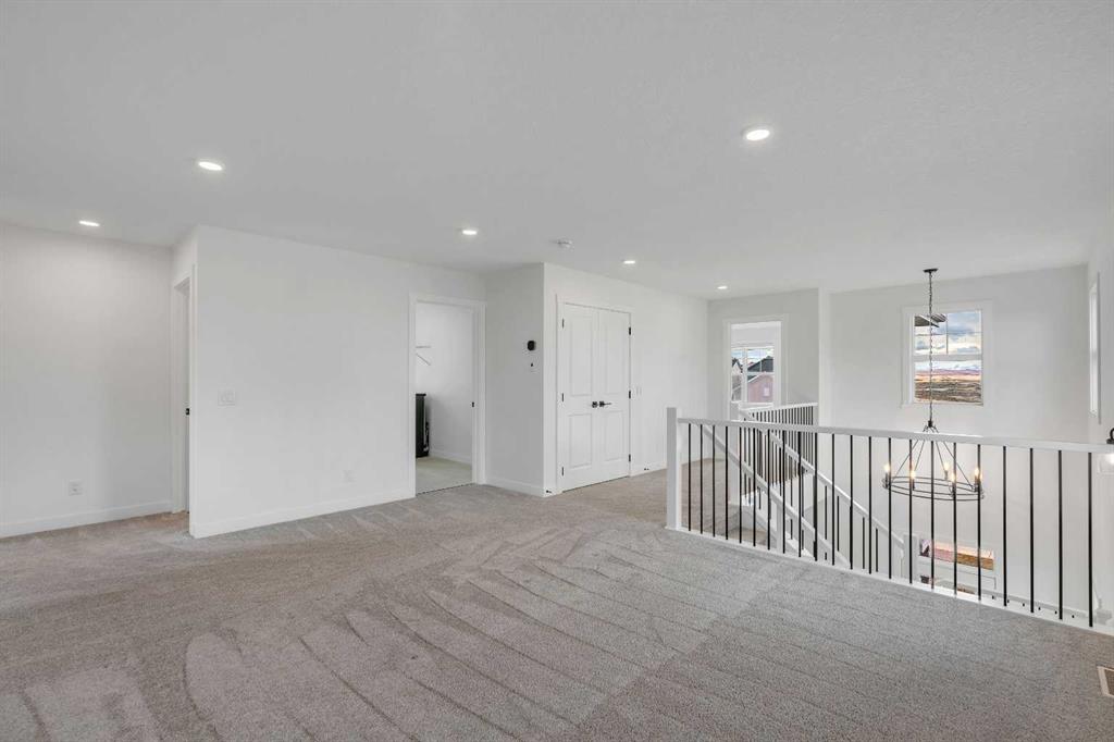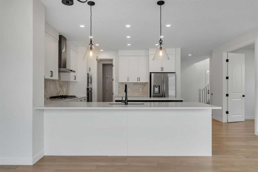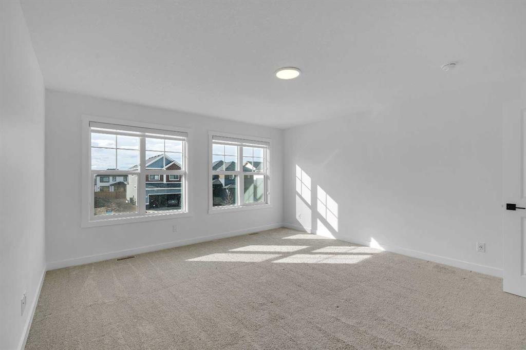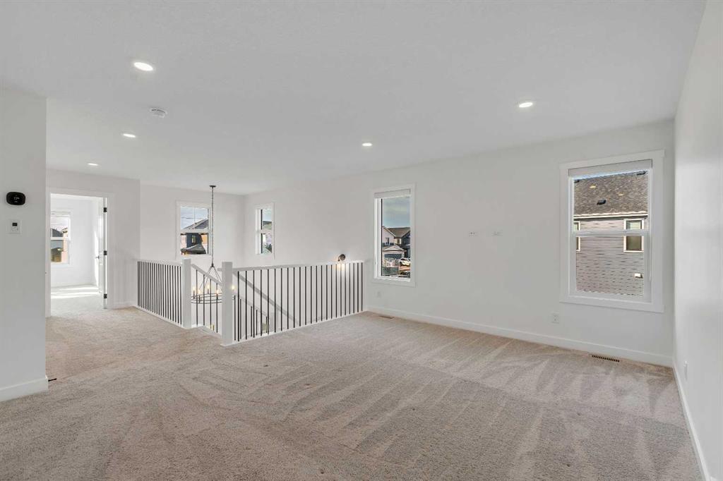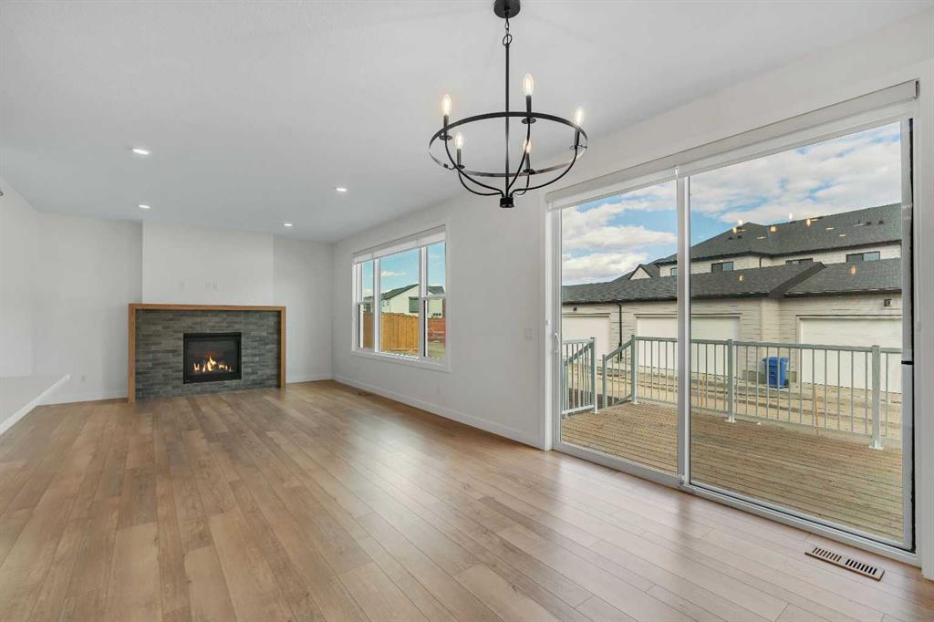 Welcome to 649 Sailfin Drive, located in the brand new lake community of Harmony just 10 minutes west of Calgary and approximately 30 minutes to the mountains, where you are buying more than just a home but a true lifestyle. This 2025 Daytona built home presents like new and features numerous upgrades throughout including being situated on an oversized lot and in one of the most desirable phases of Harmony within walking distance to the lake and community amenities. Offering over 2600 sq ft of living space with 3 bedrooms and 2.5 bathrooms, the layout is both functional and thoughtfully designed for families. The main floor welcomes you with a large foyer, private office with French doors, 2 piece powder room, and a spacious living room centred around a gas fireplace, perfect for family time or entertaining after a day at the lake. The dining area flows seamlessly into the chef’s kitchen, showcasing full height custom cabinetry, a gas range, built in wall oven and microwave, quartz countertops throughout, a large breakfast bar, and an oversized island with plenty of space for a growing family. This level is completed by a massive walk through pantry that connects to the mudroom with custom lockers and direct garage access, ideal for busy households. Upstairs you will find a large bonus room, 3 bedrooms, and a well planned layout. The primary bedroom measures approximately 14.5 by 15.6 ft and features a large walk in closet along with a spa inspired ensuite offering a double vanity, custom stand up shower, and standalone soaker tub. The second and third bedrooms are generously sized and each includes a large walk in closet. You will also find a spacious laundry room with sink and a full 4 piece bathroom on this level. Mechanical highlights include 2 high efficiency furnaces, 2 central A C systems, and a sump pump. Additional upgrades include a custom high end blind package throughout, railing upgrades, and many more. Why wait 12 months for a new home when you can move in today and save the GST. Set in the award winning community of Harmony with its 2 private lakes, a brand new Nordic Spa (2028, brochure link in listing), world class golf at Mickelson National, extensive pathway system, playgrounds, and future village centre, this home offers an exceptional blend of comfort, quality, and lifestyle. Please book your private shwoing today.
