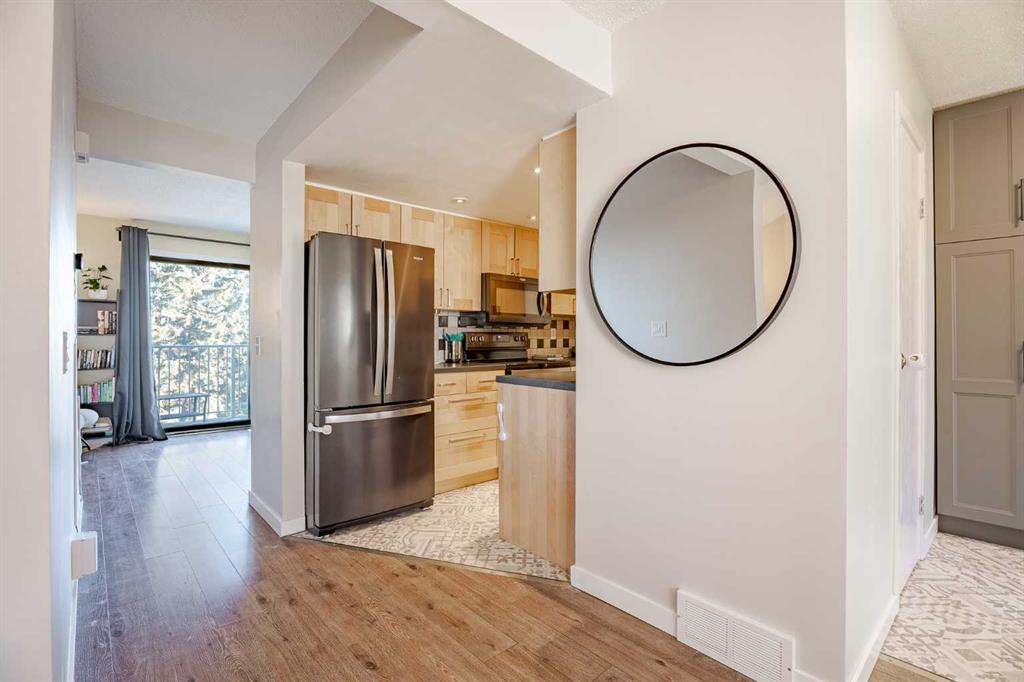Welcome to this beautifully updated three-bedroom condo ideally located just steps from schools, shopping, and the scenic pathways of Nose Hill Park. Offering 1,051 sq. ft. of thoughtfully designed living space, this home is bright, welcoming, and completely move-in ready. The main level showcases a lovely living room with sliding glass doors leading to an east-facing balcony, where unobstructed views allow morning light to pour in. The dining area is perfectly positioned off the kitchen, overlooking a private, maintenance-free patio finished with modern interlocking stone—ideal for relaxing or entertaining. The adorable kitchen features newer appliances and updated cabinetry, blending charm with functionality. Completing the main floor is a beautifully renovated two-piece guest bath, perfect for visitors and everyday convenience. A beautifully renovated mudroom offers a wall of custom cabinetry for exceptional storage, newer laminate flooring, and fresh paint throughout. Upstairs, you’ll find three spacious bedrooms, each with large windows that flood the space with natural light. The updated main bathroom is both stylish and highly functional for everyday living.