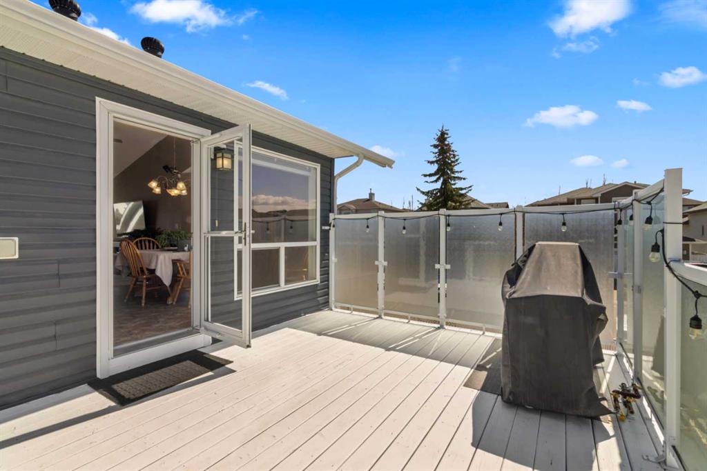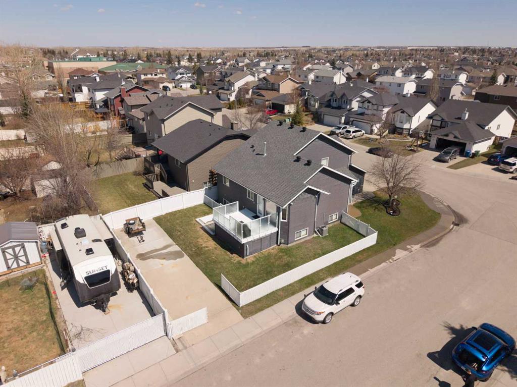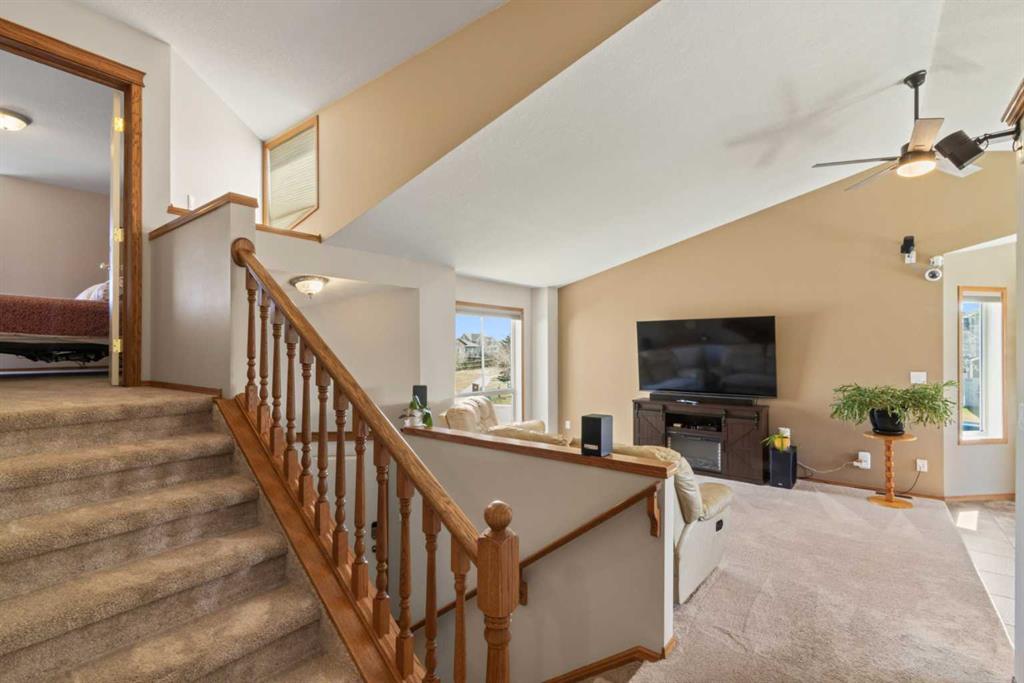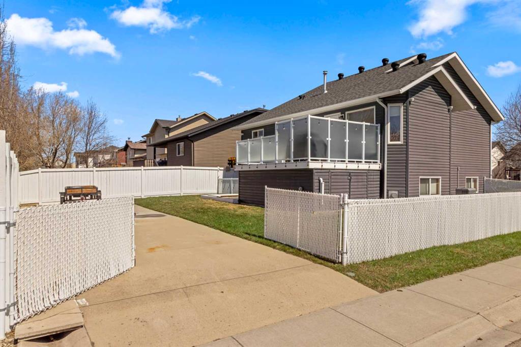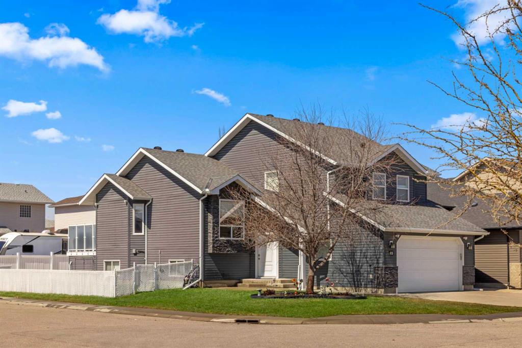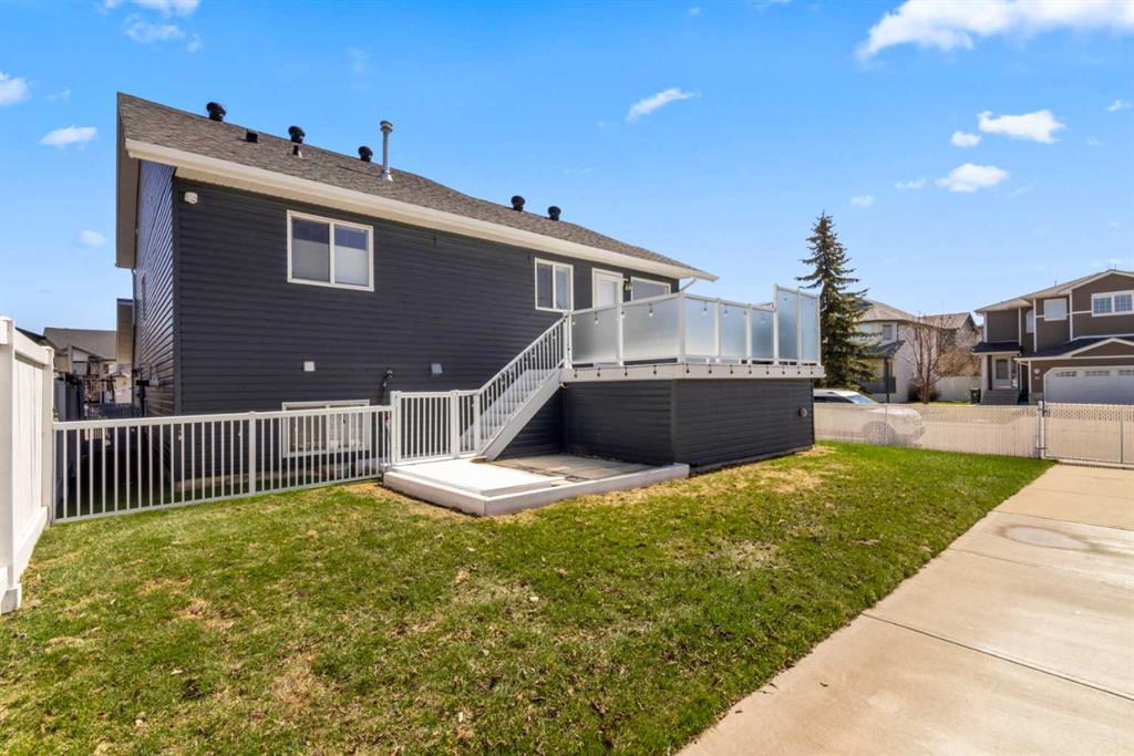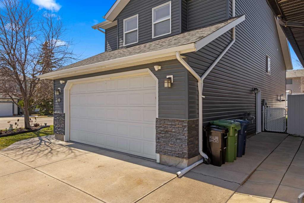 Welcome to 65 Canoe Circle in the Canals of Airdrie! This updated custom built 5 Bedroom, 3 full bathroom home offers 2515.68sq ft of developed living space. The main floor is a functional open plan with vaulted ceilings and features a spacious living room, a dining room with room for the whole family and a functional island kitchen that includes stainless steel appliances, an induction stove, corner pantry and plenty of storage. Two good sized bedrooms and a full bathroom round out his floor. A few steps up leads up to the primary bedroom that is an ideal getaway highlighted by a four piece ensuite with heated floors, built-in cabinetry, a corner jetted tub, separate shower and walk-in closet. The fully finished basement, with separate entrance, adds two additional bedrooms, a family room that boosts a gas fireplace, projector and surround sound system and a four piece bathroom. The door off the dining room leads to the low maintenance glass paneled deck with gas line for BBQ etc. The fully fenced back yard features a concrete RV pad, dog run and rough-in for a hot tub. There is also dry storage under the deck. You will love the double attached garage with in-floor heating, 220 and 30 amp receptacle and hot and cold water. Ideally located on a very quiet close, you can walk to all levels of schools, parks, and playing fields. This home has been very well maintained and some of the extras and updates include newer shingles and siding, newer windows and exterior doors, custom blinds, upgraded insulation, new furnace and central air conditioning (3 years), hot water on demand, water softener, water filter system, security cameras and three zone manual underground sprinkler system. The list goes on! Come have a look, you wont be disappointed!