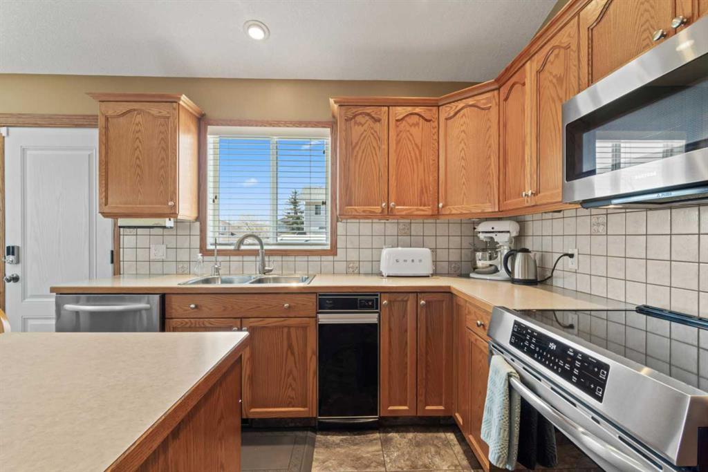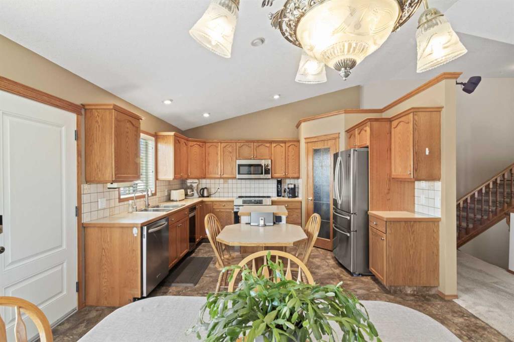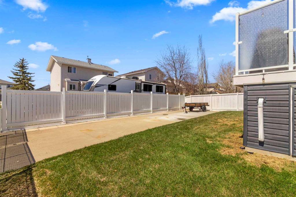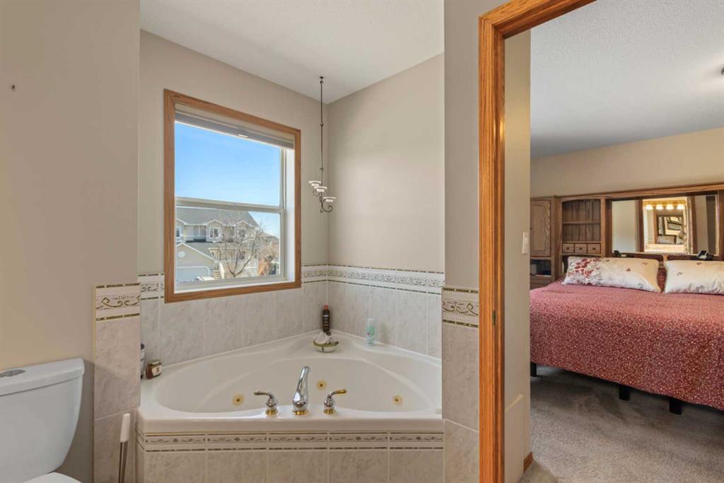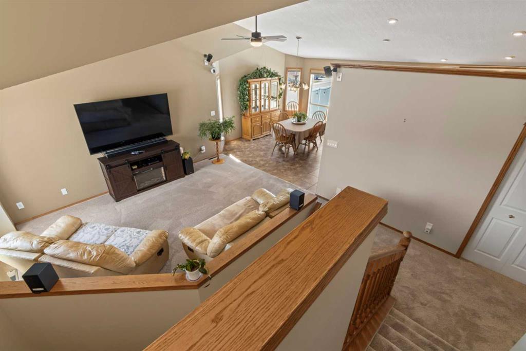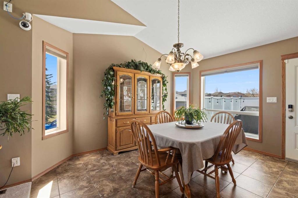 Welcome to 65 Canoe Circle in the Canals of Airdrie! This updated custom built 5 Bedroom, 3 full bathroom home offers 2515.68sq ft of developed living space. The main floor is a functional open plan with vaulted ceilings and features a spacious living room, a dining room with room for the whole family and a functional island kitchen that includes stainless steel appliances, an induction stove, corner pantry and plenty of storage. Two good sized bedrooms and a full bathroom round out his floor. A few steps up leads up to the primary bedroom that is an ideal getaway highlighted by a four piece ensuite with heated floors, built-in cabinetry, a corner jetted tub, separate shower and walk-in closet. The fully finished basement, with separate entrance, adds two additional bedrooms, a family room that boosts a gas fireplace, projector and surround sound system and a four piece bathroom. The door off the dining room leads to the low maintenance glass paneled deck with gas line for BBQ etc. The fully fenced back yard features a concrete RV pad, dog run and rough-in for a hot tub. There is also dry storage under the deck. You will love the double attached garage with in-floor heating, 220 and 30 amp receptacle and hot and cold water. Ideally located on a very quiet close, you can walk to all levels of schools, parks, and playing fields. This home has been very well maintained and some of the extras and updates include newer shingles and siding, newer windows and exterior doors, custom blinds, upgraded insulation, new furnace and central air conditioning (3 years), hot water on demand, water softener, water filter system, security cameras and three zone manual underground sprinkler system. The list goes on! Come have a look, you wont be disappointed!