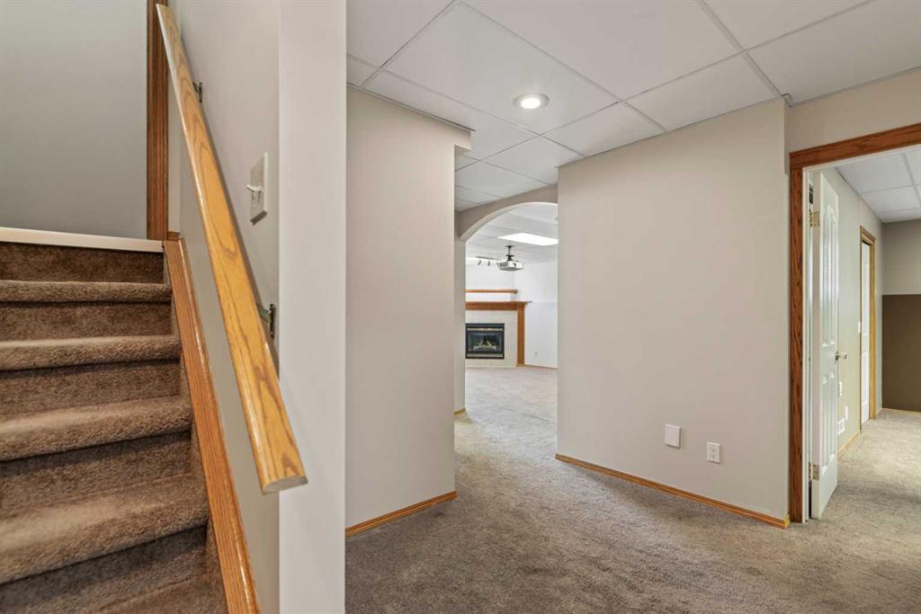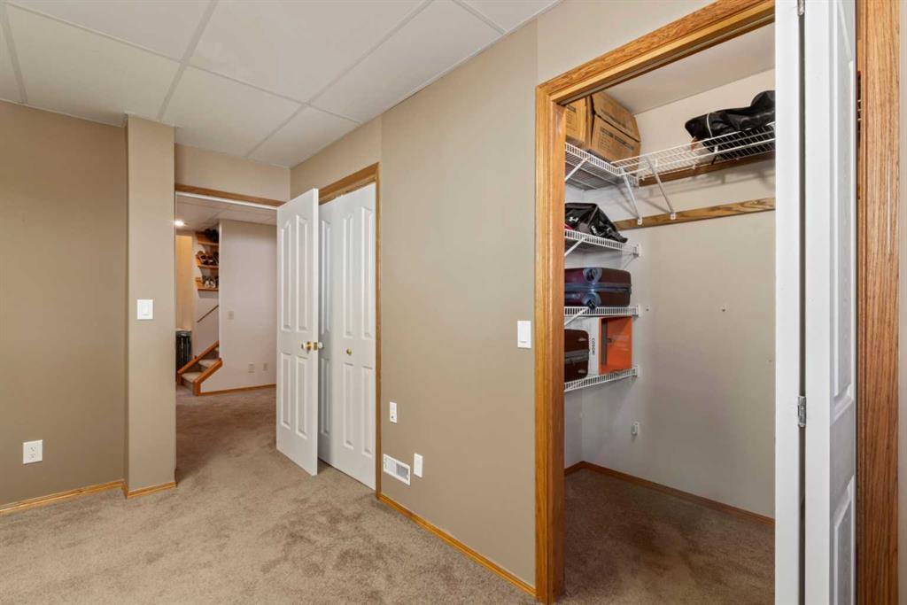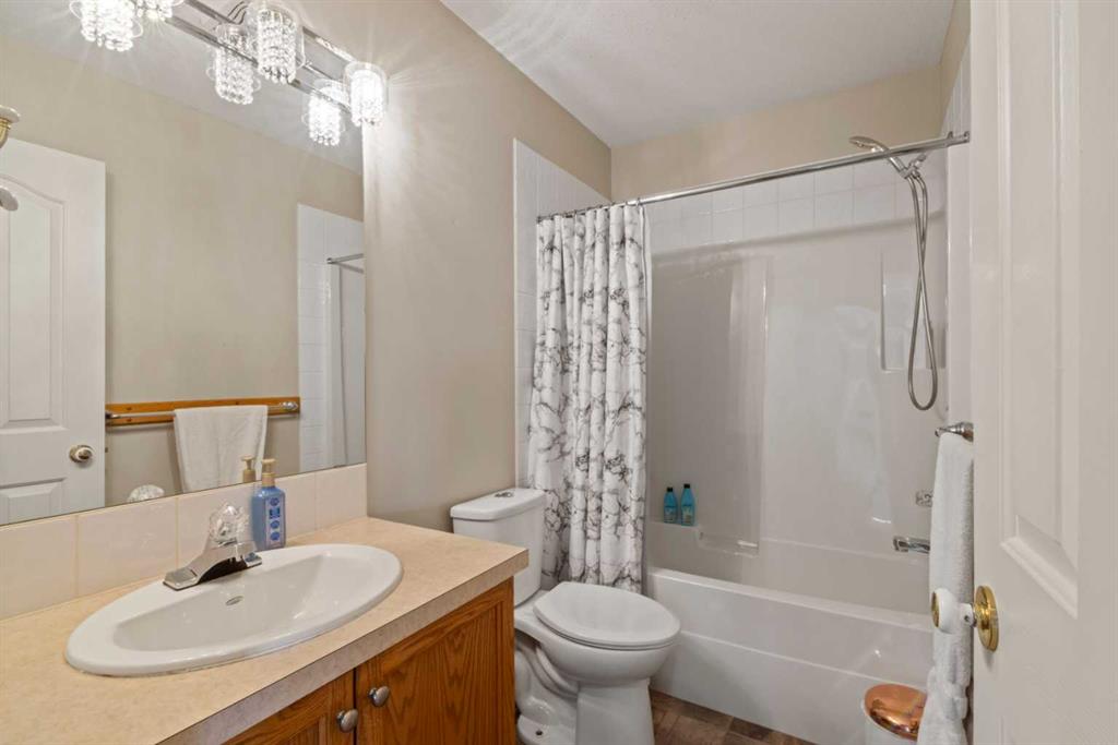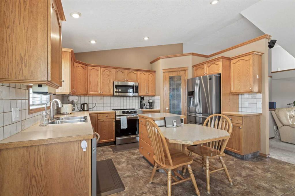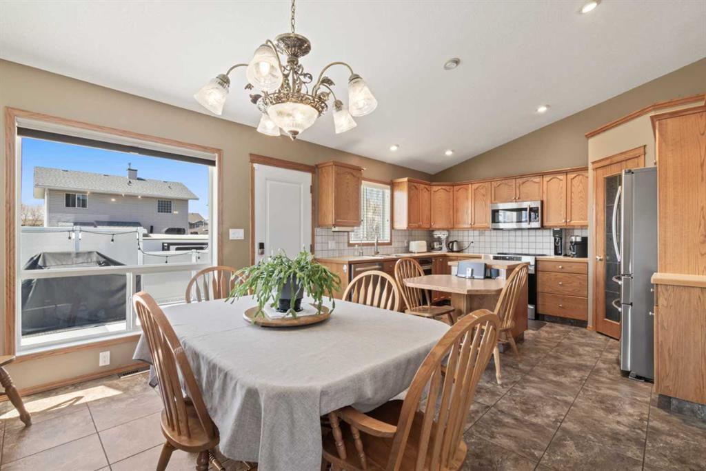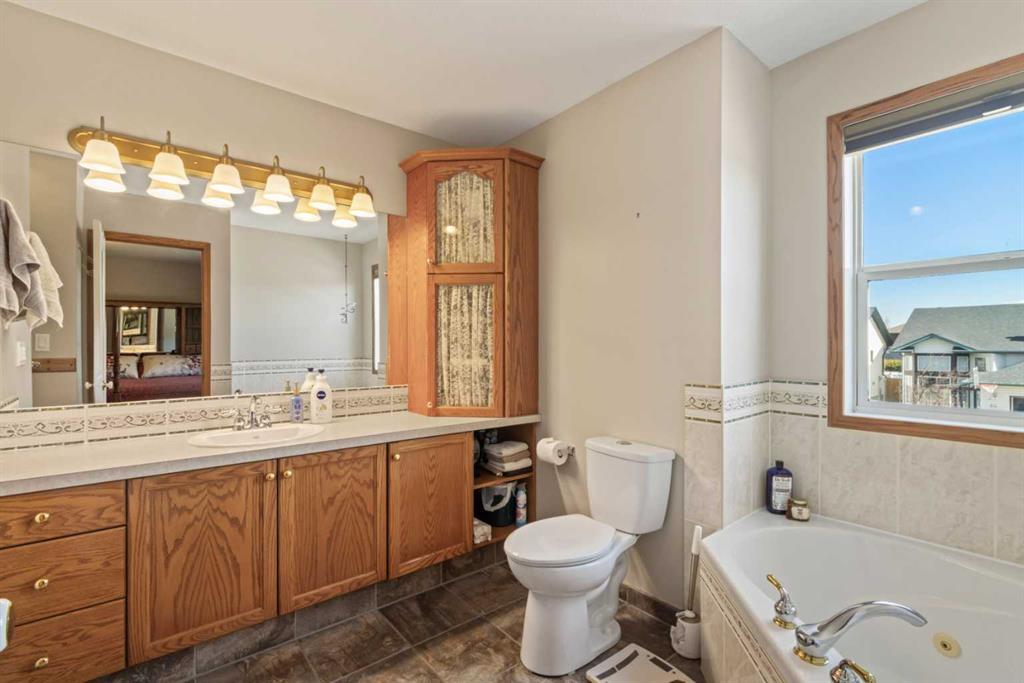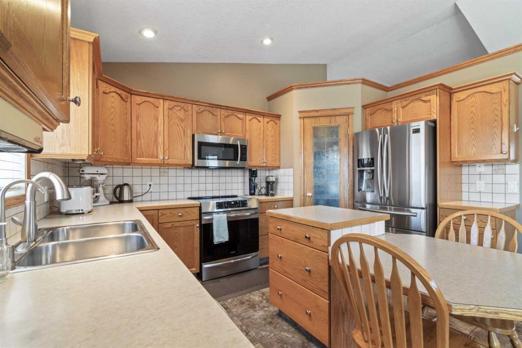 Welcome to 65 Canoe Circle in the Canals of Airdrie! This updated custom built 5 Bedroom, 3 full bathroom home offers 2515.68sq ft of developed living space. The main floor is a functional open plan with vaulted ceilings and features a spacious living room, a dining room with room for the whole family and a functional island kitchen that includes stainless steel appliances, an induction stove, corner pantry and plenty of storage. Two good sized bedrooms and a full bathroom round out his floor. A few steps up leads up to the primary bedroom that is an ideal getaway highlighted by a four piece ensuite with heated floors, built-in cabinetry, a corner jetted tub, separate shower and walk-in closet. The fully finished basement, with separate entrance, adds two additional bedrooms, a family room that boosts a gas fireplace, projector and surround sound system and a four piece bathroom. The door off the dining room leads to the low maintenance glass paneled deck with gas line for BBQ etc. The fully fenced back yard features a concrete RV pad, dog run and rough-in for a hot tub. There is also dry storage under the deck. You will love the double attached garage with in-floor heating, 220 and 30 amp receptacle and hot and cold water. Ideally located on a very quiet close, you can walk to all levels of schools, parks, and playing fields. This home has been very well maintained and some of the extras and updates include newer shingles and siding, newer windows and exterior doors, custom blinds, upgraded insulation, new furnace and central air conditioning (3 years), hot water on demand, water softener, water filter system, security cameras and three zone manual underground sprinkler system. The list goes on! Come have a look, you wont be disappointed!
