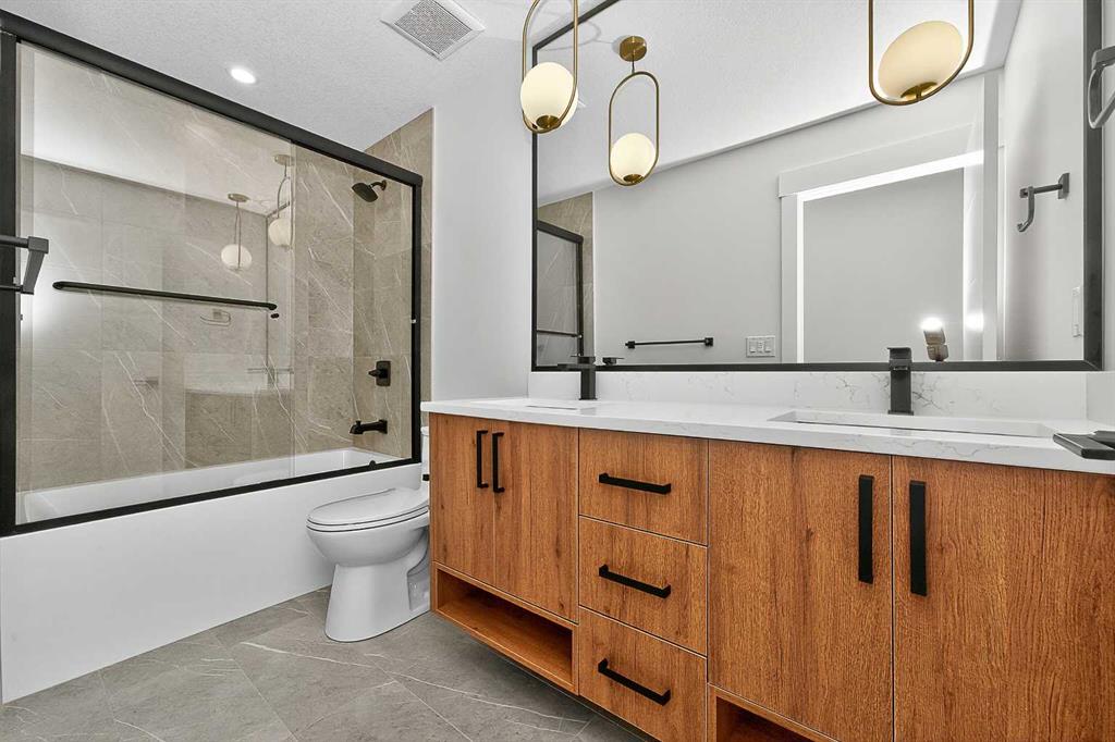 This home is thoughtfully designed with high-end finishes, including luxury vinyl plank flooring on the main level, tile in the mudroom and bathrooms, and plush carpet upstairs. You’ll also appreciate the floating vanities — a sleek and modern touch throughout the home.