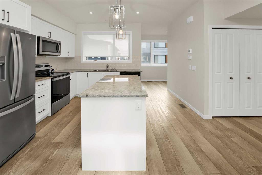 Modern three-storey townhome in the highly convenient community of Cornerstone! This like-new residence features a stunning open-concept main floor with LVP flooring, a bright chef’s kitchen showcasing modern white cabinets, stainless steel appliances, and quartz/granite countertops. The upper level offers three spacious bedrooms, including a primary suite with a private ensuite, plus desirable upper-floor laundry. Complete with a double attached garage and a versatile den/flex room, this home is just steps from shopping (Chalo! FreshCo, Tim Hortons) and provides excellent access to Stoney Trail, Deerfoot Trail, and the Calgary International Airport.