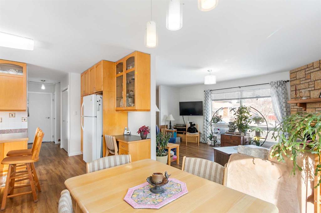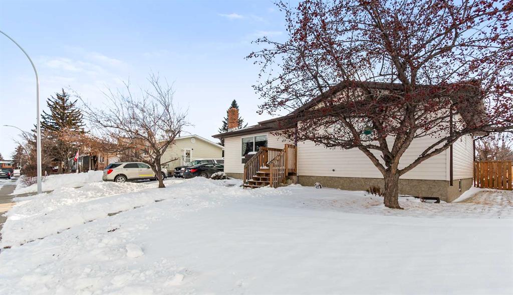 Charming BUNGALOW located on a mature street in CARSTAIRS, offering an abundance of natural light and thoughtful UPDATES completed over the years. Major improvements in 2013 included most windows, new roof, reinsulation and new siding, along with upgraded R40 ceiling insulation for added efficiency, plus a new hot water tank installed in 2019. The bright and functional kitchen features warm birch cabinetry, a central ISLAND with an eat-up bar, and a PANTRY for additional storage. The main floor hosts 3 BEDROOMS, including a spacious primary suite complete with a walk-in closet and private 2-PIECE ENSUITE. The FULLY DEVELOPED LOWER LEVEL offers a massive family room, an additional bedroom with a large window, a unique bathroom featuring a Japanese soaker tub, and generous STORAGE space. Outside, the west-facing FENCED YARD with ALLEY ACCESS provides a large parking pad ideal for RV or extra vehicles and is a gardener’s dream with established PERENNIALS and fruit-bearing trees and shrubs including apple, raspberries, cherries, saskatoons, and black currants — a wonderful opportunity to enjoy comfortable living in a welcoming Carstairs community.