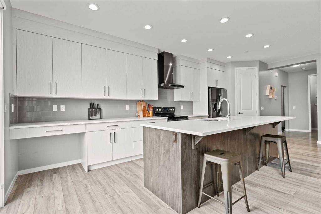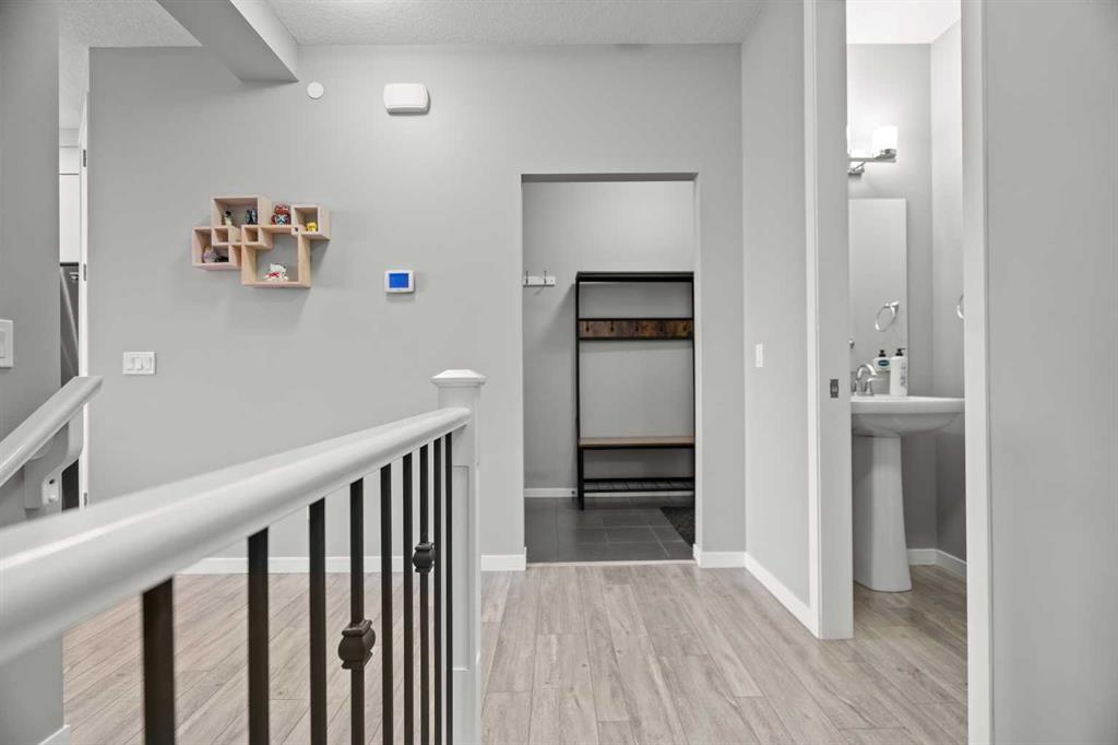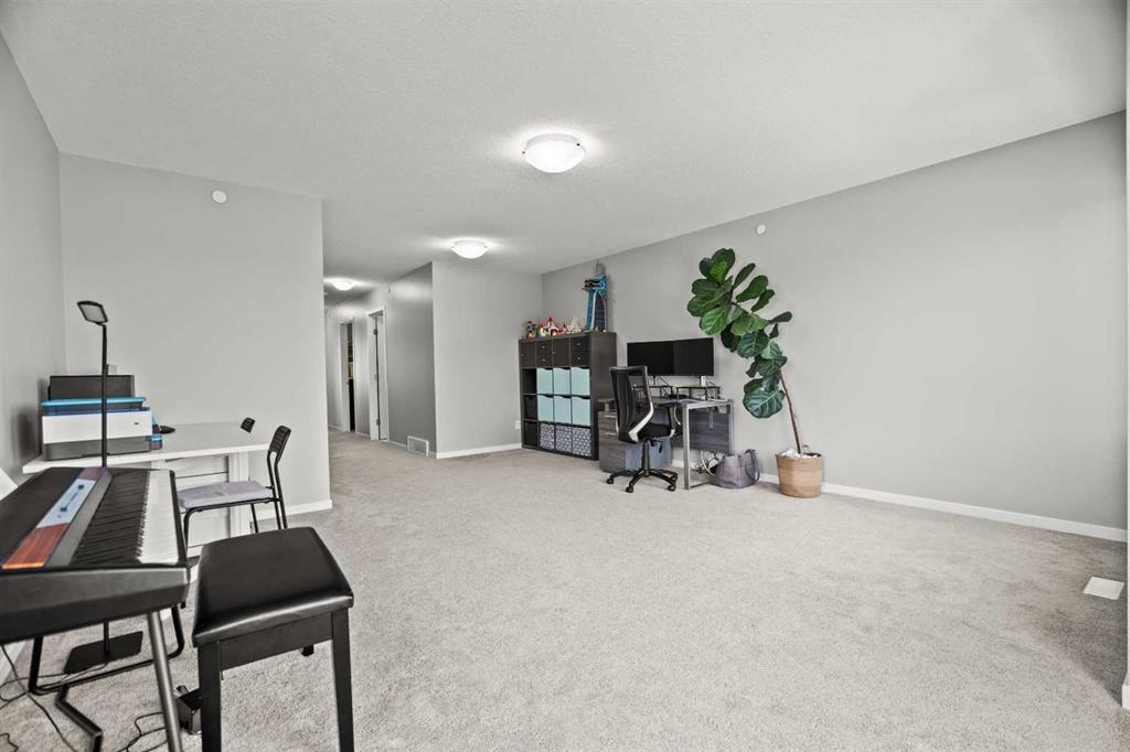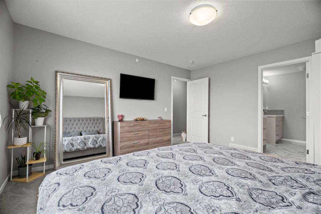 The chef-inspired kitchen is a true highlight, complete with premium stainless steel appliances, quartz countertops, a large center island perfect for gatherings, ample cabinetry, tiled backsplash, and a convenient corner pantry. Sliding patio doors lead to the sunny, fully fenced backyard with mature trees, offering privacy, a large deck, and plenty of space for relaxing, barbecuing, or children and pets to play. A functional mudroom with garage access and a 2-piece powder room complete the main level. Upstairs, the spacious bonus/family room provides versatile living space for movie nights, a play area, or a home office. This level also includes a full 4-piece bathroom and a convenient laundry room. The primary suite offers a peaceful retreat with a walk-in closet and a spa-inspired 4-piece ensuite featuring modern finishes. The fully developed basement adds even more living space with a large recreation room, a 3-piece bathroom, ample storage, and flexibility for future use such as a home gym, hobby room, or guest area. Outside, the finished double attached garage and driveway provide ample parking. The landscaped backyard offers both privacy and beauty, making it ideal for outdoor enjoyment. Located in the vibrant community of Livingston, residents enjoy access to the Community Hub, splash park, playgrounds, parks, green spaces, and extensive walking and bike paths, along with quick access to major roadways, shopping, restaurants, and public transportation. This move-in-ready home offers an exceptional combination of upgrades, space, and location—an opportunity not to be missed.