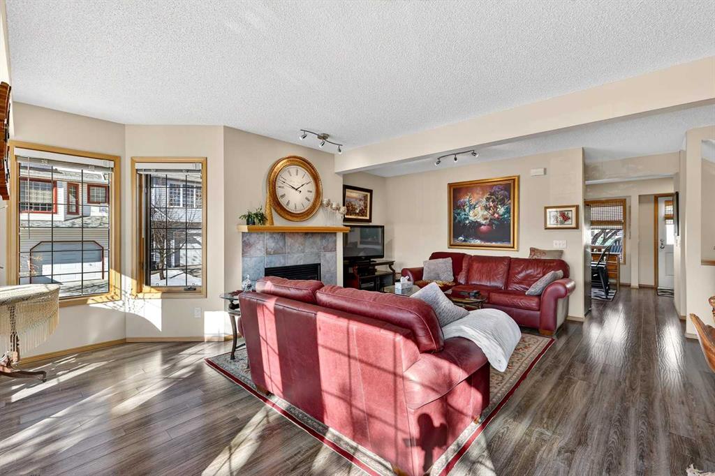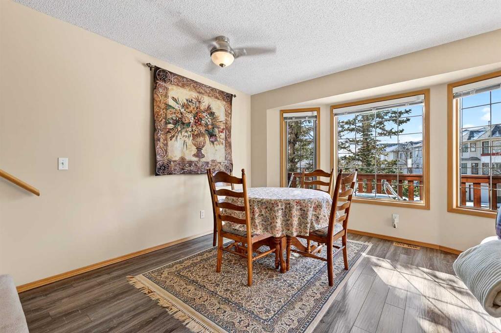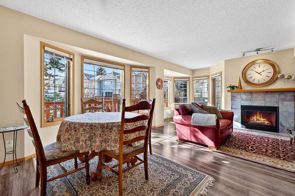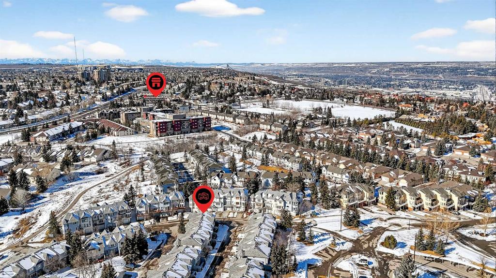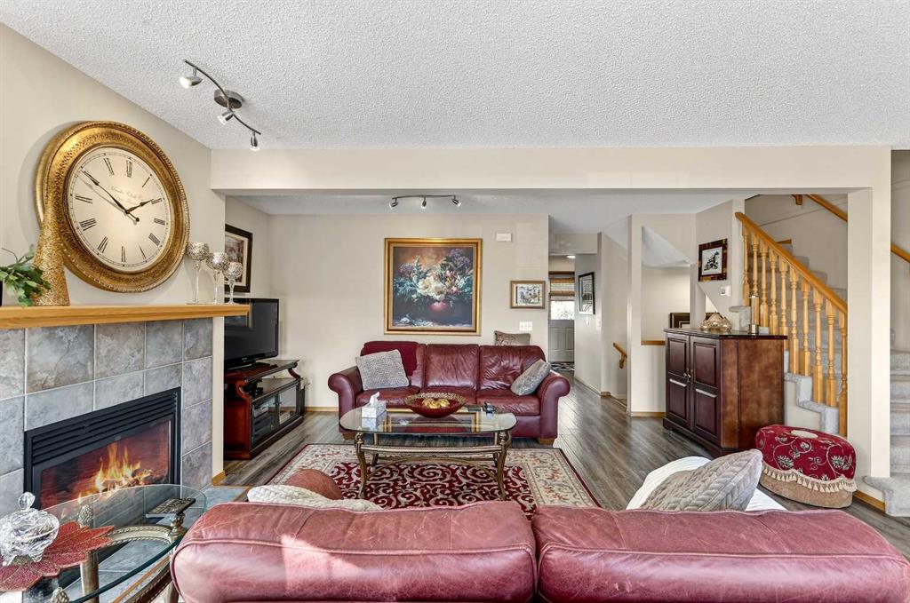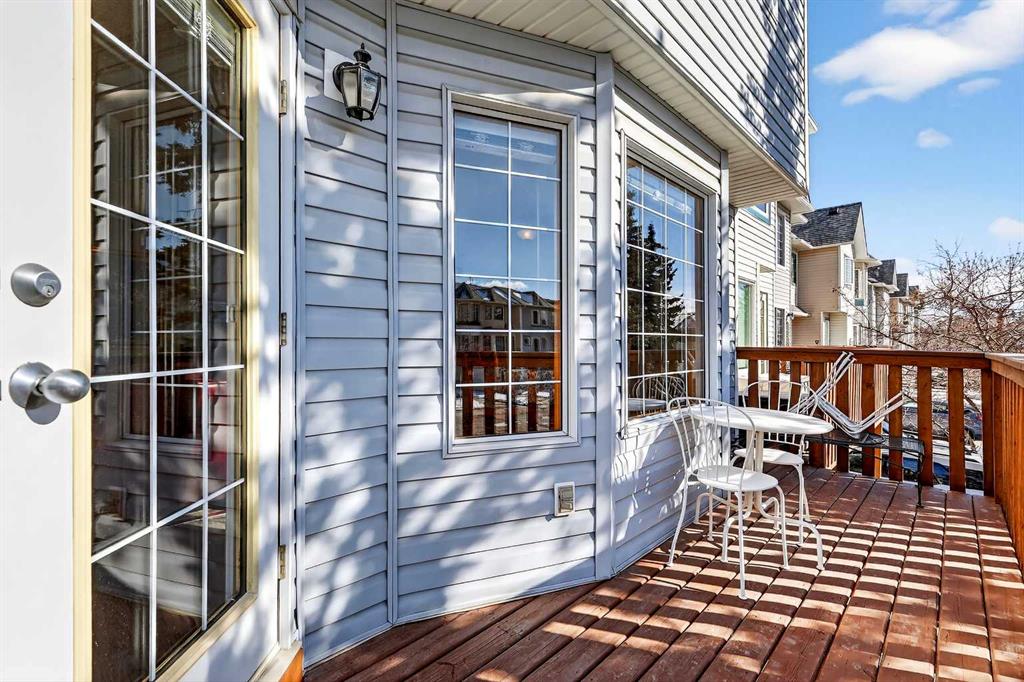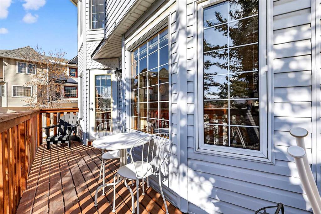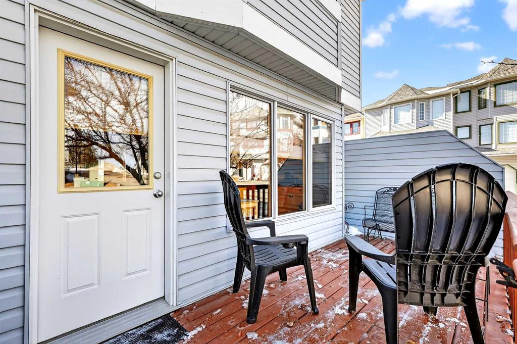 Tucked into the desirable community of Patterson, this well-maintained 2-bedroom, 2 full bathrooms corner-unit townhome in Capilano Gardens offers a bright and functional layout designed for comfortable everyday living. As an end unit, large bay windows fill the home with natural light, creating a warm and inviting atmosphere throughout. Central air conditioning ensures year-round comfort, while two private decks provide wonderful spaces to enjoy the outdoors. The main level features durable laminate flooring and a thoughtfully designed floor plan. The spacious kitchen is surrounded by windows that bring in plenty of sunshine and is equipped with dark stainless steel appliances, ample cabinetry, and a central island, perfect for meal prep or casual dining. Just off the kitchen, one of the two decks offers the ideal setting for BBQs, morning coffee, or evening relaxation. The adjoining living room is anchored by a cozy gas fireplace, creating the perfect place to unwind or entertain. A 2-piece powder room and convenient main floor laundry complete this level. Upstairs, you’ll find two generously sized bedrooms, each offering excellent privacy. The primary suite features a walk-in closet and a private 3-piece ensuite, while the second bedroom enjoys direct access to a 3-piece bathroom, making it ideal for guests, family, or a home office. The double tandem garage provides ample space for vehicles, storage, or even a small workshop, perfect for those who appreciate extra room for hobbies or gear. Capilano Gardens is a well-managed complex with low condo fees, with updates including a new roof in 2018, refreshed decks, and repainted garage door trims. Located close to parks, pathways, schools, WinSport, and Calgary Farmers’ Market West, the home also offers quick access to downtown Calgary and an easy escape to the mountains. Enjoy low-maintenance living, bright interior spaces, and exceptional west-side convenience in this fantastic Patterson townhome.
