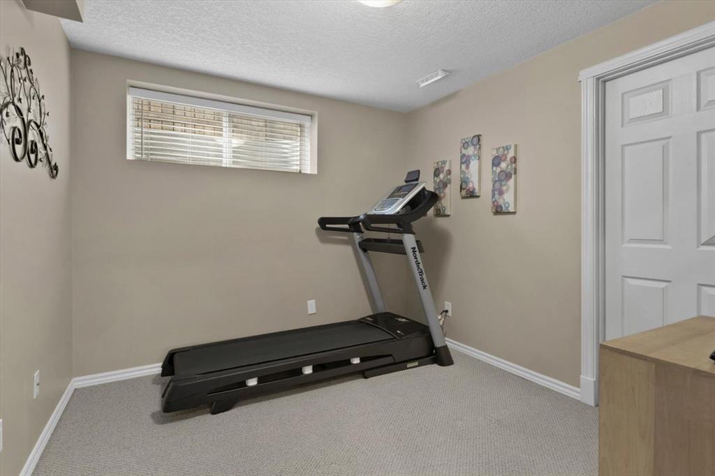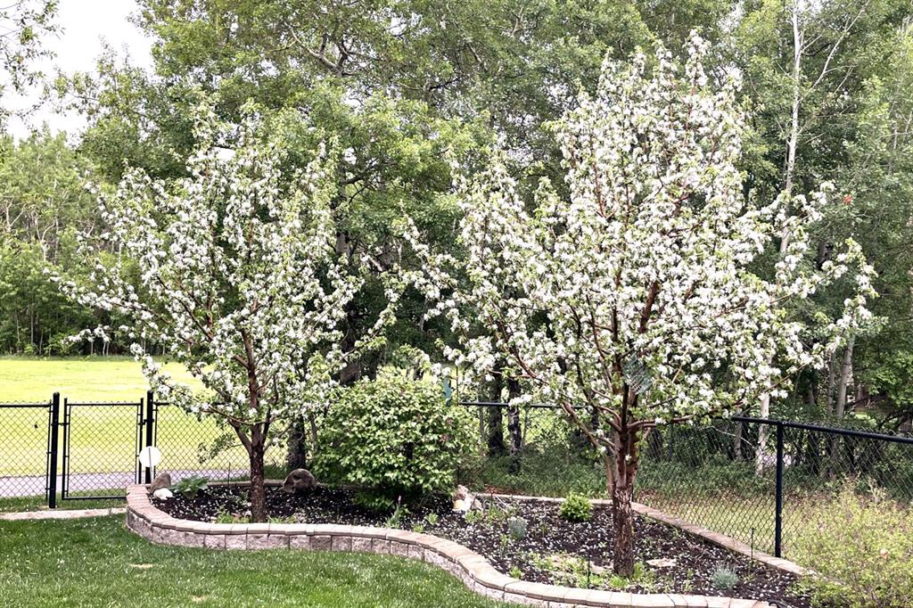 There’s a rhythm to this home that reveals itself through the back windows – the kids running through the gate to the park, unhurried evening walks, and in winter, a skating rink the neighbours maintain themselves. The original owners raised their children here, and they’ll tell you the greenspace wasn’t an amenity. It was part of daily life. Siding and backing directly onto the park and playground, this setting is increasingly hard to find. The yard is well tended, complete with an underground irrigation system and mature apple trees that produce enough for homemade pies. Inside, the home has been thoughtfully designed and well cared for. A main floor den sits behind double French doors – a quiet workspace or flex room with windows overlooking the front yard. The kitchen features maple cabinetry, granite counters, a generous island, and a most of the appliances, including a five-burner gas range, are newer. The adjacent dining nook captures the view of the green-space, and the family room opens off the kitchen, wrapped in big windows. Hardwood flooring runs throughout the main level. Upstairs, the layout is well considered: the bonus room, anchored by a fireplace, is set apart from the bedrooms by the staircase – keeping the sound of movie nights at a comfortable distance from sleeping little ones. Three bedrooms share this floor, including a spacious primary with lovely views and an ensuite featuring dual sinks, an oval jetted tub, and a separate shower. The fully developed lower level adds a large rec and games room ready to become a theatre space, a fourth bedroom with walk-in closet, a full bathroom, and a generous storage room. Additional features include central air conditioning, a finished and heated garage, a newer hot water tank, and newer hail-proof asphalt shingles. First-time to market from the original owners, and ready for its next family.