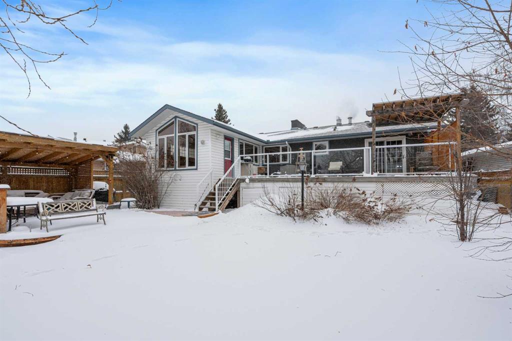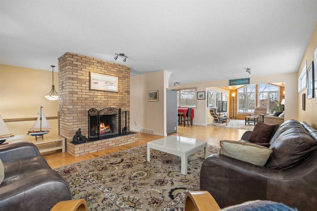 If location is everything in real estate, then this is the one you have been waiting for in Oakridge! Situated on a quiet cul de sac, and sitting on a massive pie lot backing onto the park reserve, this home is ideally located for convenient city living with the tranquility of a country retreat. This large raised bungalow offers over 2600 square feet of comfortable living space boasting large open rooms with an abundance of light throughout. Both the living room on the upper level and family room on the lower feature wood burning fireplaces surrounded by floor to ceiling brick, adding to the feel of country charm. Upper level includes 3 bedrooms, with the master opening onto a 30 by 15 foot private deck overlooking the park and includes a 3 piece ensuite. Lower level adds a fourth huge bedroom and the entire lower boasts brand new carpet. The addition of a open and bright atrium to the upper level turns the whole floor into a bath of sunlight and contributes to the open and spacious ambiance. This is one of a kind home in a unique, highly desirable location in one of Calgary’s most sought after communities, opportunity awaits.